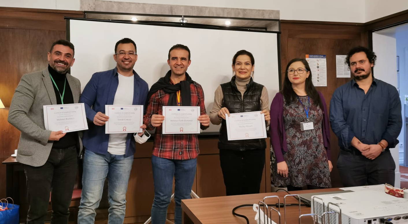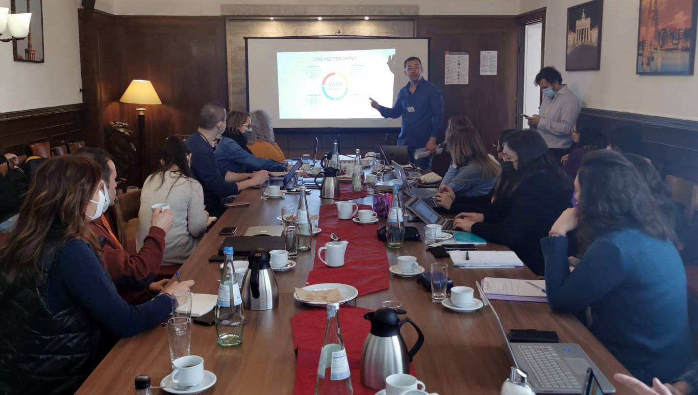 İzlanda, İspanya, İtalya, Slovakya, Yunanistan ve Almanya’dan eğitimcilerin katıldığı proje toplantısında Doç. Dr. Melike Özyurt tarafından Gaziantep Üniversitesinin tanıtımı yapılarak, üniversitede yürütülen akademik çalışmalar hakkında bilgi verildi. Prof. Dr Mehmet Fatih Özmantar ise “Etkili Uzaktan Eğitimin Özellikleri” konusunda eğitim verdi. Proje kapsamında geliştirilen uzaktan eğitim modeline ilişkin eğitim Doç. Dr. Emrah Cinkara tarafından verilirken, Doç. Dr. Mehmet Bardakçı geliştirilen modelin uygulamaya yön verecek temel ilkelerini katılımcılara uygulamalı olarak anlattı. Çalışma kapsamında ayrıca İzlanda, Almanya ve Yunanistan’dan eğitimciler uzaktan eğitimde kullanılabilecek Web 2 araçlarının uygulamalı tanıtımını yaptı.