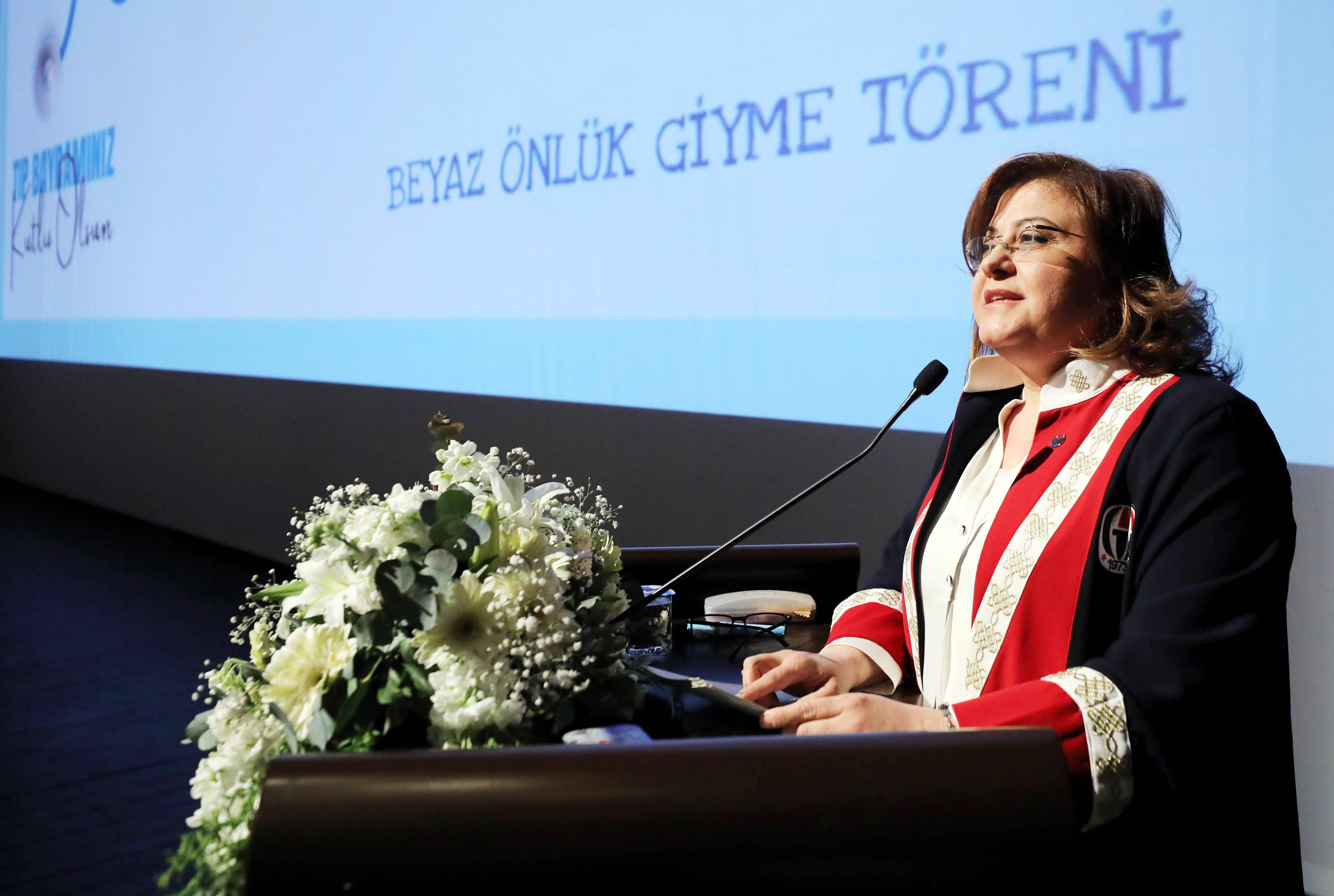 Beyaz Önlük Giyme Töreninin açılışında konuşan GAÜN Rektör Yardımcısı Prof. Dr. Ayşe Balat, öğrencilere seslenerek şunları söyledi:  “Eğitiminiz ve bütün meslek yaşamınız boyunca çalışma ve öğrenmenin sınırsız olduğunun bilincinde olarak, bilgi ve becerilerinizi sürekli geliştireceğinize, iyi bir hekim olmanız için çaba gösteren öğretim üyelerine hak ettikleri saygıyı göstereceğinize yürekten inanıyorum. Yaşamın insanın en kutsal hakkı olduğunu daima göz önünde bulunduracak, toplum ve bireyin salığını korumaya çalışacaksınız. Mesleğinizin değerlerini her koşulda gözetecek ve yücelteceksiniz. Giyeceğiniz beyaz önlüğün size getirdiği sorumlulukların bilincinde olarak, görevlerinizi en iyi şekilde yerine getireceğinize inanıyorum. Unutmayınız ki, bu önlük sadece giysiniz olmayacak, size ağır ama bir o kadar da yüce sorumluluk yükleyecektir. Hepinizin yolu açık, başarılarla dolu olsun ve önlükleriniz hep beyaz kalsın.”