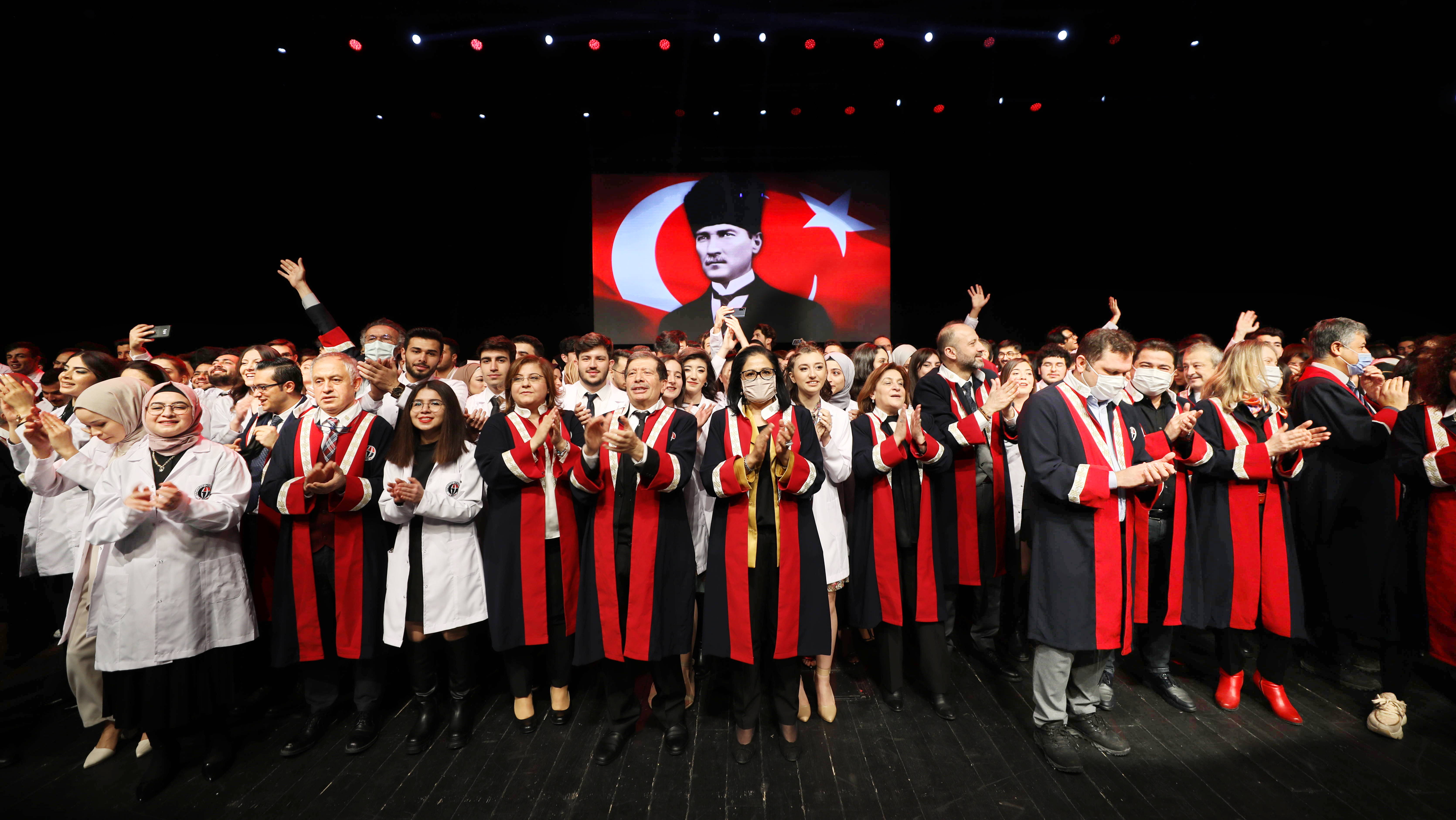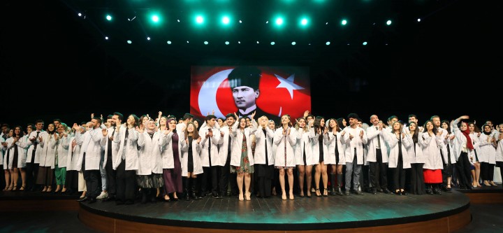 Konuşmaların sonrasında, Türkçe ve İngilizce Tıp Fakültesi’nde 3 yıllık temel eğitimlerini tamamlayan 260 öğrenciye öğretim üyeleri tarafından beyaz önlükleri giydirildi.