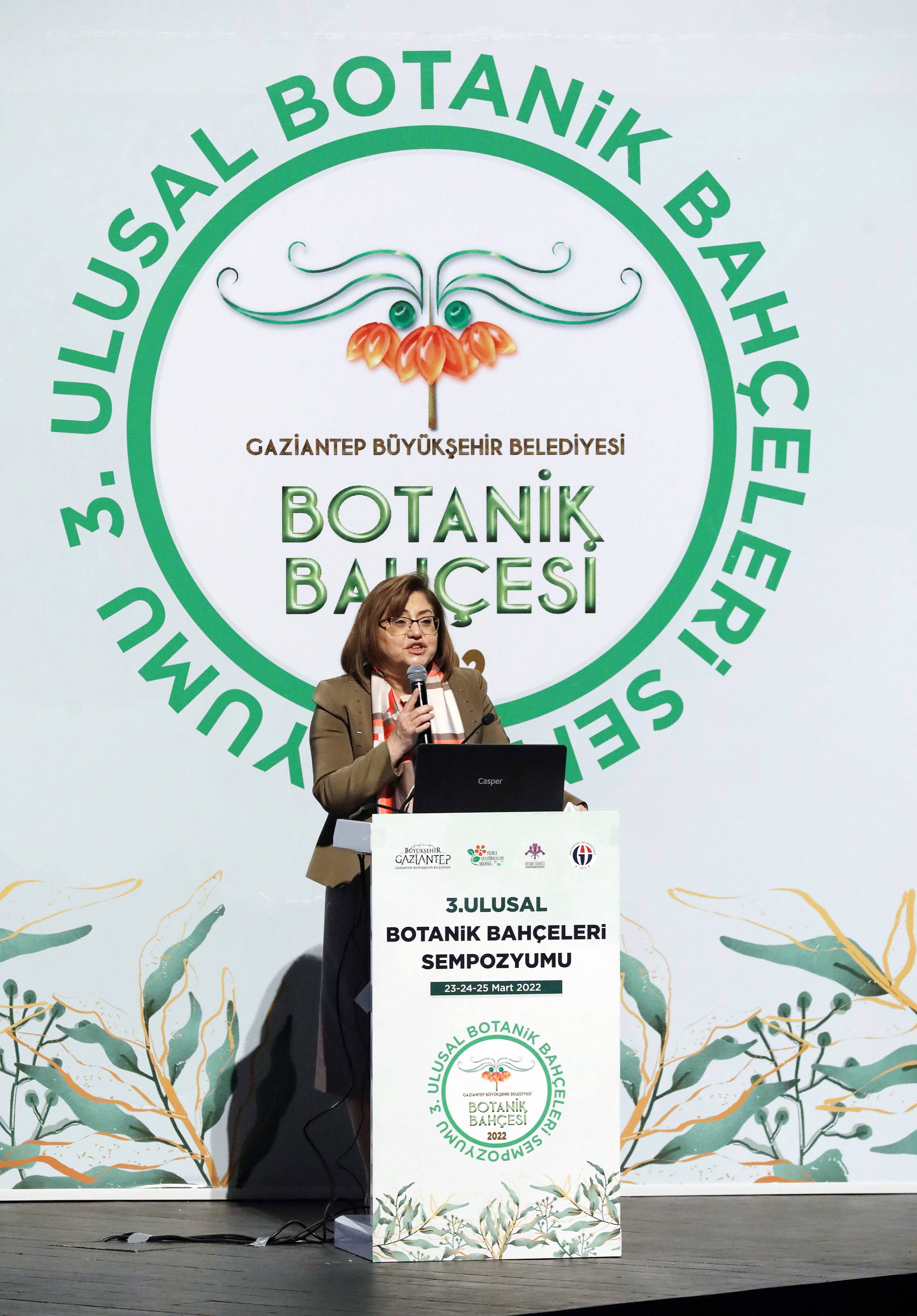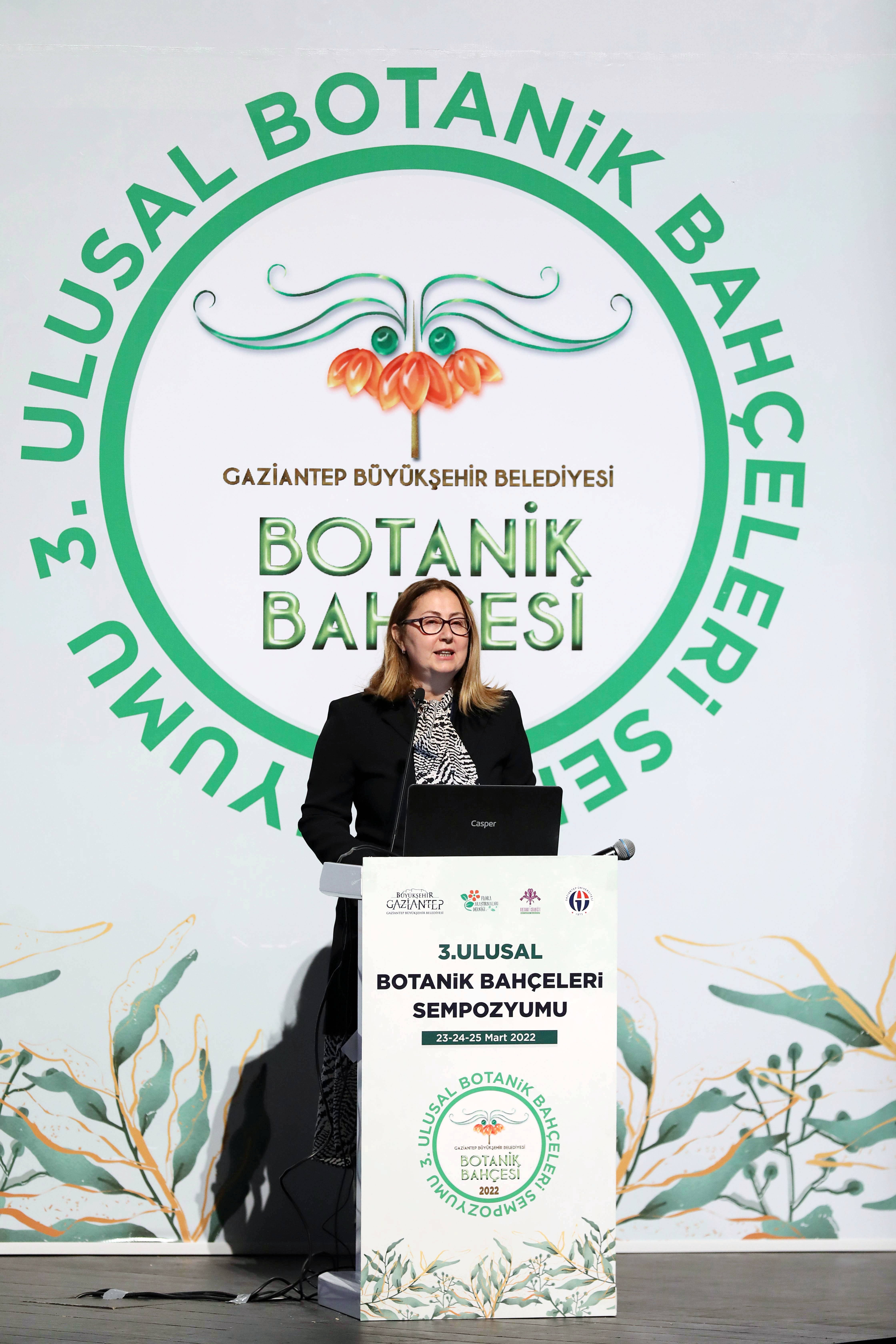 GAÜN Kongre ve Sanat Merkezi’nde düzenlenen sempozyumun açılışında konuşan Gaziantep Büyükşehir Belediye Başkanı Fatma Şahin, yeşil şehir olma yolunda bugüne kadar, enerji verimliliği, çevre koruma, sıfır atık, enerji yönetimi, ulaşım ve çevre konularında birçok proje geliştirdiklerini belirtti. Kentteki faaliyetlerine değinen Başkan Şahin, Gaziantep Büyükşehir Belediyesi bünyesinde bulunan Botanik Bahçesinin insanların uğrak noktası olduğunu söyleyerek şunları aktardı: “Botanik Bahçemiz bitki çeşitliliğiyle oksijen deposu haline geldi. Kentimizin en özel alanlarından biri olan botanik bahçemizin tüm kent mobilyaları, zemin imalatları, havuzlar, aydınlatma materyalleri 2021 yılında Gaziantep Büyükşehir Belediyesi Kent Estetiği Daire Başkanlığına bağlı atölyeler tarafından yenilendi.”
