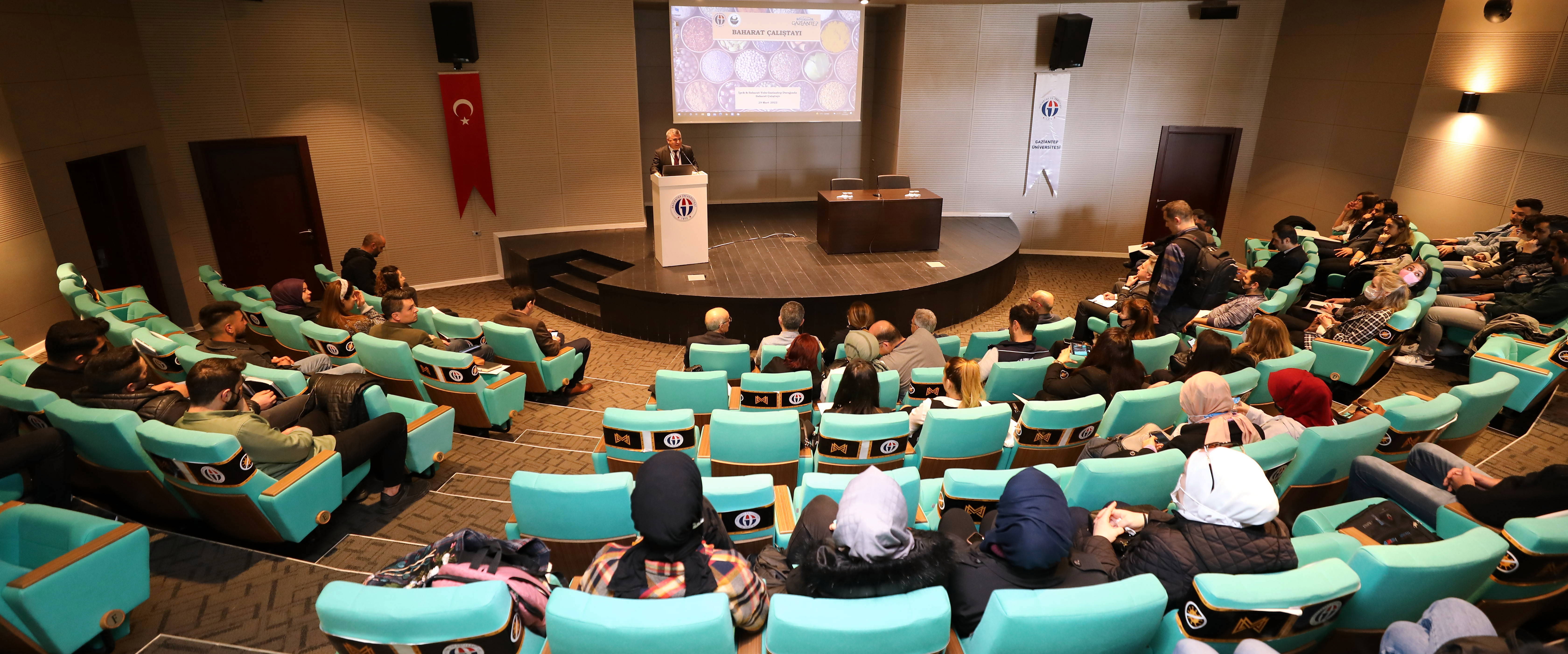 Fitoterapi ve Tıbbi-Aromatik Bitkiler Uygulama ve Araştırma Merkezi Müdürü ve Tarım ve Orman Bakanlığı Gıda işletmeleri ve Kodeks Daire Başkanlığı Baharat Komisyonu Başkanı Prof. Dr. Nazım Şekeroğlu açılış konuşmasında baharatların tarihçesine, ülkemizdeki ve özellikle de Gaziantep ve çevresindeki önemine değinerek, eski çağlardan itibaren şifa niyetine kullanılan baharatların, koruyucu ve hastalık semptomlarının azaltılmasında destekleyici rol oynadığını söyledi. Prof. Dr. Şekeroğlu, “Gaziantep lokasyon itibariyle oldukça önemli bir pozisyonda, tarih boyunca bu önemini kurumuş. Gaziantep İpekyolu güzergâhında aynı zamanda Baharat yolu güzergâhında. Baharatlar, geçmişten günümüze önemini kaybetmemiştir. Amerika’nın keşfi bile baharatlar sayesinde ortaya çıkmıştır. Gaziantep her gün yeni bir yönüyle keşfediliyor. Bugün Gastronomi turizmiyle dünya çapında nam salan şehrimizin aslında gerisinde baharatlar ve burada yani doğal ortamda yetişen sebze, meyve, doğal ortamlarda yetişen hayvanların etidir. Bu doğal yaşam sahasını korumadığımız, baharat bitkilerine ve baharatların kalitesine sahip çıkmadığımız durumda yarın gastronomiyi tehdit edebilir” ifadelerini kullandı.