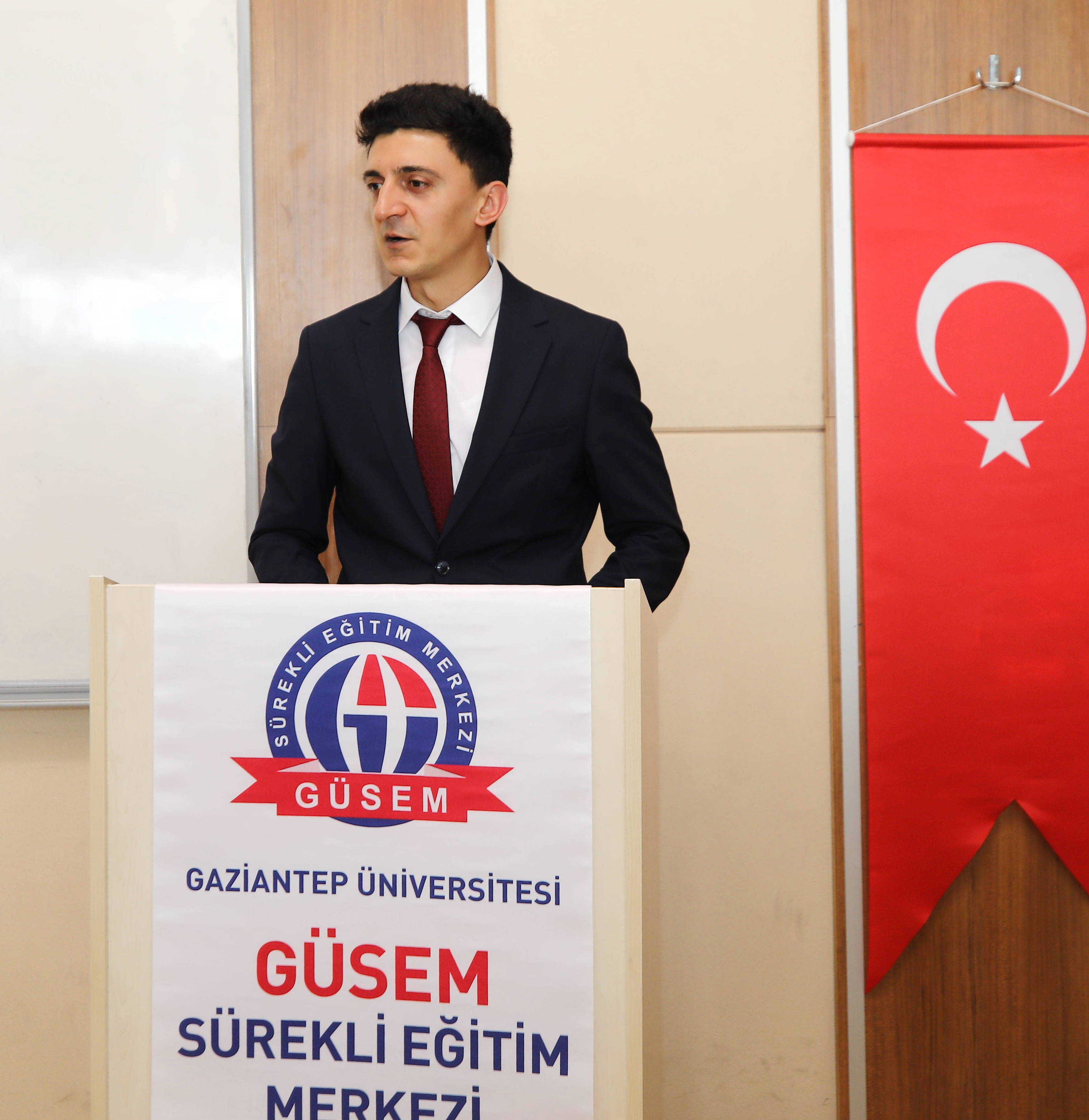 Eğitim programıyla ilgili düşüncelerini paylaşan Kursiyer Tuncay Taşdemir ise konuşmasında, “Gaziantep şehrinin en önemli dinamiklerinden olan Gaziantep Üniversitesi ve bir o kadar da şehre katkı ve hizmet sunan Gaziantep Serbest Muhasebeci ve Mali Müşavirler Odasının bu ortak programında yer alma fırsatını bizlere sunan herkese, tüm bu 7 haftalık süreçte bizlere emeği geçen başta eğitmen hocalar olmak üzere GÜSEM ailesine çok teşekkür ederim” diye konuştu.
