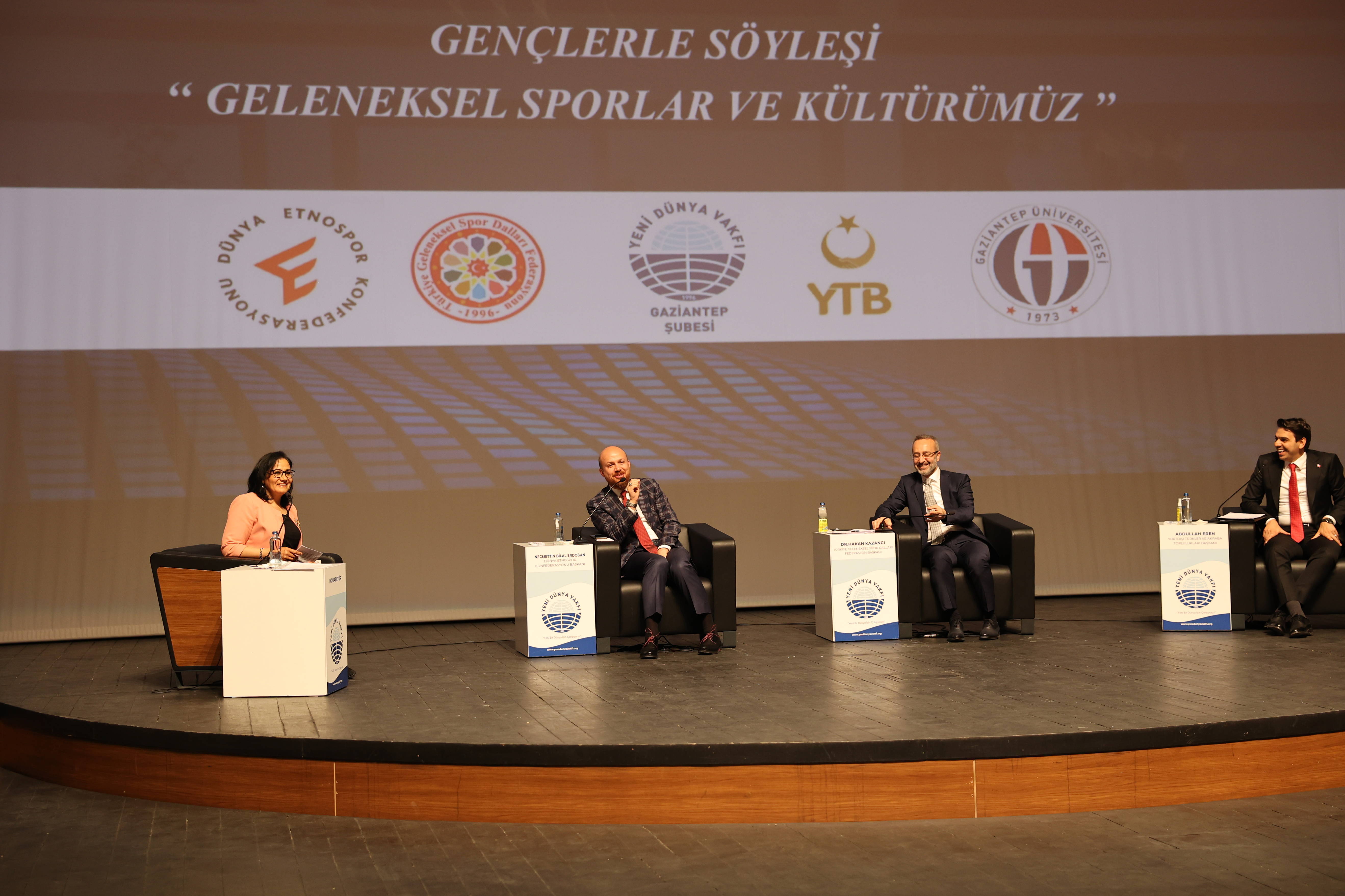 Dünya Etnospor Konfederasyonu Başkanı Necmeddin Bilal Erdoğan,  Yurtdışı Türkler ve Akraba Toplulukları Başkanı Abdullah Eren ve Türkiye Geleneksel Spor Dalları Federasyonu Başkanı Dr. Hakan Kazancı’nın katıldığı “Geleneksel Sporlarımız ve Kültürümüz“ konulu söyleşi, Yeni Dünya Vakfı Gaziantep Şubesinin daveti ve Gaziantep Üniversitesinin ev sahipliğinde düzenlendi.