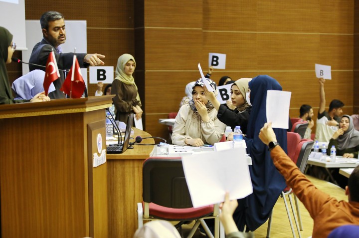 250 Öğrencinin eğitim gördüğü GAÜN İlahiyat Fakültesi Arapça hazırlık sınıflarından, her sınıf yarışmaya katılmak üzere aralarında 3 temsilci seçerek yarışmaya gönderdi. 10 Sınıfı temsilen 30 öğrencinin katıldığı yarışmaya, başta İlahiyat Fakültesi Dekanı Prof. Dr. Mehmet Akbaş olmak üzere hazırlık sınıfında derslere giren öğretim elemanları ve öğrenciler katıldı.