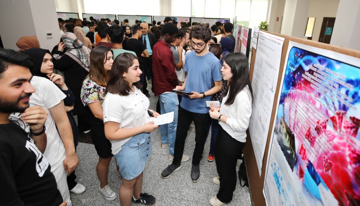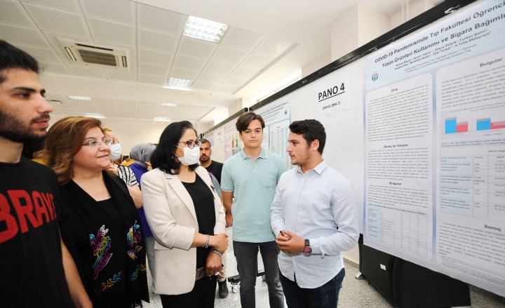 Öğrencilerin bilimsel bakış açısı kazanması, literatür tarama, bilimsel hipotez kurabilme, bilimsel analiz yeteneklerinin oluşması, poster hazırlayabilme yetkinliklerini kazanabilmesi amacını taşıyan Bilim Modülü etkinliğinde, GAÜN Rektör Yardımcısı Prof. Ayşe Balat öğrencilerin bilimsel çalışmalarını inceleyerek öğrencilerden çalışmaları hakkında bilgi aldı.