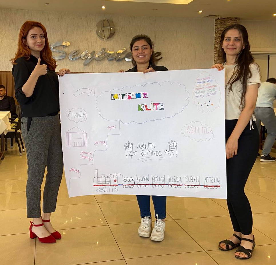 Dr. Öğr. Üyesi Gonca Uludağ’ın koordinatörlüğünde yürütülen çalıştayda, öğrencilerin kalite süreçlerindeki rolü, katkıları ve kalite topluluklarının önemine değinildi. Genç Kalite Topluluğu Başkanı Hatice Kübra Erdoğan ise konuşmasında şunları söyledi: “Öğrenciler kaliteyi tartışırken, kendi üniversitelerindeki kalitenin paydaşı olduklarını ve süreçlerde yer almanın önemini anladı. Kaliteye katkıları yönündeki kendi geliştirdikleri çözümleri ve önerileri posterleştiren öğrenciler, kalitenin parçası olduklarında daha hızlı yol alındığını fark etti.”