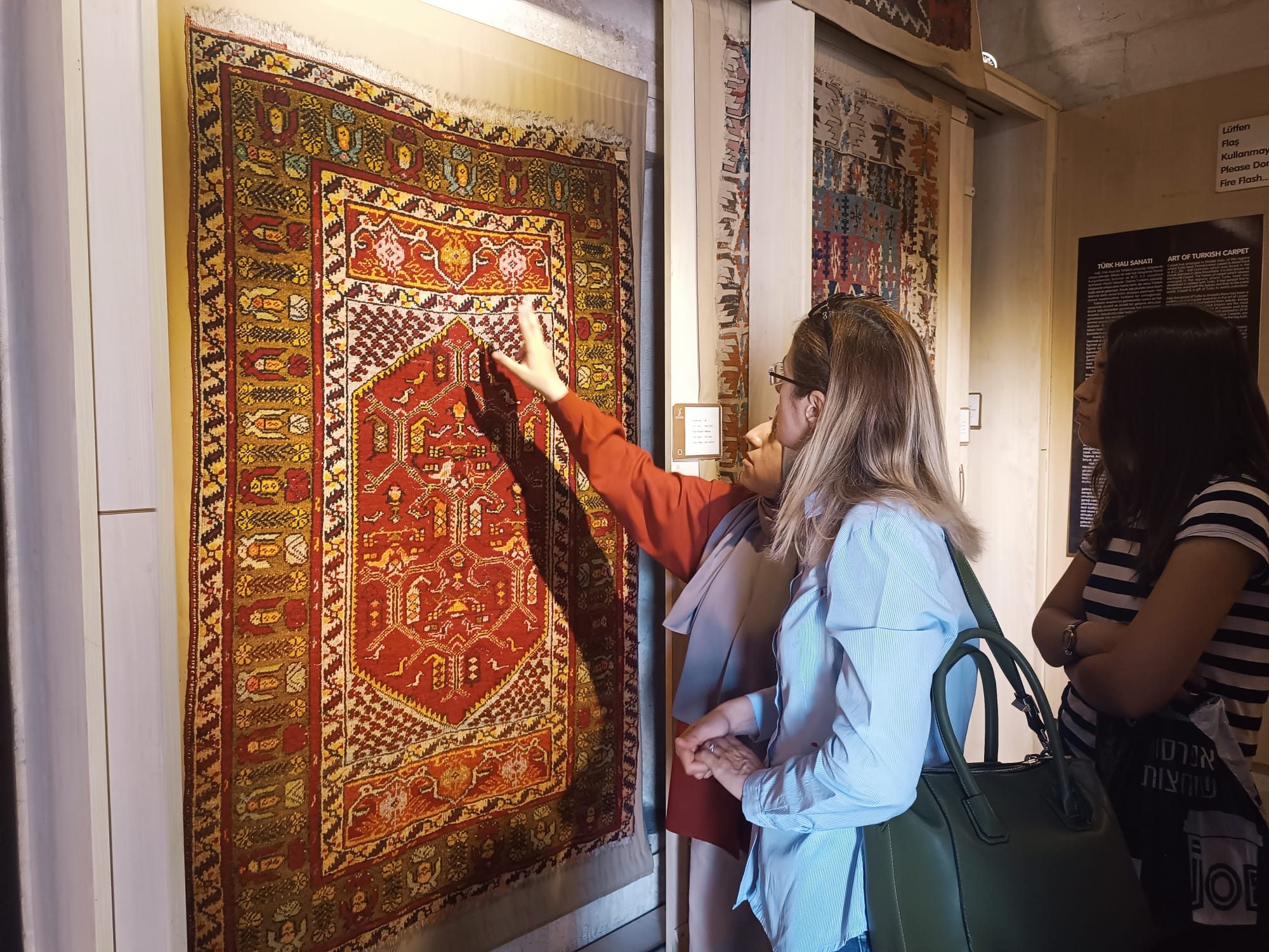 Doç. Dr. Avcıoğlu Kalebek konuşmasının devamında şunları söyledi: “Müzede yer alan Sivas, Kayseri, Fethiye, Konya ve Gaziantep yöresine ait halı ve kilimlerde Anadolu motifleriyle işlenmiş göçebe kültürünü yansıtan örnekleri görmek mümkündür. Öğrencilerimiz, kilim ve halılarda yer alan motiflerin onu dokuyan kişilere ait duygu ve düşüncelerinin sembolü olarak işlenen motiflerin anlamlarını öğrenme fırsatı yakaladı. Teorik olarak işlenen derslerin pratiğe dökülerek daha kalıcı bir öğrenme ortamı sunuldu.”