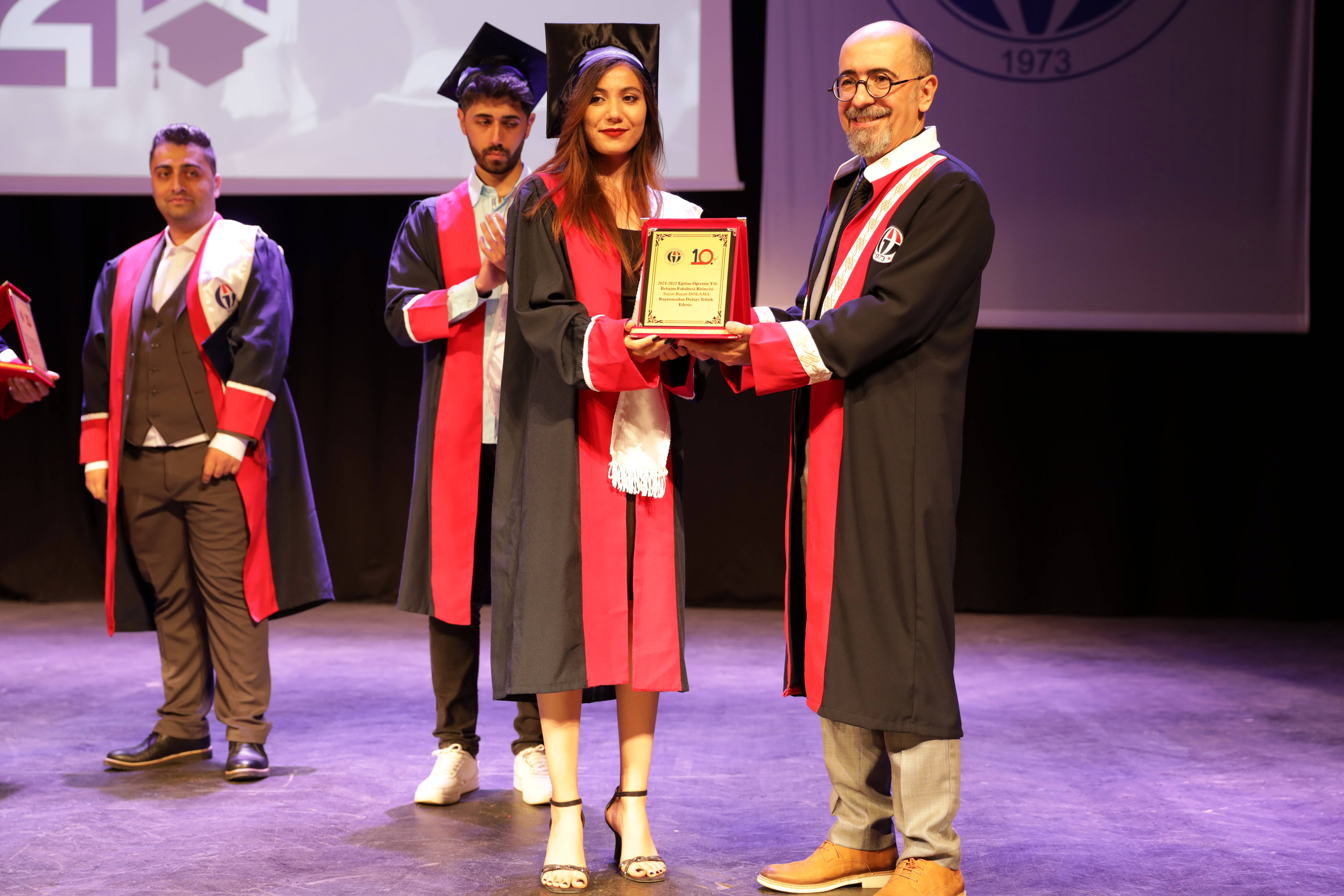 Tören, protokol üyelerinin ve akademisyenlerin bölümlerde dereceye giren ve mezun olan öğrencilere hediye ve başarı belgelerini vermelerinin ardından, öğrencilerin mezuniyet yemini etmesi ve kep atılmasıyla sona erdi.