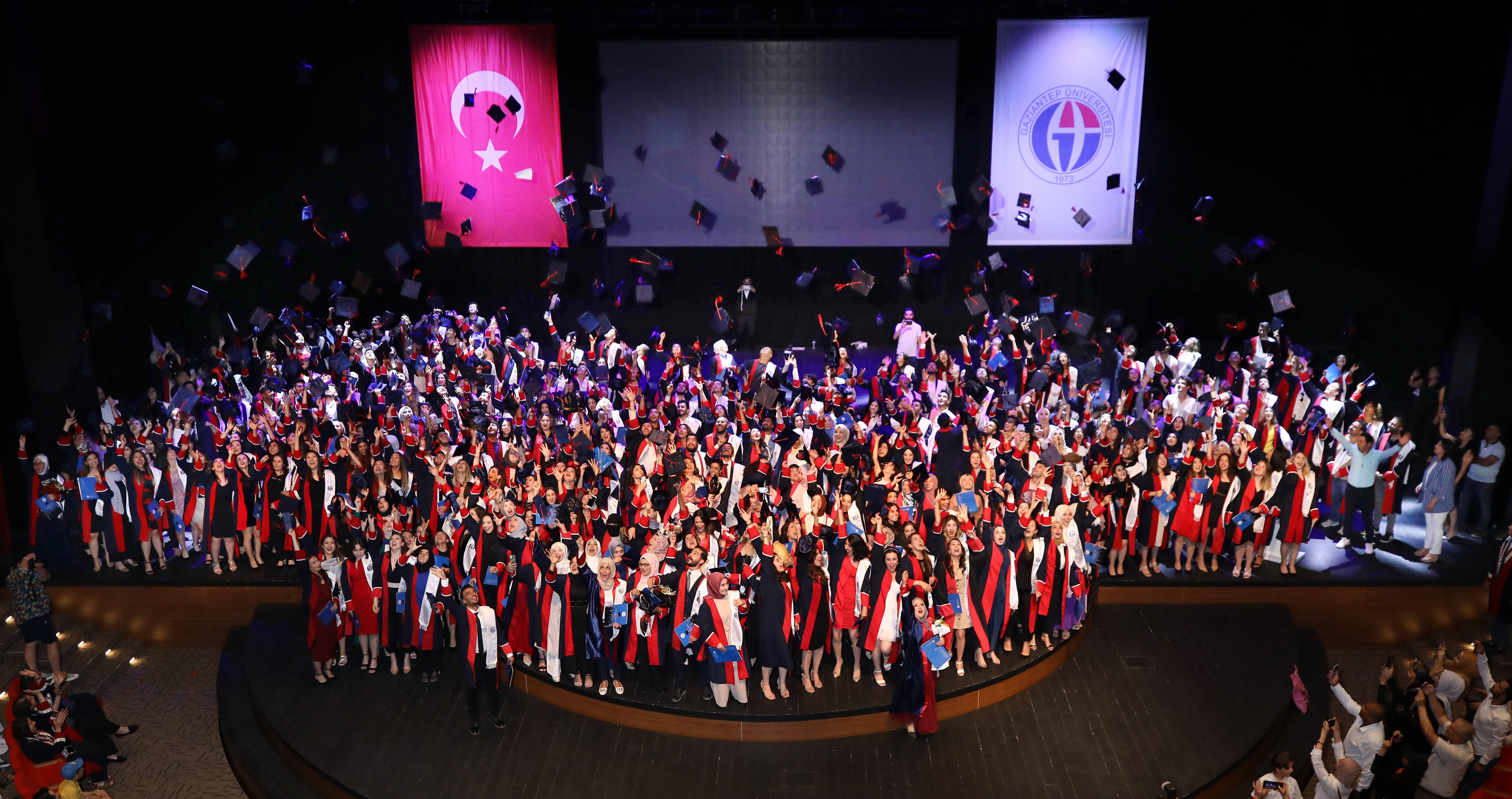 GAÜN Mavera Kongre ve Sanat Merkezi’nde gerçekleşen tören, mezun olan öğrencilerin mezuniyet belgelerini alması ve keplerini havaya atmasıyla sona erdi.