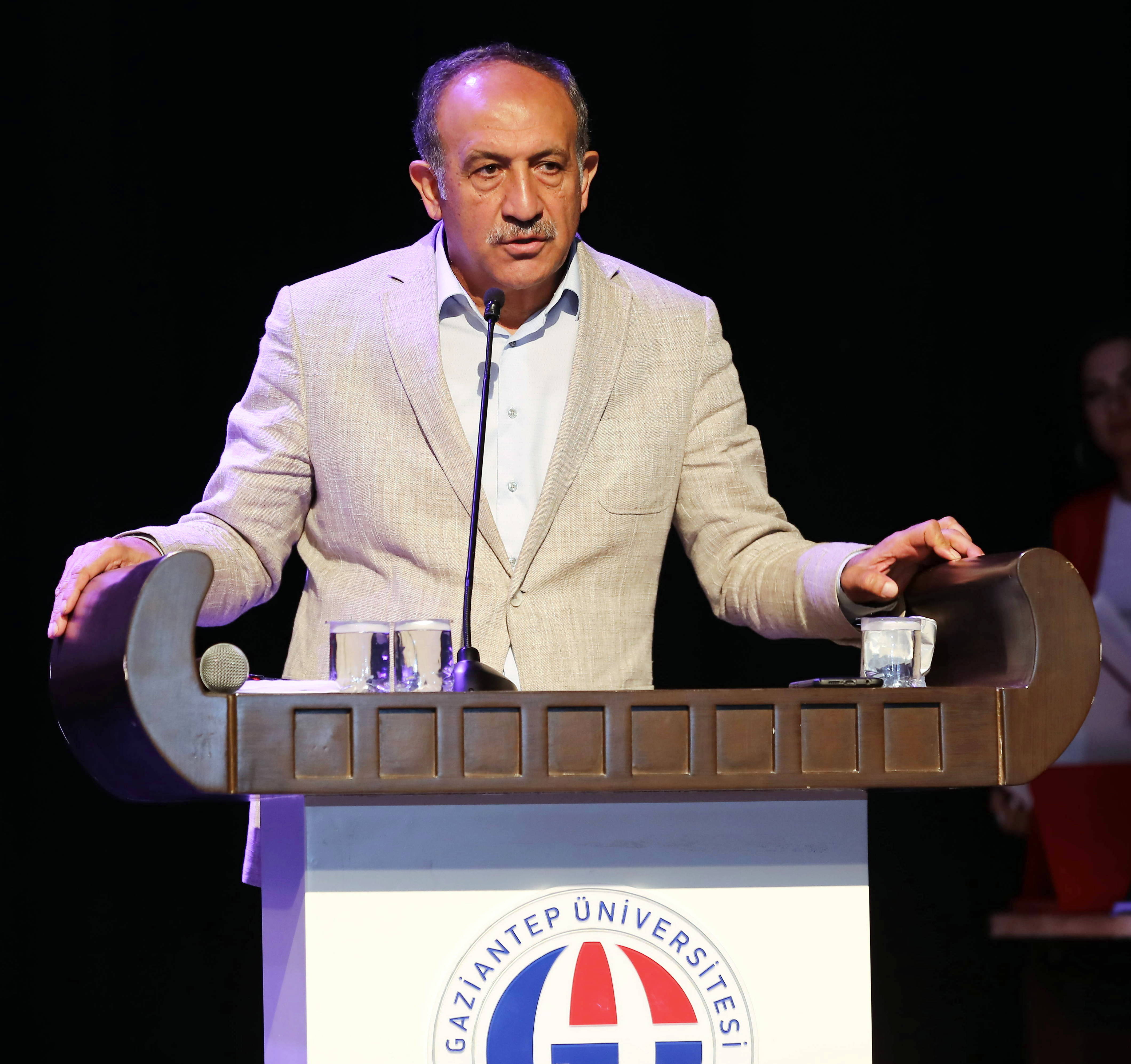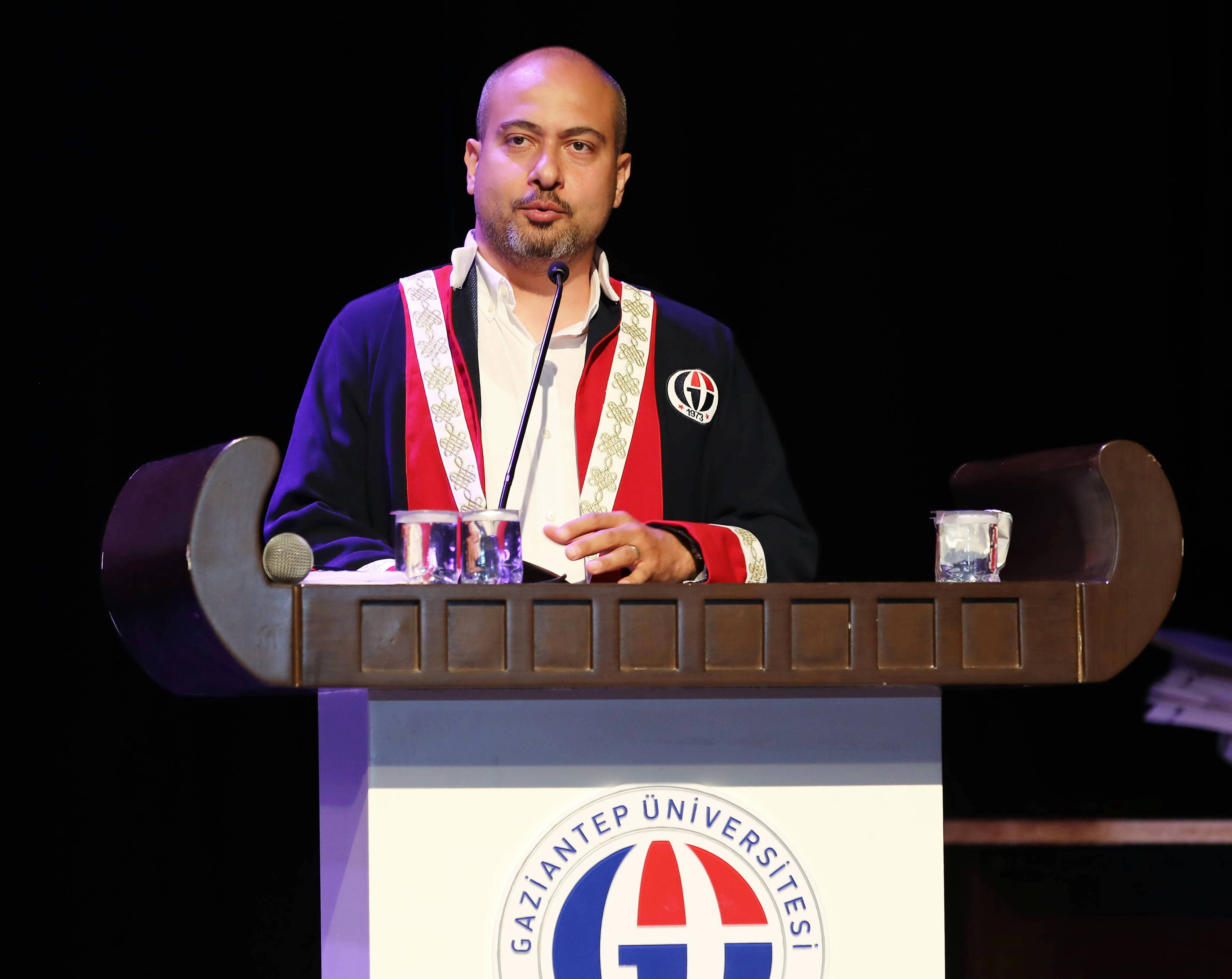 Güzel Sanatlar Fakültesi mezuniyet töreninin açılış konuşmasını yapan Rektör Yardımcısı Prof. Dr. Mustafa Sarıbıyık, Güzel Sanatlar Fakültesi’nde okuyan her öğrenci nitelikli bir eğitim sonrası hayata atıldığını belirterek, Gaziantep Üniversitesinin bir marka üniversite olduğunu söyledi. Prof. Dr. Sarıbıyık, “Üniversitedeki eğitim birimlerimiz bilgi peşindedir ama Güzel Sanatlar Fakültesi hem bilgi hem de iyi ve estetiğin peşindedir. İnsanlığa daha medeni daha yaşanabilir bir hayat sunabilmek için estetik değerlerimiz güzele tabi olan yolculuğumuzu devam ettirmek durumundayız. Hiç şüphesiz yaratıcı güzeldir, güzel olanı sever ilkesinden hareketle hep bilgi merkezli güzelin peşinde olmak gibi bir görevimiz var. Her insan toplumda güzeli ifade edebilmesi için çaba sarf etmesi gerekiyor” şeklinde konuştu.
