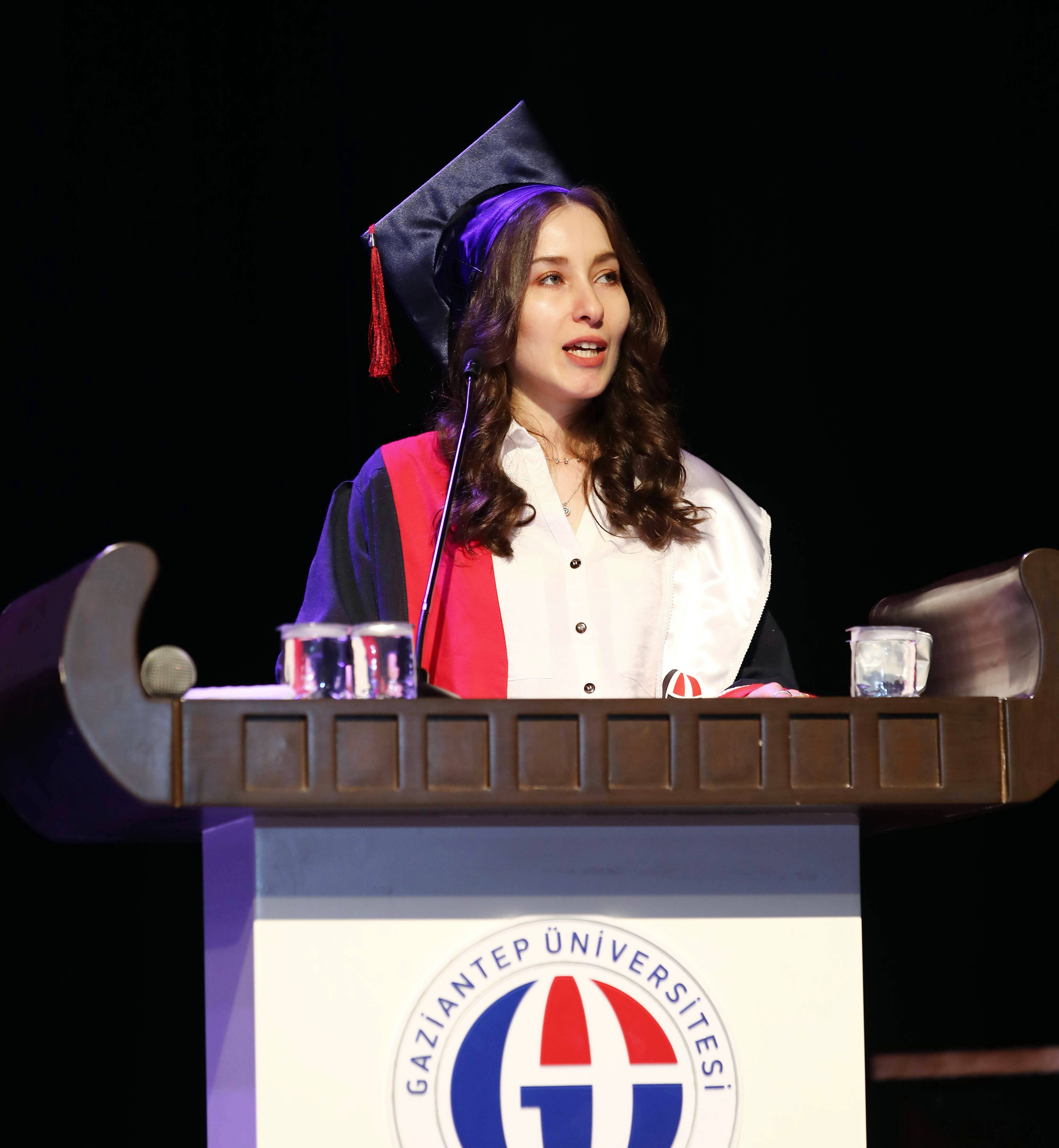 Mezunlar adına konuşan Fakülte Birincisi Seda Dırgun ise “Tutkuyla yapılan her işin başarı getireceğine inananlardanım. Hayallerimiz tutkuyla istemek ve onu işe dönüştürmek kendimiz için yapabileceğimiz en güzel eylemdir” dedi.
