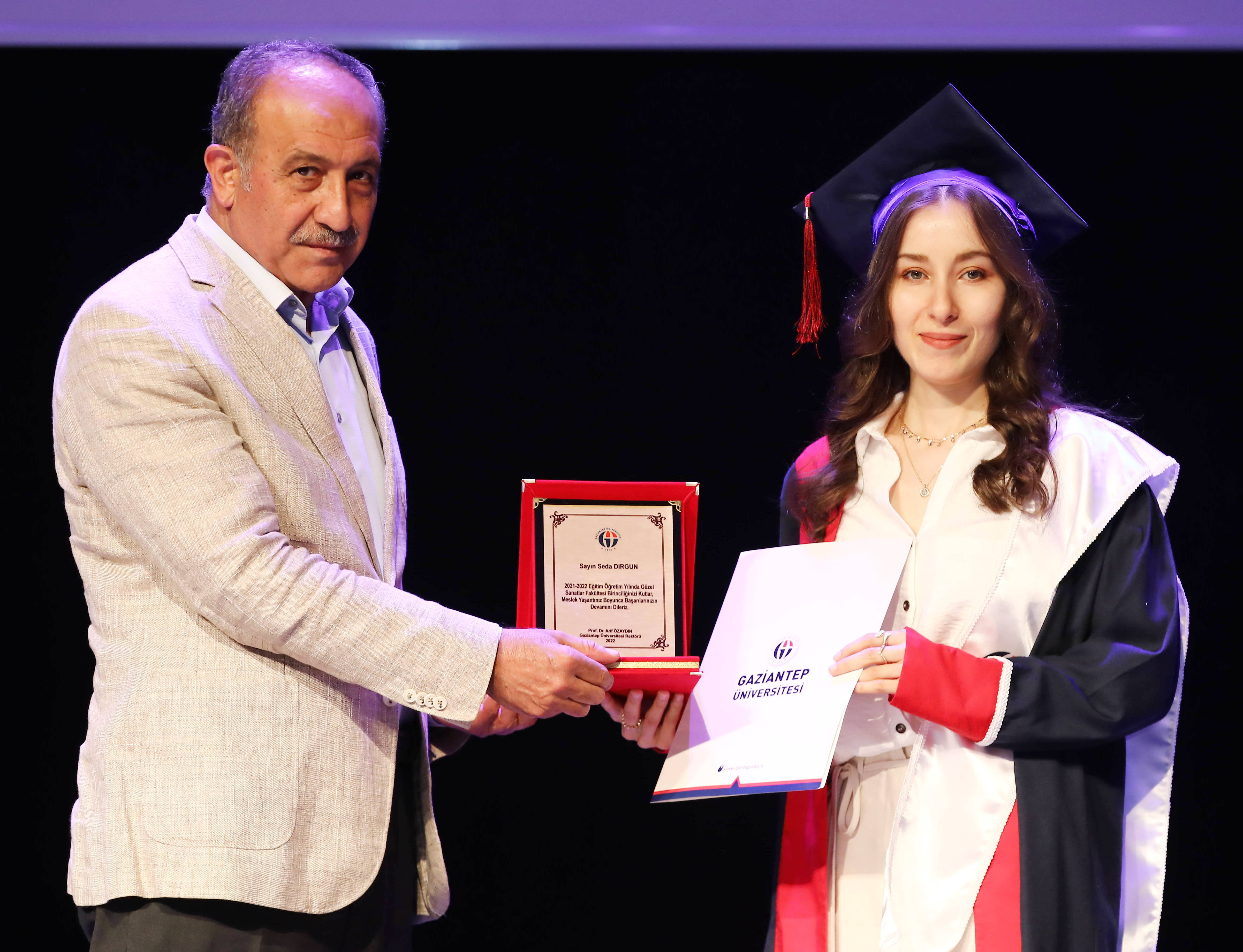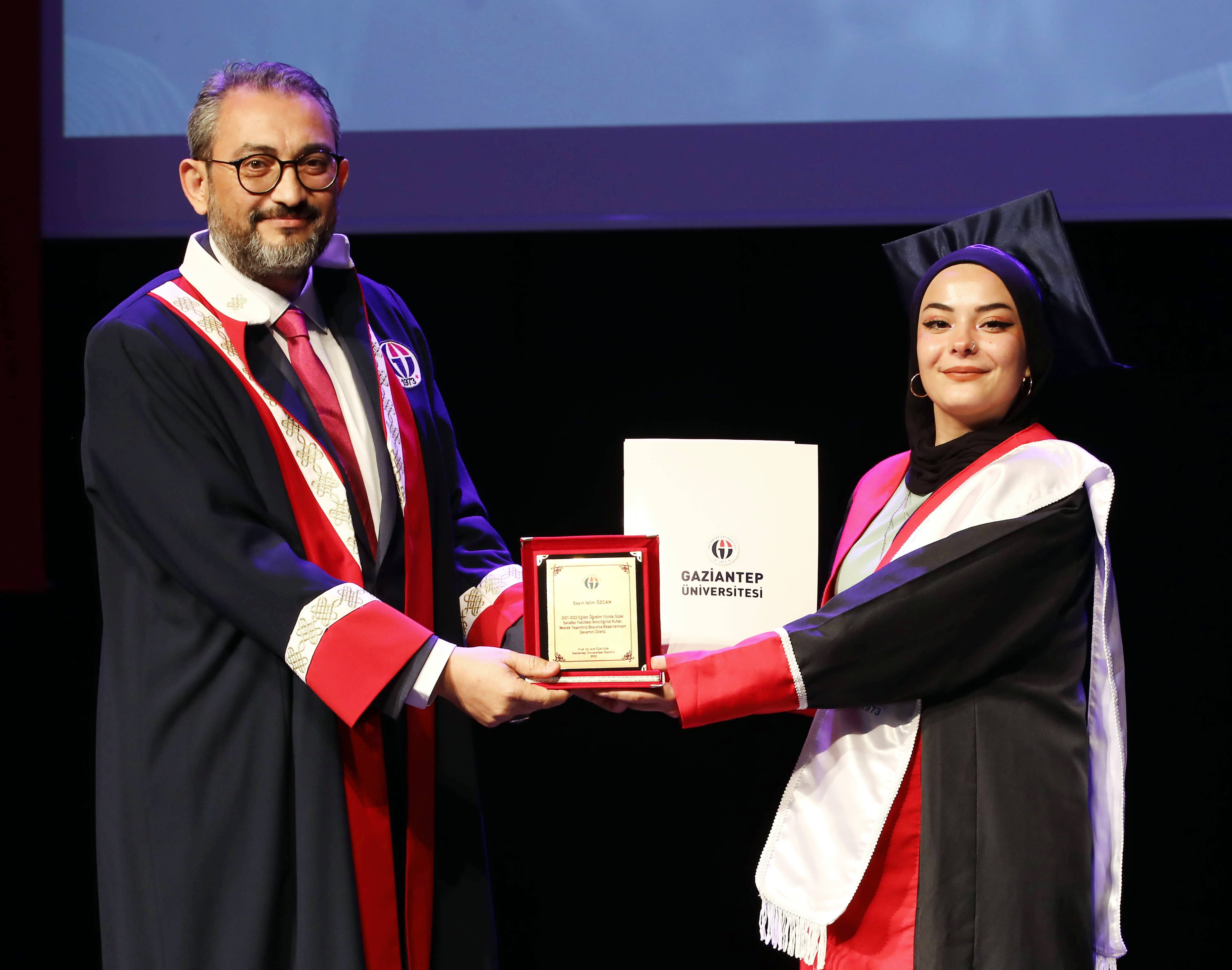 GAÜN Mavera Atatürk Kültür Sahnesi’nde gerçekleşen tören, Güzel Sanatlar Fakültesi tarafından hazırlanan, yönetmenliğini Doç. Dr. Özcan Demir’in yaptığı “50 Yıl: Gaziantep Üniversitesinin Yarım Asrına Armağan” adlı belgeselin gösterimiyle başladı. Gaziantep Üniversitesinin dünden bu güne kadar olan değişim ve gelişim sürecini konu edinen belgesel, katılımcılar tarafından ilgiyle izlendi.