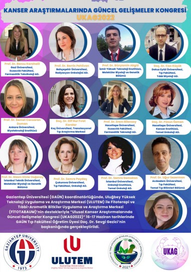 Gaziantep Üniversitesi (GAÜN) koordinatörlüğünde, Uluğbey Yüksek Teknoloji Uygulama ve Araştırma Merkezi (ULUTEM) ile Fitoterapi ve Tıbbi-Aromatik Bitkiler Uygulama ve Araştırma Merkezi’nin (FİTOTABAUM) destekleriyle “Ulusal Kanser Araştırmalarında Güncel Gelişmeler Kongresi (UKAG2022)” online olarak gerçekleştirildi.