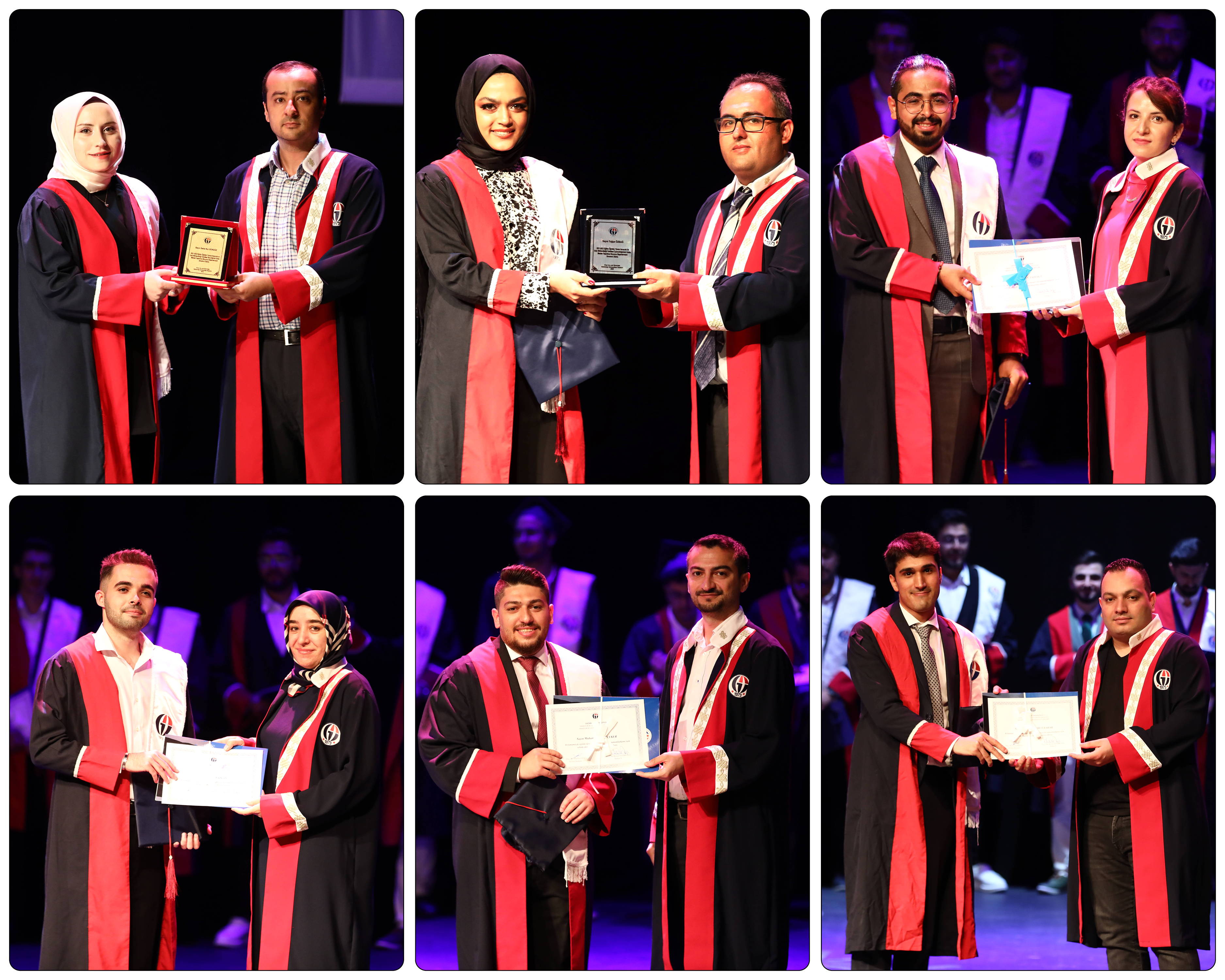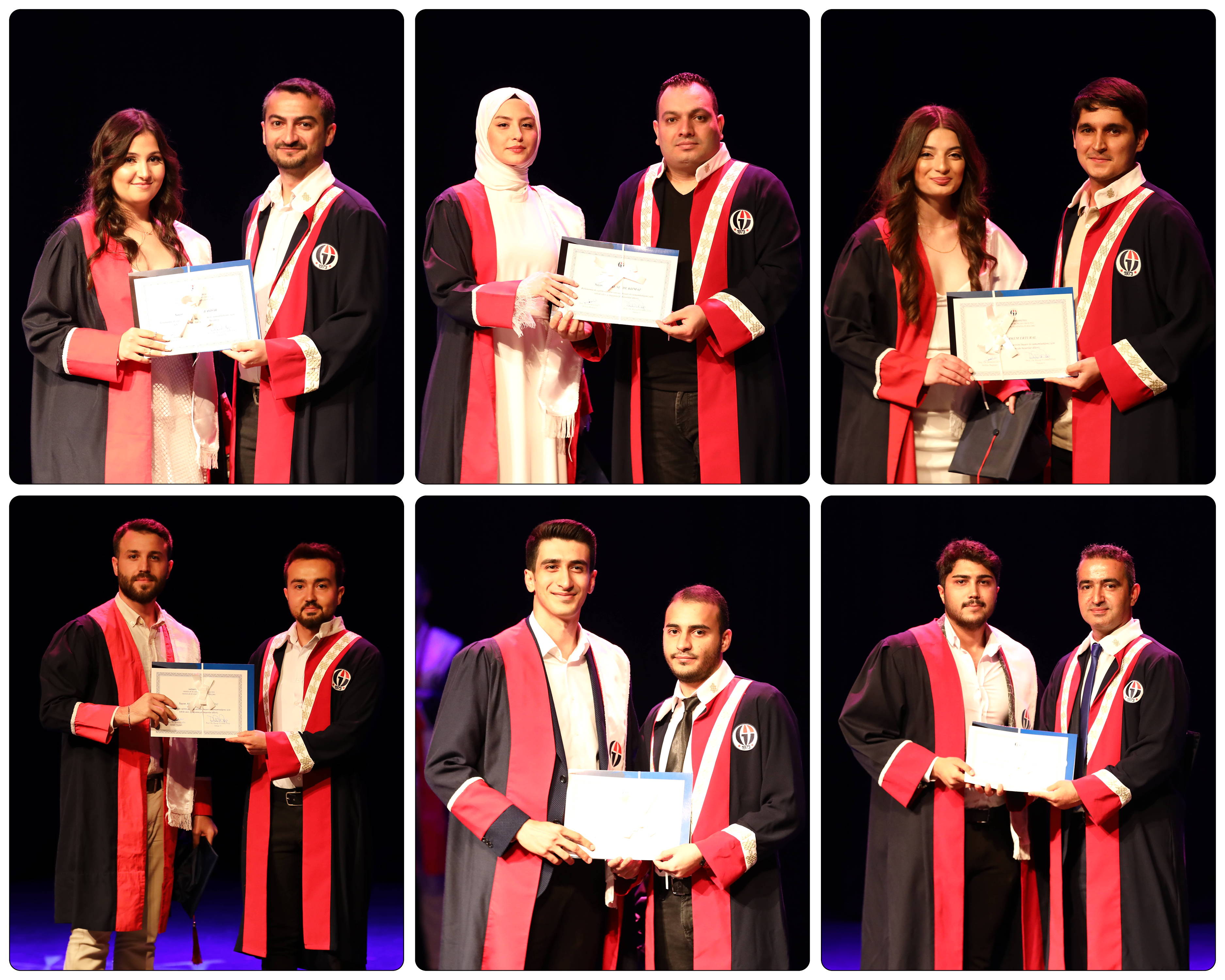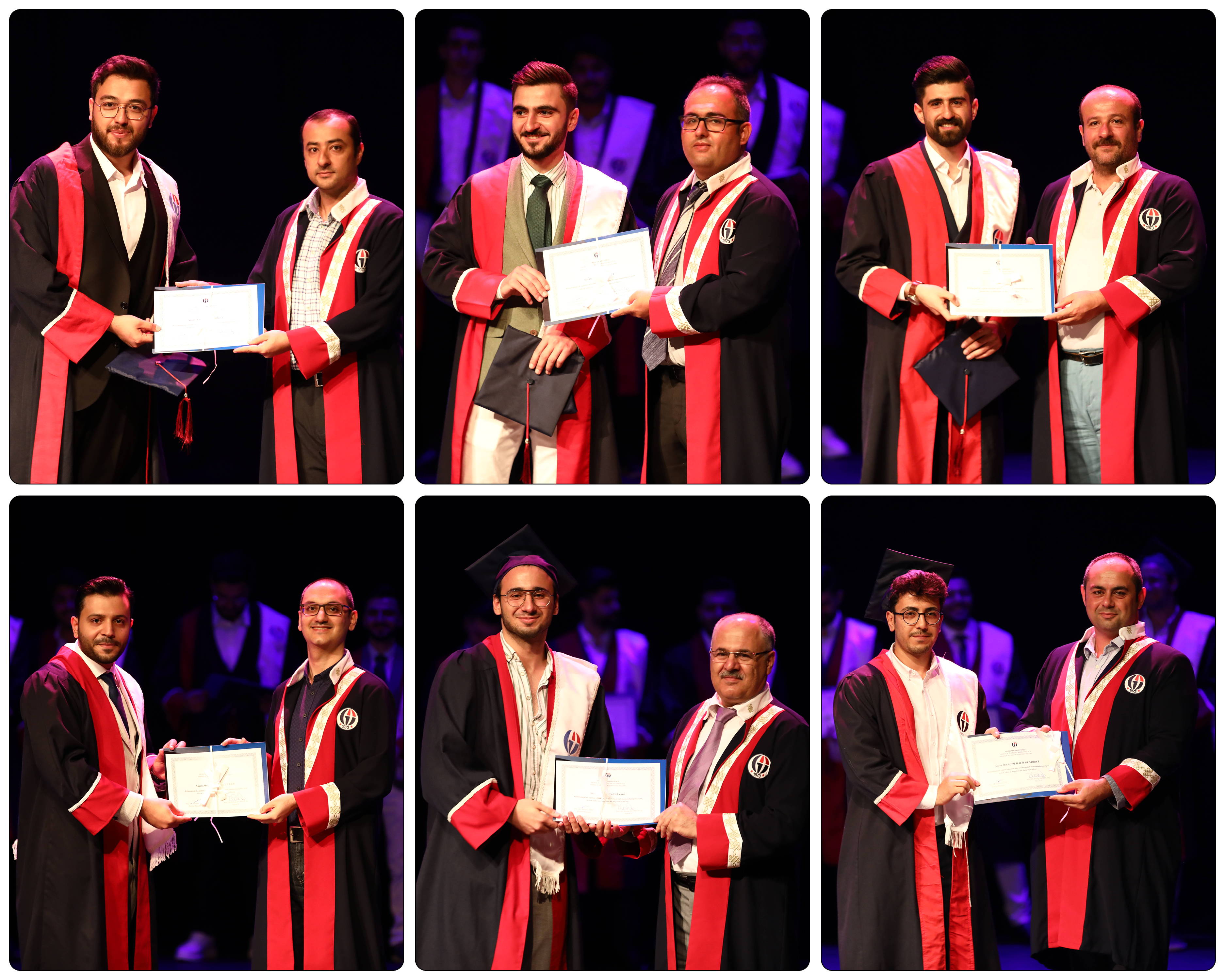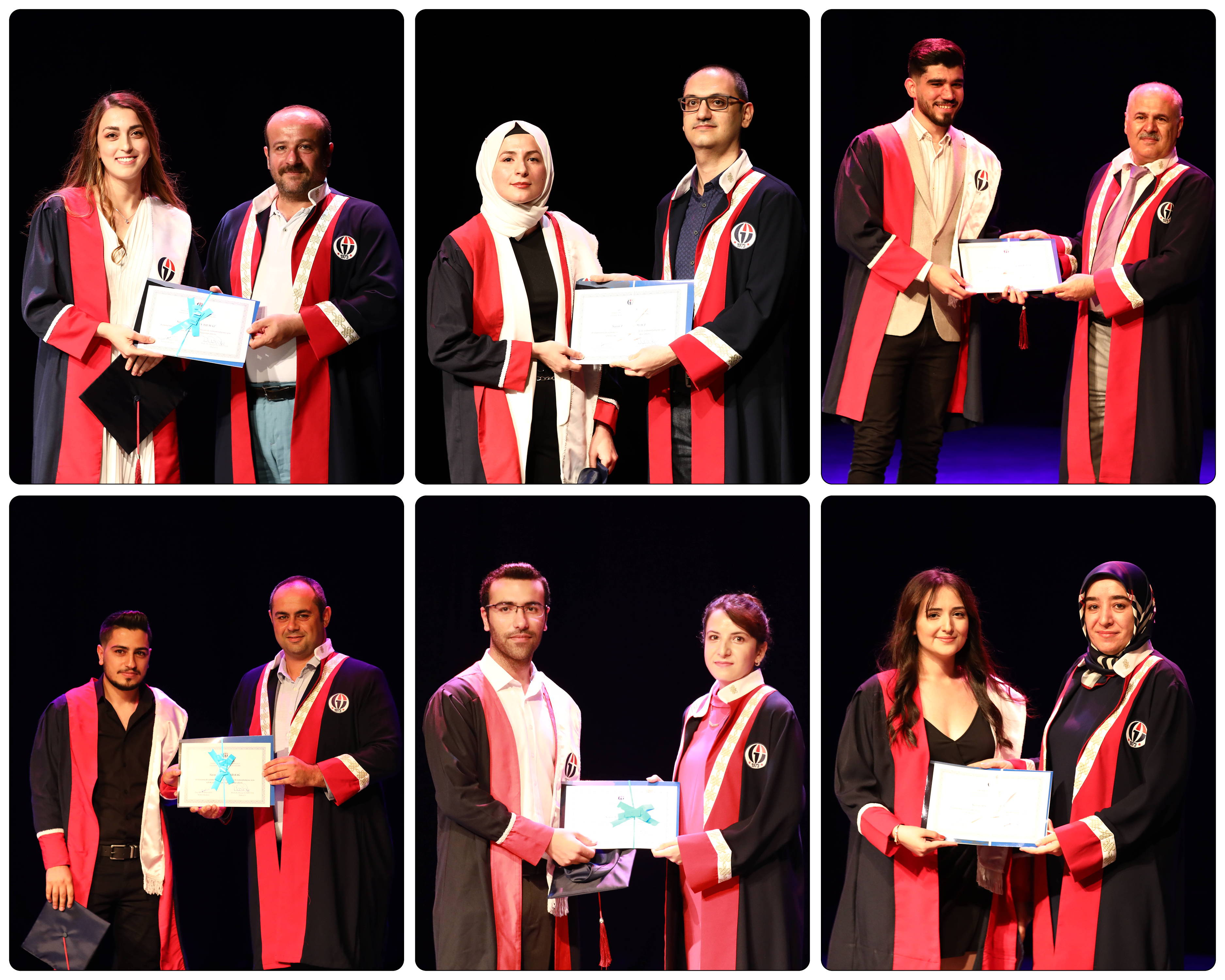 Tören, fakültede dereceye giren ve mezun olan öğrencilere öğretim üyeleri tarafından diploma ve hediyelerinin verilmesi sonrasında coşkuyla keplerini havaya atmasıyla sona erdi.