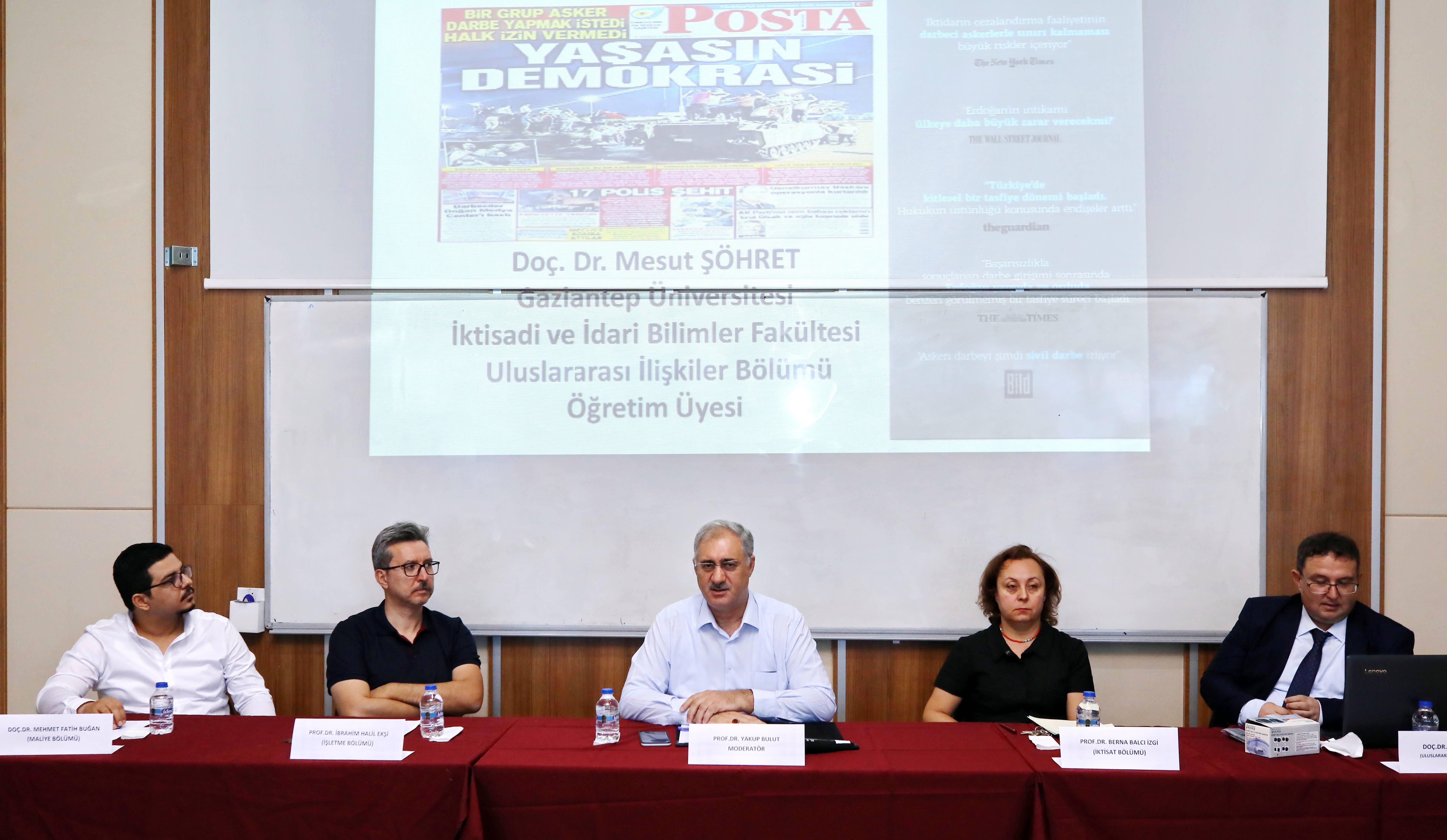 15 Temmuz Demokrasi ve Milli Birlik Günü Anma etkinlikleri kapsamında, Gaziantep Üniversitesi (GAÜN) İktisadi ve İdari Bilimler Fakültesi tarafından hazırlanan ”15 Temmuz Sosyo-Ekonomik ve Siyasal Yansımalar” konulu Panel gerçekleştirildi.