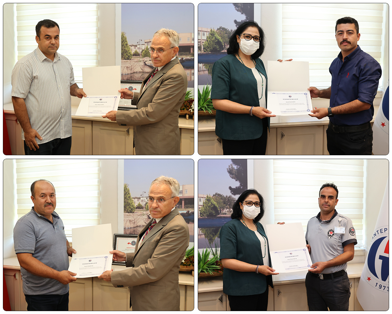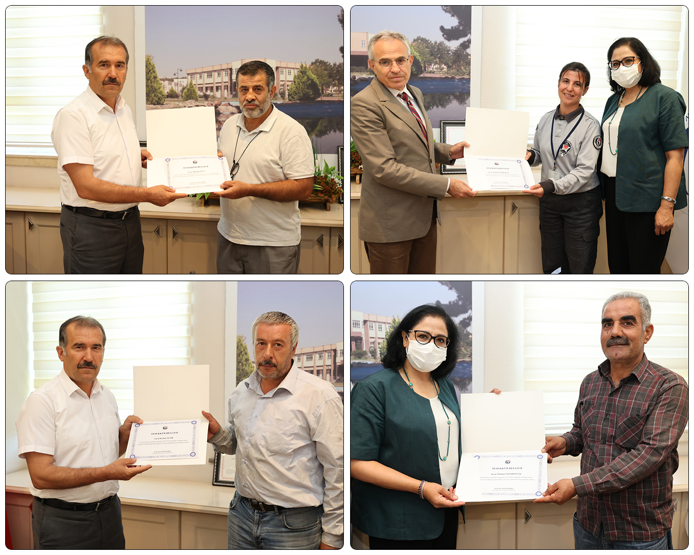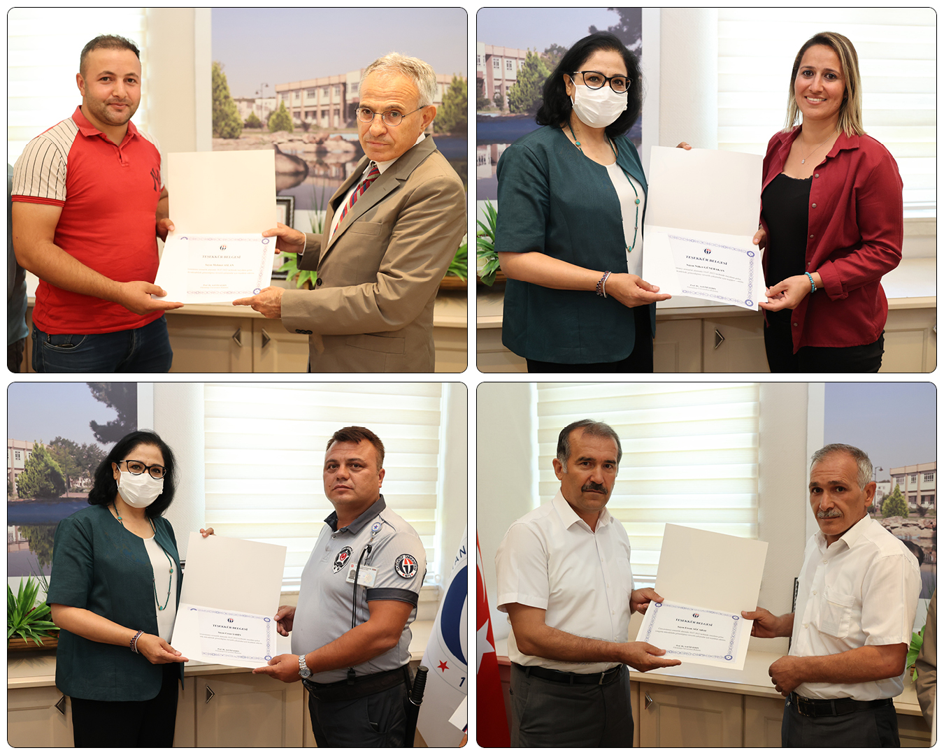 Personele belgelerini Rektör Prof. Dr. Arif Özaydın’ın yanı sıra Rektör Yardımcısı Prof. Dr. Recep Yumrutaş, Prof. Dr. Ayşe Balat, Genel Sekreter Dr. Öğretim Üyesi Muhammet Musa Budak, Genel sekreter yardımcıları; Nuh okumuş ve Mehmet Fatih Evyapan takdim etti.