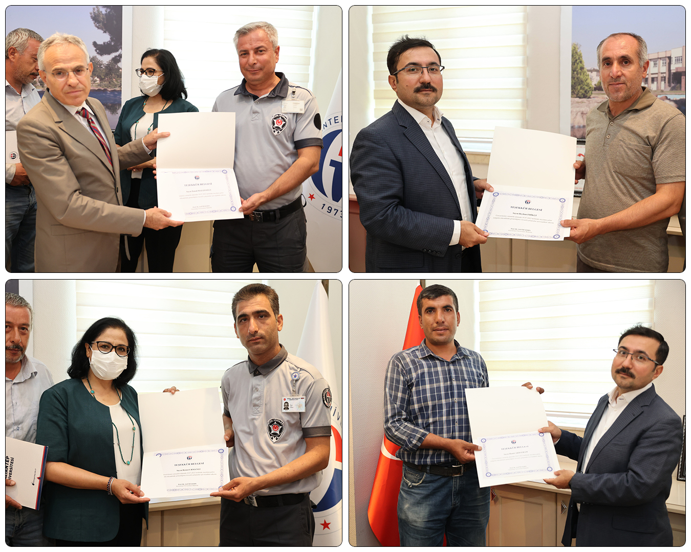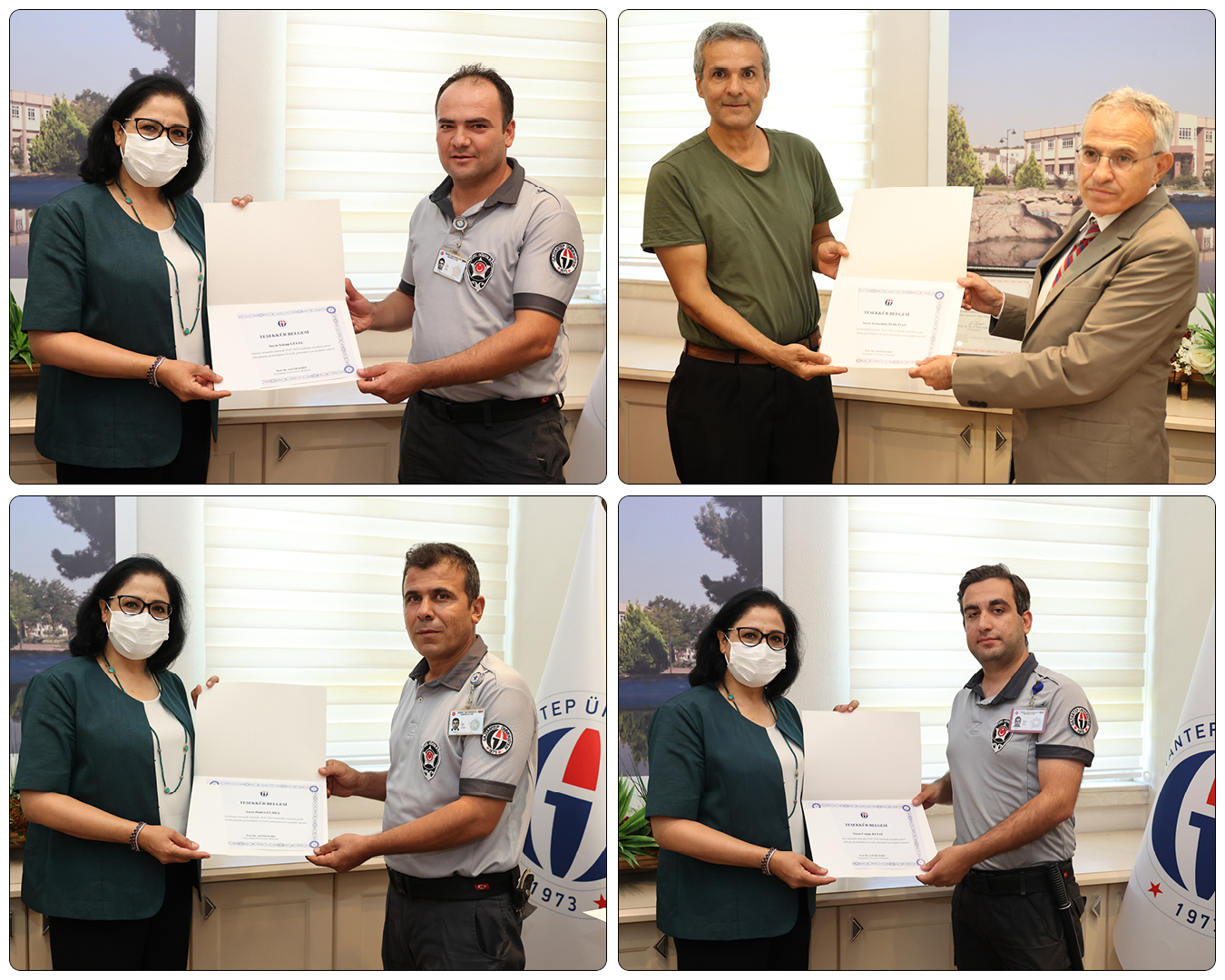 Burç ormanlarında çıkan yangına ilk müdahale yapan GAÜN personeli, Rektör Prof. Dr. Arif Özaydın tarafından belge verilerek ödüllendirildi.