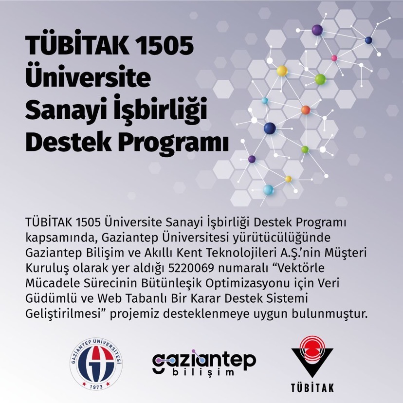 Gaziantep Bilişim ve Akıllı Kent Teknolojileri A.Ş.’nin müşteri kuruluş olduğu “Vektörle Mücadele Sürecinin Bütünleşik Optimizasyonu için Veri Güdümlü ve Web Tabanlı Bir Karar Destek Sistemi Geliştirilmesi” başlıklı proje, Gaziantep Büyükşehir Belediyesi iştiraki olan Gaziantep Bilişim ve Akıllı Kent Teknolojileri A.Ş. ile birlikte yürütülecek.