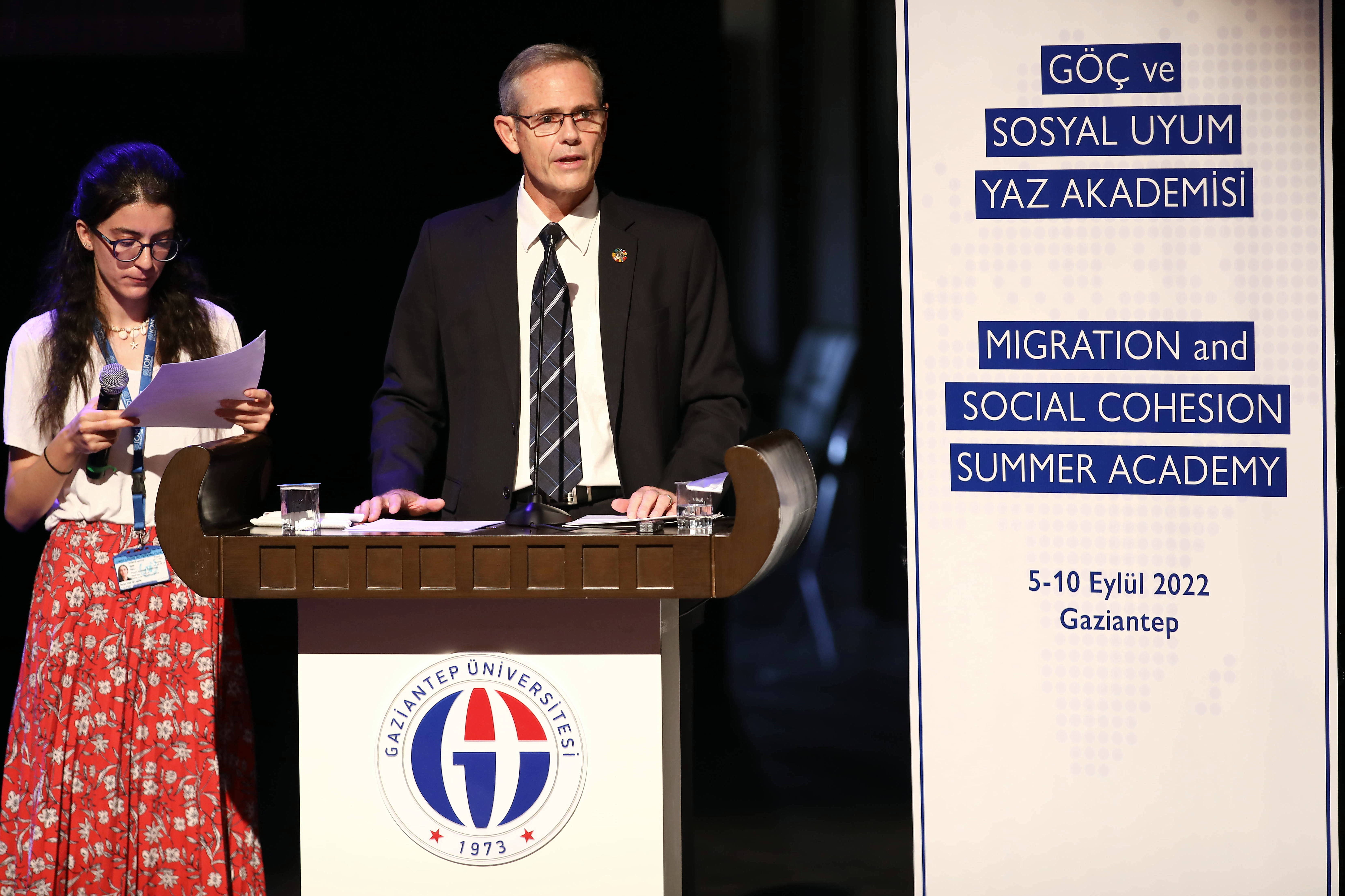 Gaziantep Üniversitemiz (GAÜN) Göç Enstitüsü tarafından hazırlanan ‘Göç ve Sosyal Uyum Yaz Akademisi’ programının açılışında konuşan GAÜN Rektörü Prof. Dr. Arif Özaydın, göçün dün ve bugün var olduğunu yarın da olacağını belirterek, “Göç, bu coğrafyanın kaderiyle eş değer. ‘İnsanı yaşat ki devlet yaşasın’ sözüyle, insan üzerine odaklanmış bir geleneğimiz, kültürümüz medeniyetimiz var” dedi.
