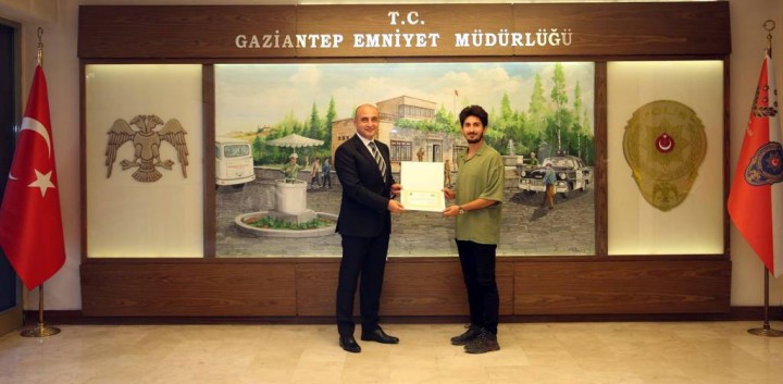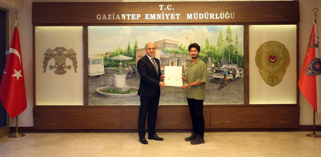 GAÜN Güzel Sanatlar Fakültesi Dekanı Prof. Dr. Mustafa Cevat Atalay’ı, Radyo Televizyon ve Sinema Bölümü Öğretim Görevlisi Menekşe Meriç Avşar’ı ve görev alan öğrenci ve ailelerini ağırlayan İl Emniyet Müdürlüğü yetkilileri, katkılarından dolayı öğretim üyeleri ve öğrencilere teşekkür belgelerini sundu. Günümüzde yalnızca ülkemizde değil tüm dünya genelinde uyuşturucu ve madde bağımlılığının insanlık için önemli bir tehdit unsuru olduğunu belirten Prof. Dr. Cevat Atalay, “Böyle bir tehdit karşısında tüm birey, kurum ve kuruluşlara önemli görev ve sorumluluklar düşmektedir. Biz de bu sorumluluk bilinciyle gerçekleştirdiğimiz kısa film çalışmasında başta Gaziantep İl Emniyet Müdürlüğü olmak üzere Narkotik Şube Baş komiserimizin desteğini her daim yanımızda hissettik” diyerek projede emeği geçen herkese teşekkür etti. Öğretim Görevlisi Menekşe Meriç Avşar ise konuşmasında, bu tarz çalışmaların öğrenciler için teoriği pratiğe dönüştürmede ve sosyal sorumluluk bilincinin oluşması konusunda faydalı bir sonuç doğurduğuna dikkat çekti.