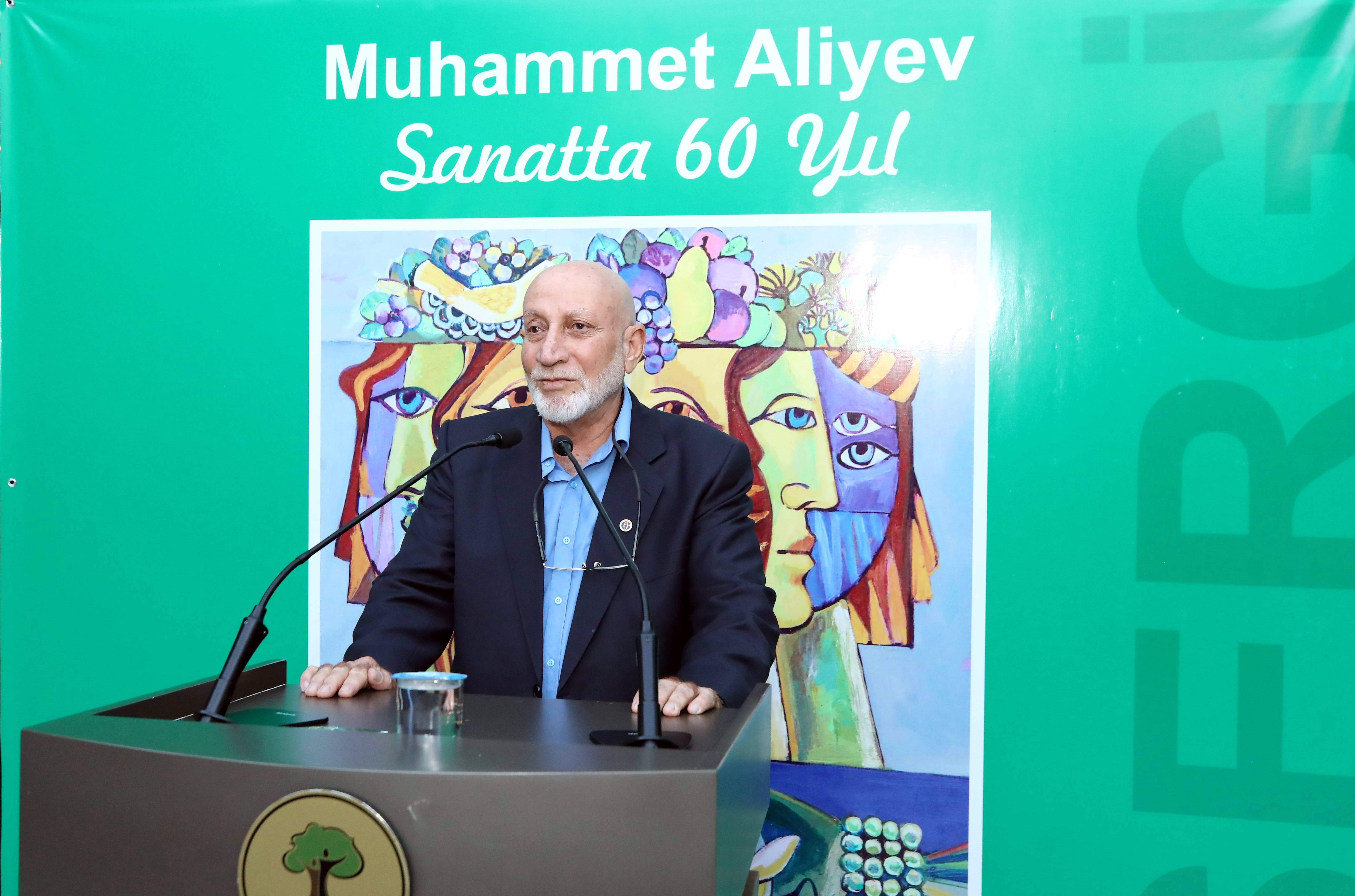 Serginin açılışında konuşan Güzel Sanatlar Fakültesi Dekanı Prof. Dr. Mustafa Cevat Atalay, Dr. Öğretim Üyesi Muhammet Aliyev’in Türk sanatında önemli bir yere sahip olduğunu söyledi. Prof. Dr. Atalay sözlerinin devamında, “60. Yıl dediğimizde sanatçının doğumundan itibaren yaşadığı, oluşturduğu bellek ve bu bellek etrafında şekillenen resimlerini görüyoruz. Sanatçımız çok önemli bir Türk coğrafyasından gelmesinin yanı sıra çağdaş batı resmiyle çizgisel algısını, biçimsel örgüsünü, metaforlarını, imgelerini, renklerini bir arada kullanabilen muazzam bir sanatçı. Bu yönüyle hocamızı tebrik ediyorum. Bizlere çok güzel örnek oluyor” şeklinde konuştu.