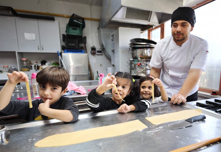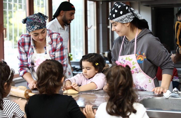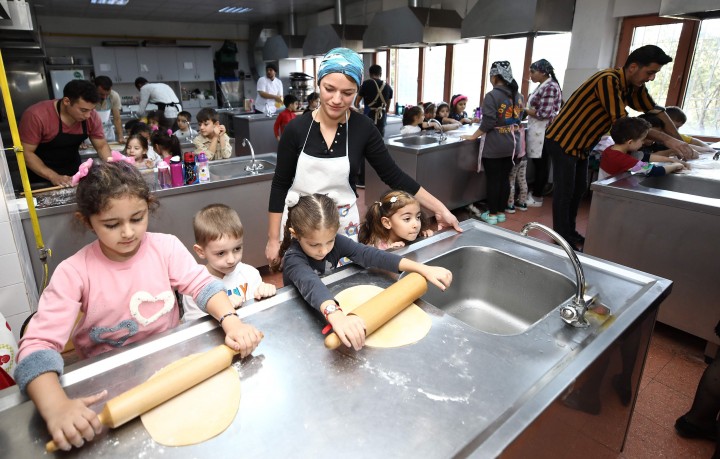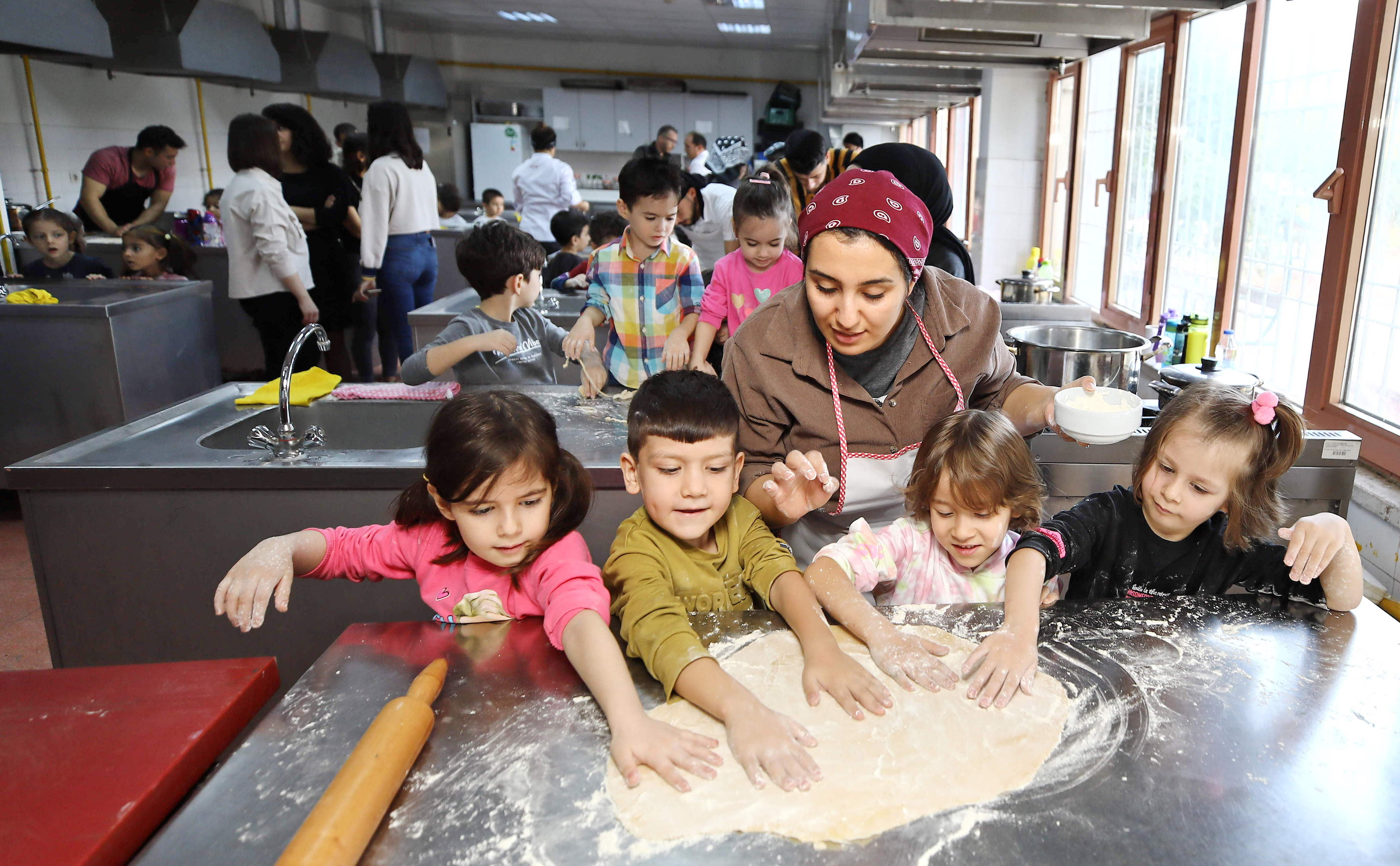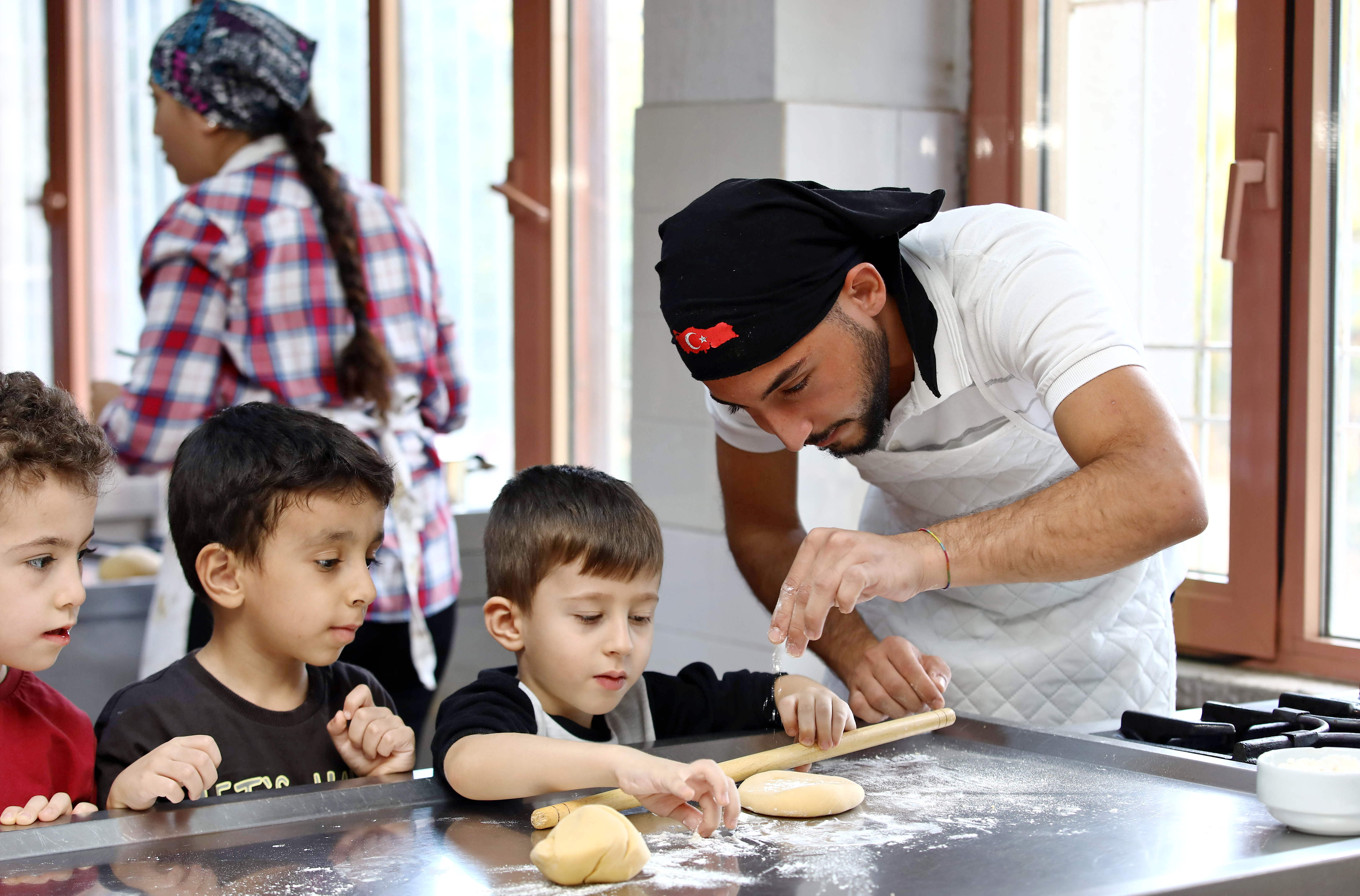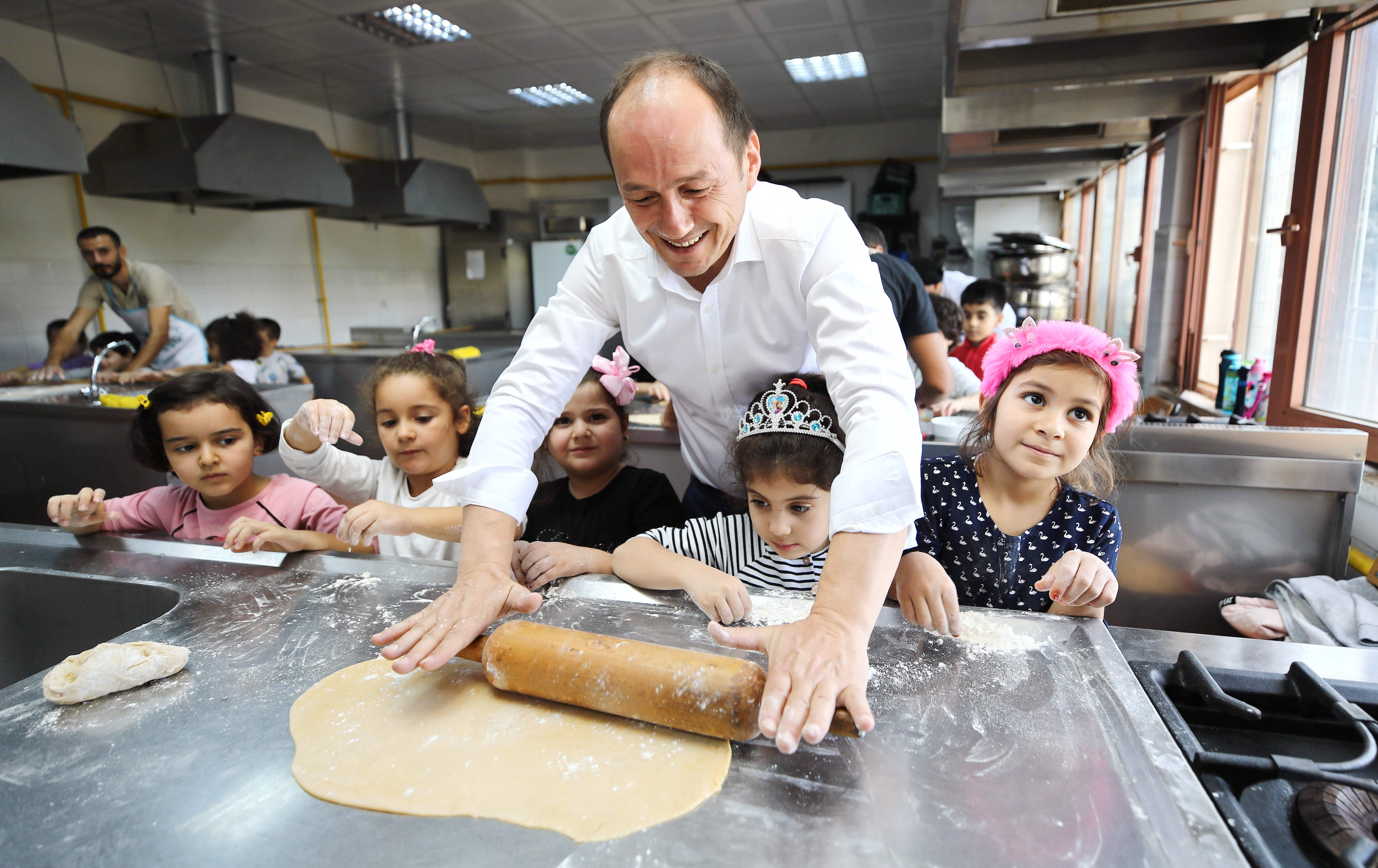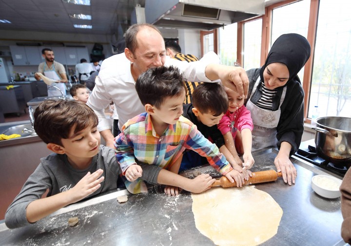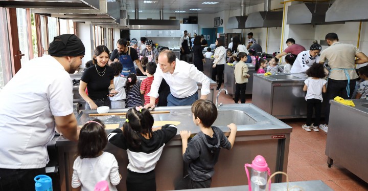 Gaziantep Üniversitesi (GAÜN) Turizm ve Otelcilik Meslek Yüksekokulu öğrencileri, GAÜN Kreş ve Anaokulu altı yaş gruplarını makarna yapımı için uygulama mutfağında ağırladı.