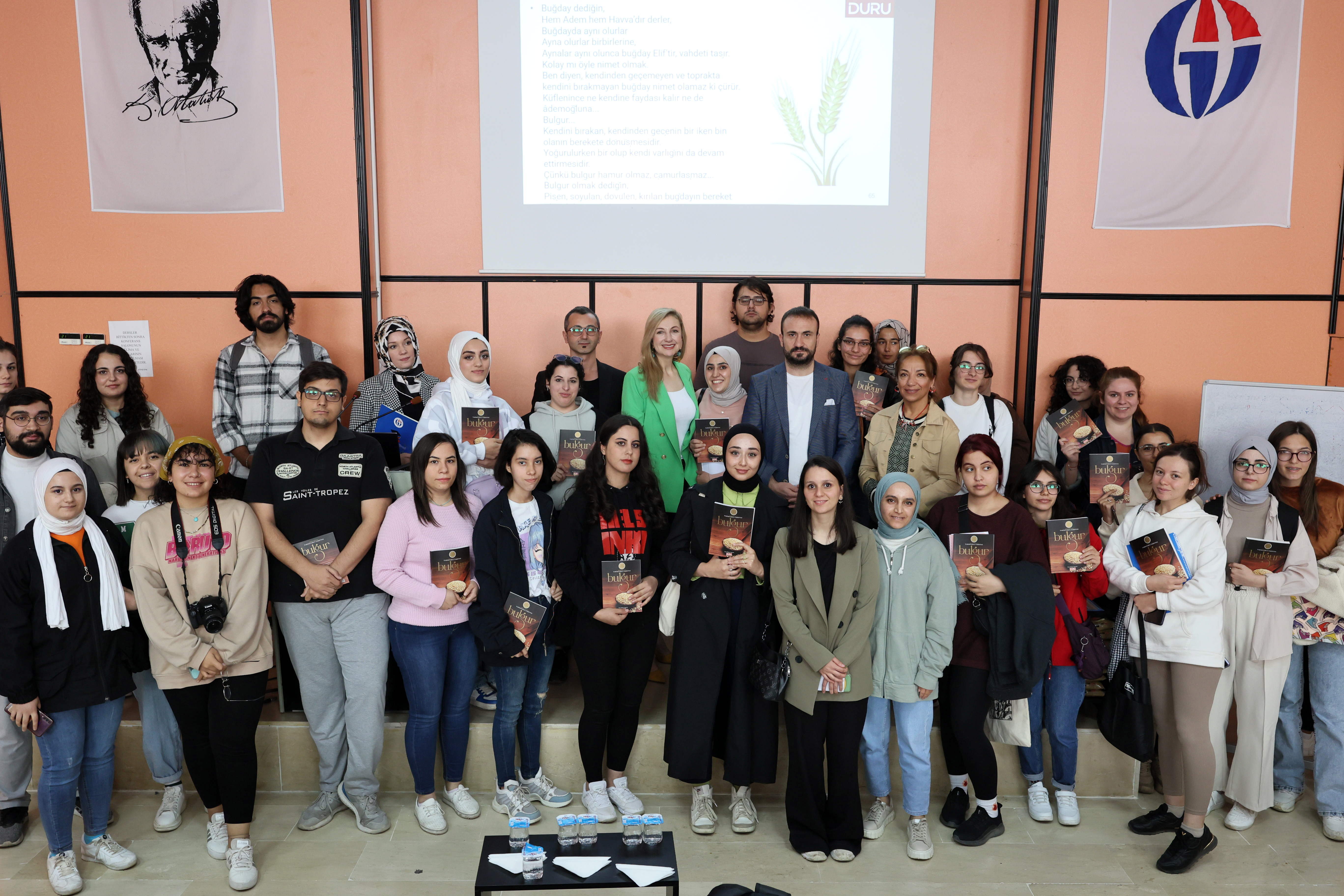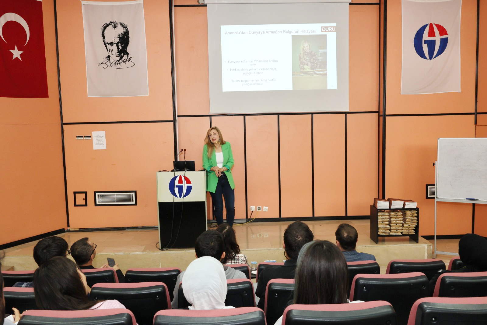 DURU Bulgur sponsorluğunda gerçekleştirilen eğitime, Turizm Fakültesi Gastronomi ve Mutfak Sanatları Bölümü öğrencileri ile diğer bölümlerden öğrencilerin yanı sıra akademik ve idari personel de katıldı. Bilim Uzmanlığını bulgur üzerine yaptığı çalışmalarla alan Öğr. Gör. Asuman Kerkez, bulgurun tarihçesi, Türk mutfağındaki yeri ve önemi, çeşitleri, bulgurun mikrobiyolojisi, sağlık açısından faydaları, bulgurla yapılan inovatif ürünler gibi konulara yer verildi.