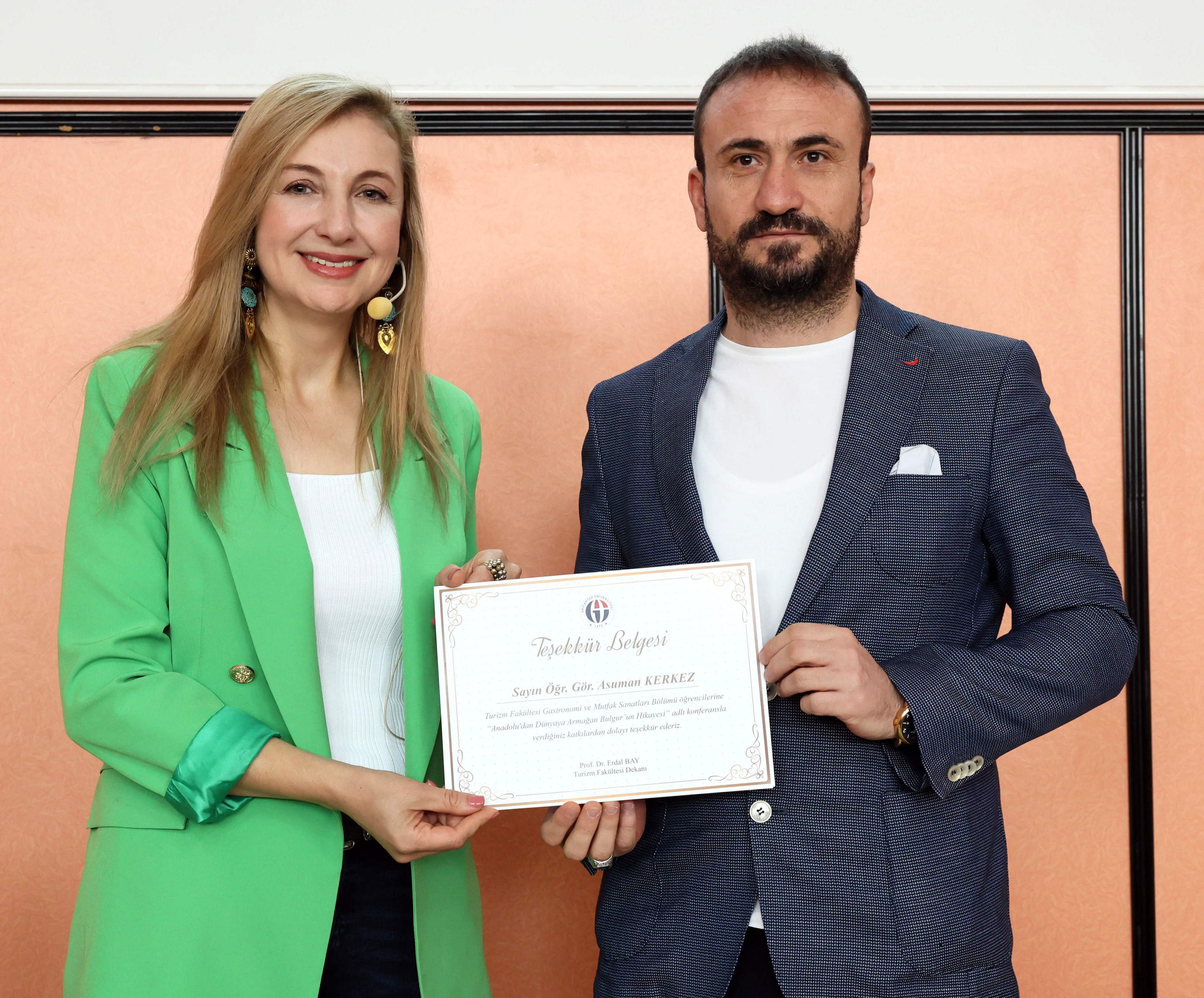 Eğitim, Turizm Fakültesi Dekanı Prof. Dr. Erdal Bay’ın Öğr. Gör. Asuman Kerkez’e teşekkür belgesi takdimi ile sona ererken, eğitime katılanlara GAÜN 8. Sanat Topluluğu tarafından hazırlanan, en bilinen bulgurlu ürünlerden birisi olan çiğ köfte dağıtıldı.