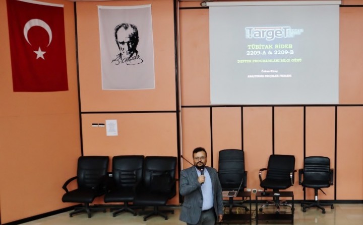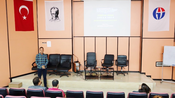 Üniversite öğrencilerinin akademik danışman veya sanayi danışmanı rehberliğinde projeler yoluyla araştırma yapmaya teşvik edilmesi ve proje hazırlama kültürünün geliştirilmesi amacına yönelik olarak gerçekleştirilen program kapsamında, GAÜN TARGET Teknoloji Transfer Ofisi Araştırma Projeleri Uzmanı Özkan Kireç tarafından proje çağrı programları hakkında bilgilendirme sunumu yapıldı.