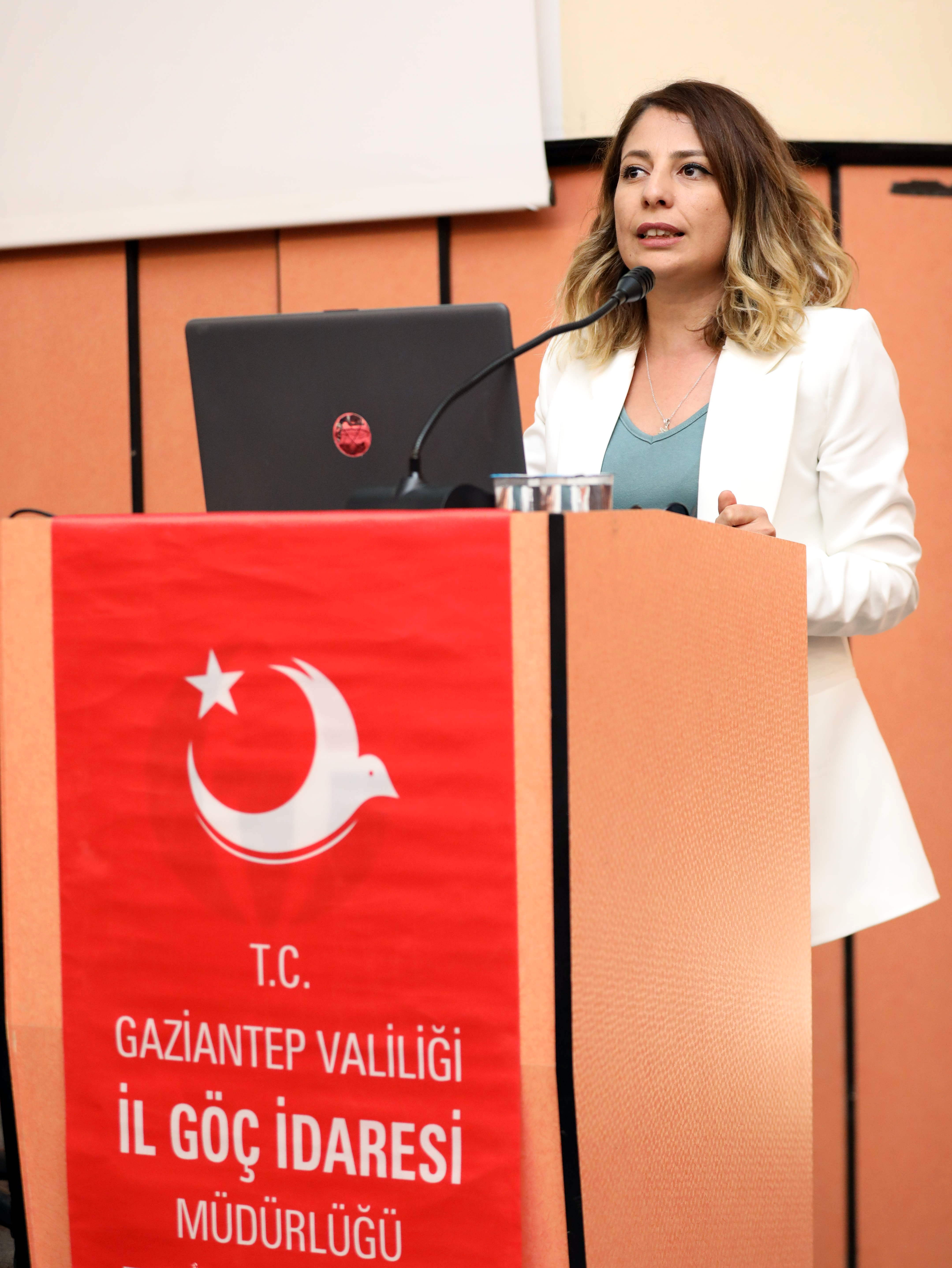 Açılış konuşması sonrası Gaziantep İl Göç İdaresi Müdürlüğü İnsan Ticareti Mağdurlarını Koruma Çalışma Grup Başkanı Gülşah Benzer, insan ticaretinin Türk Ceza Kanunu yerine, dünya genelinde bu suçun mağduru olmuş kişiler hakkında örnekler verdi. Konuşmasının son bölümünde ise Gülşah Benzer, “İnsan Ticareti nedir? Göstergeleri nelerdir?” konularına değindi.
