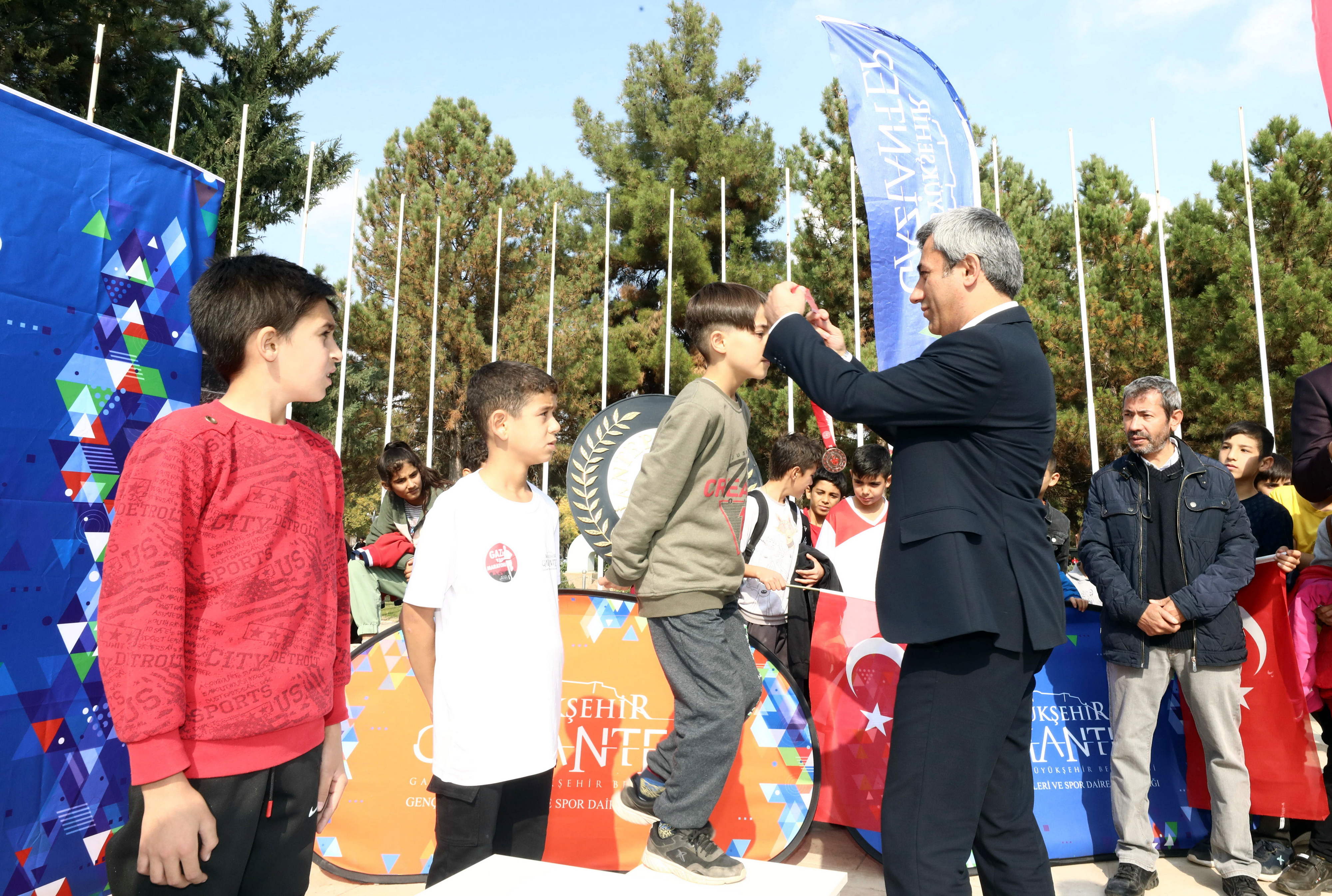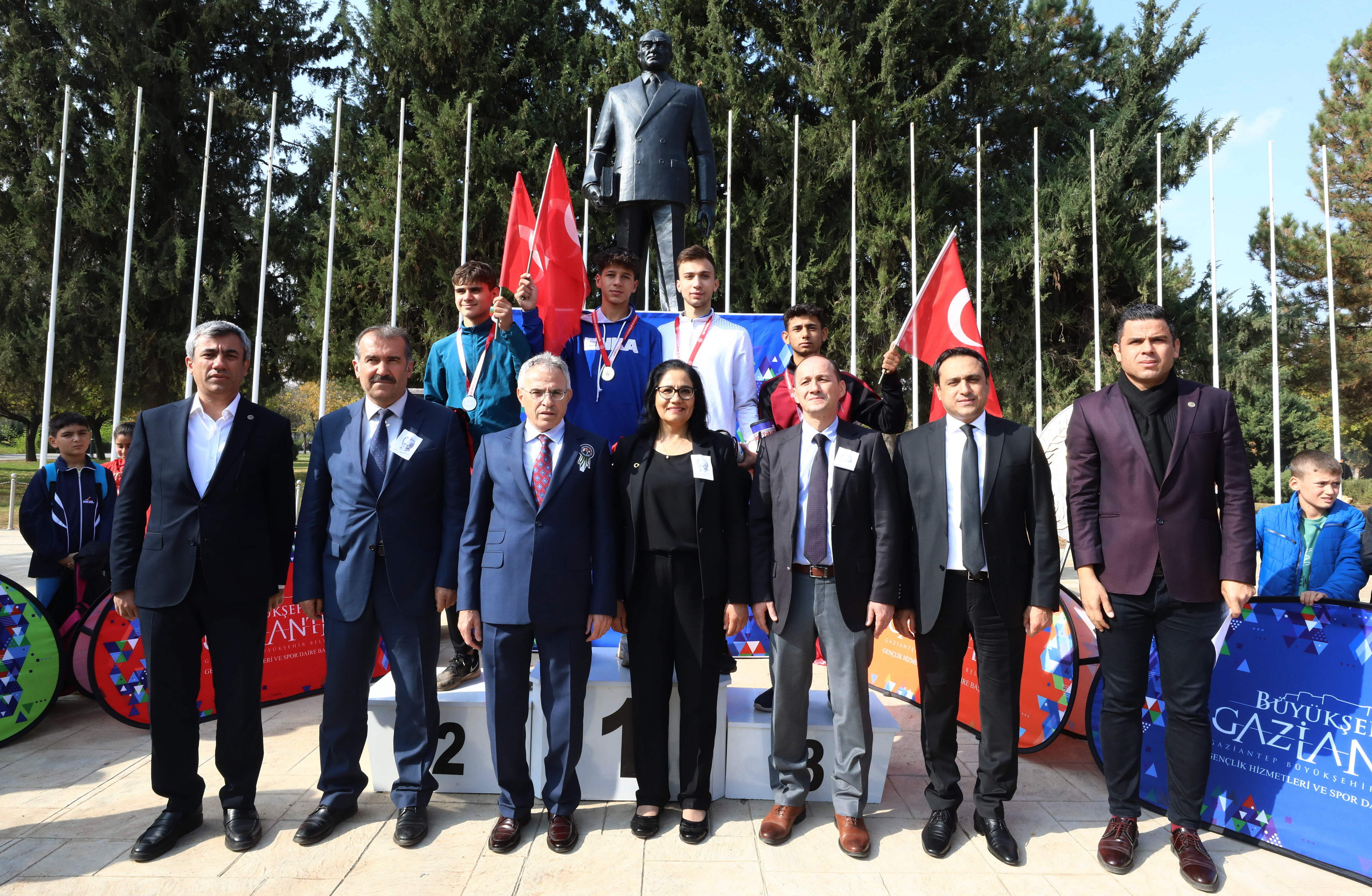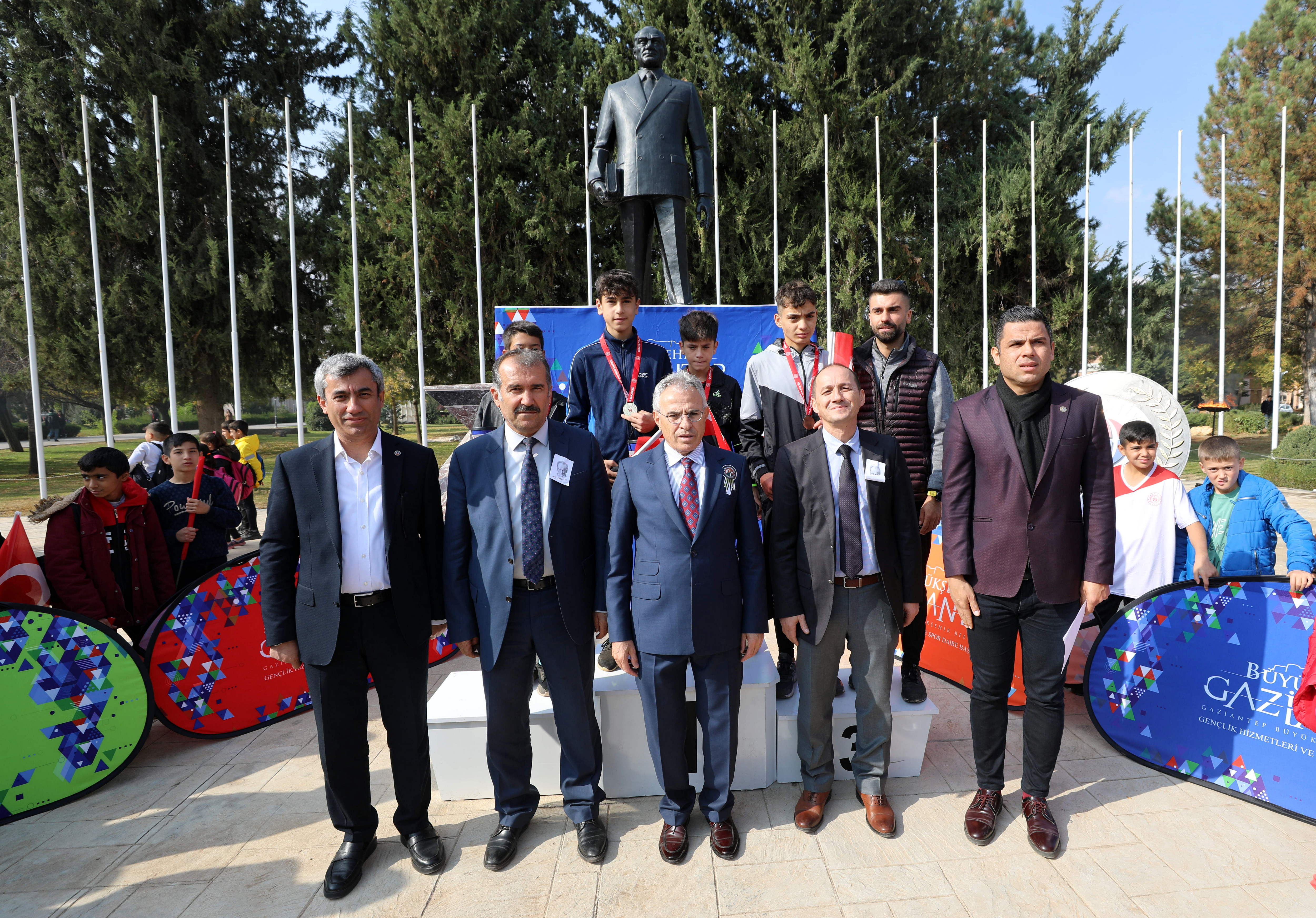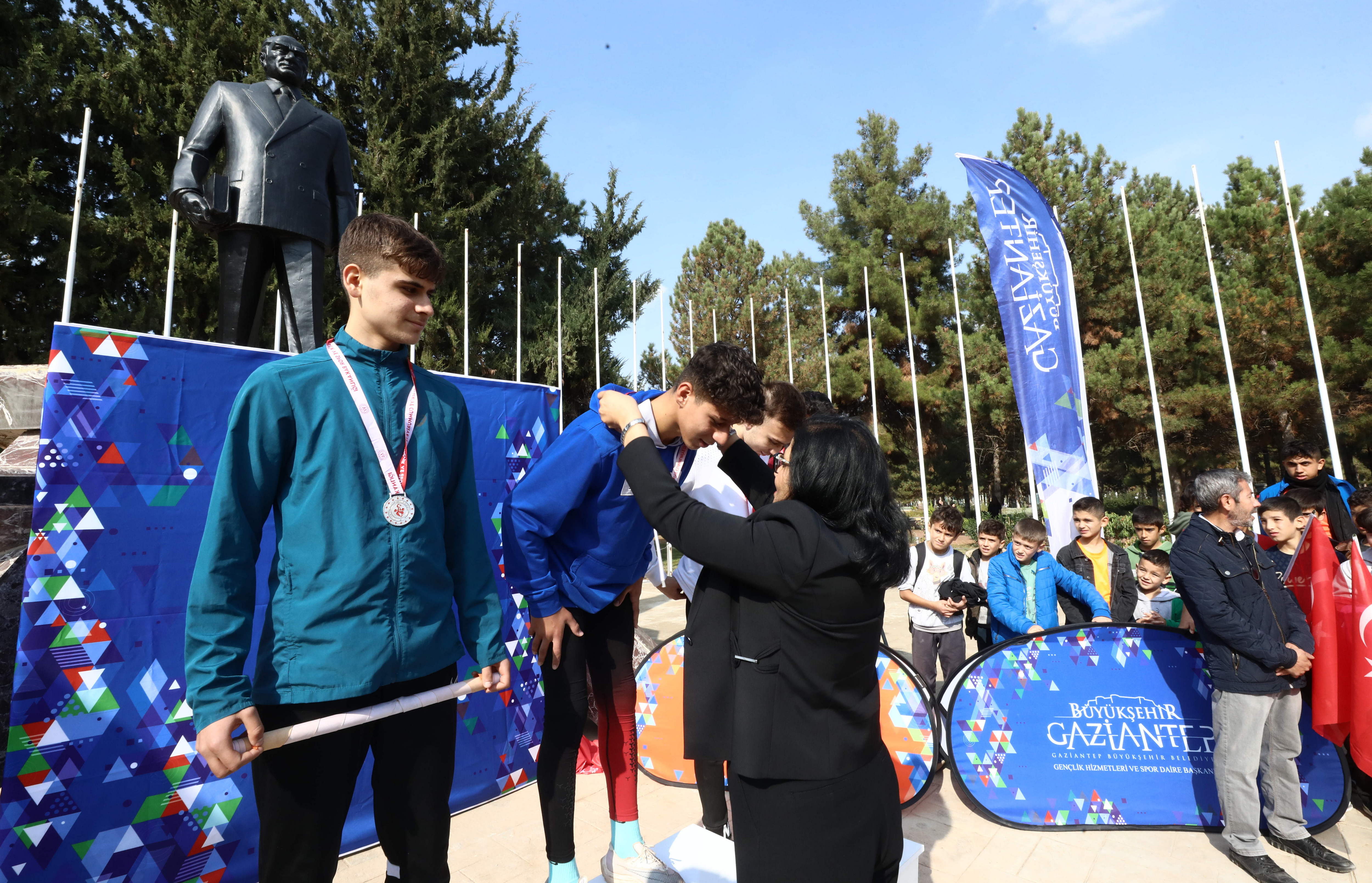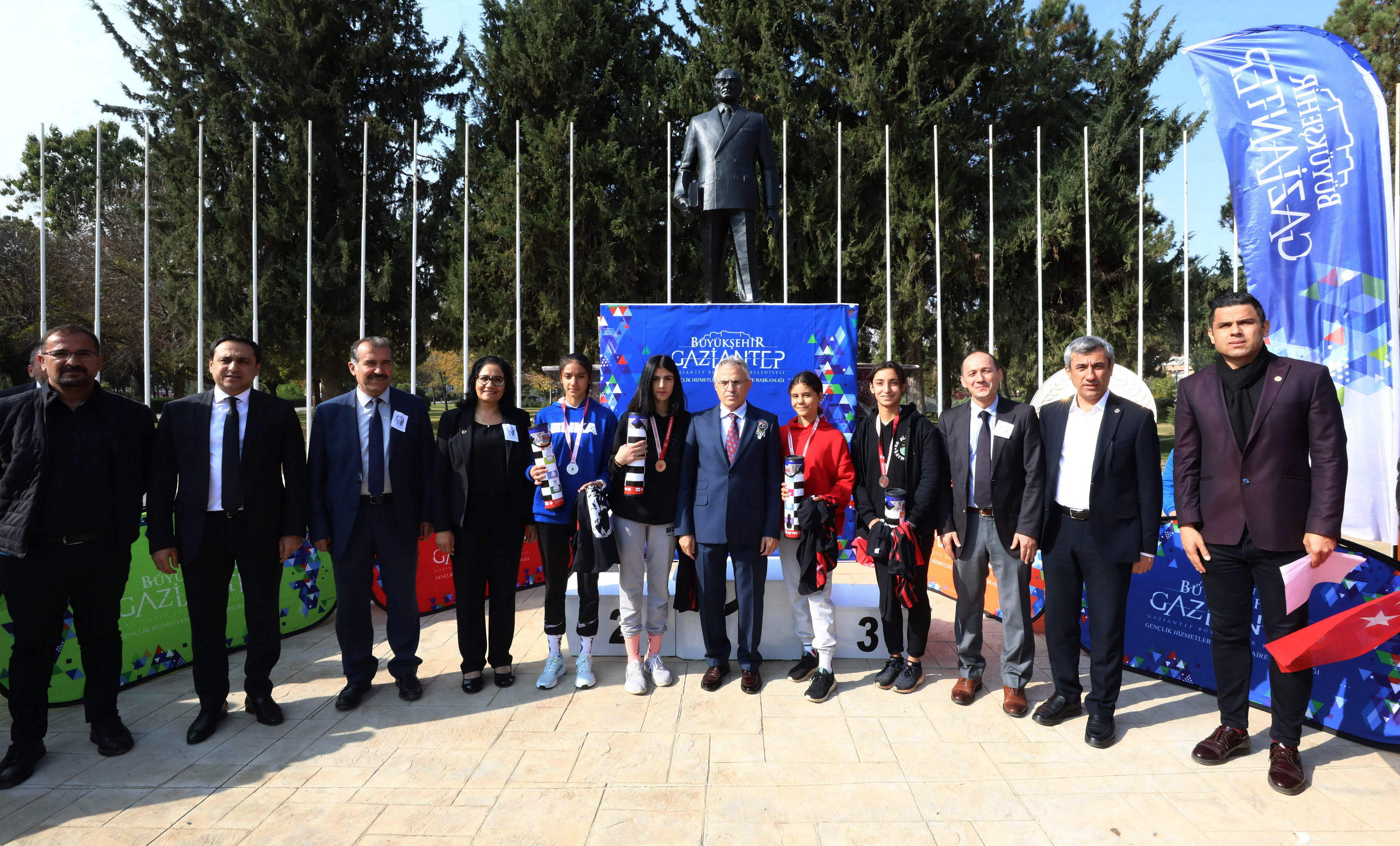Koşuda dereceye girenlere madalya ve hediyelerini GAÜN Rektörü Prof. Dr. Arif Özaydın, Rektör yardımcıları; Prof. Dr. Recep Yumrutaş, Prof. Dr. Ayşe Balat ve Spor Bilimleri Fakültesi Dekanı Prof. Dr. Yavuz Saka tarafından verildi.