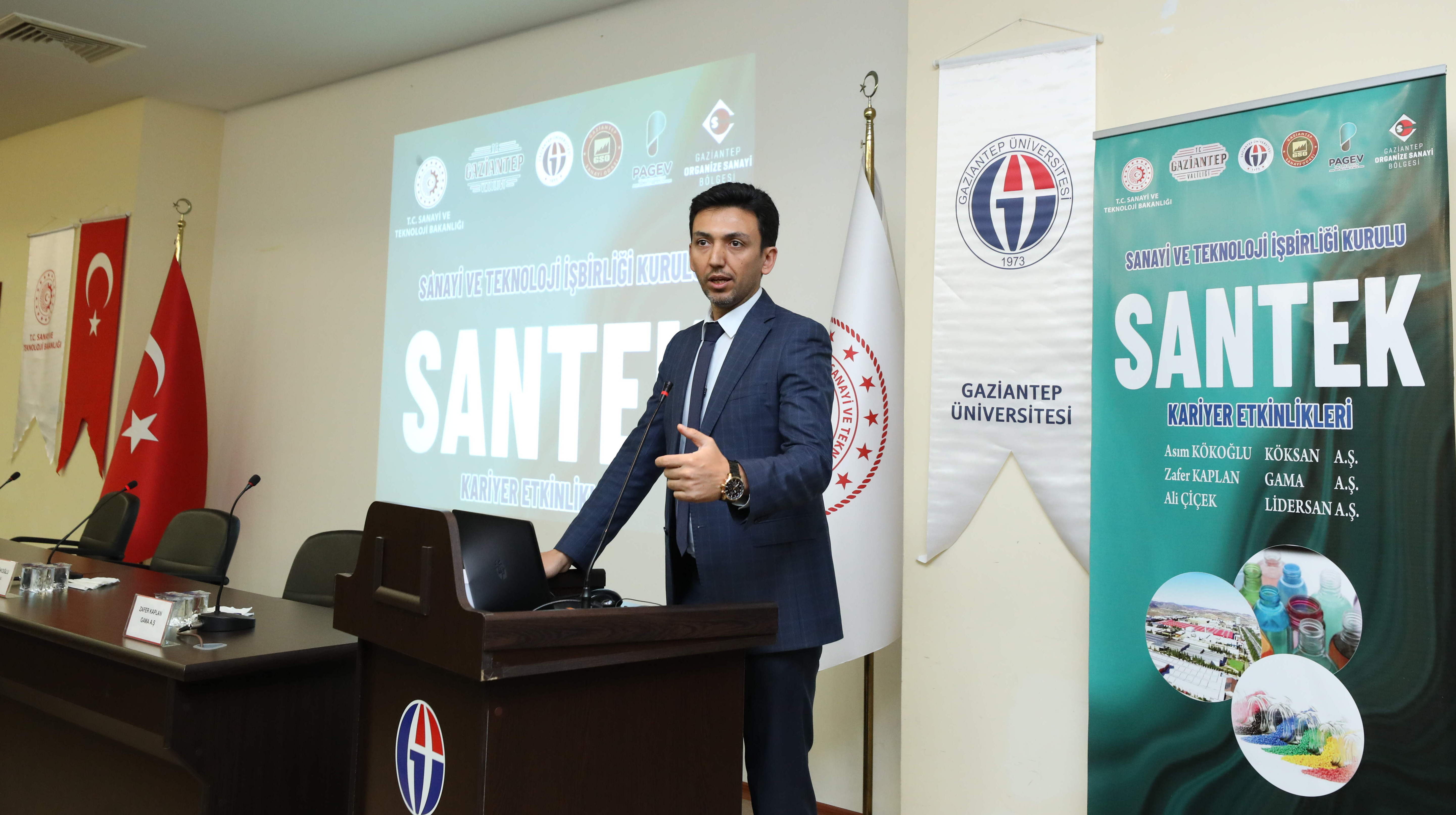 Gaziantep Üniversitesi (GAÜN) Sanayi ve Teknoloji İş Birliği Kurulu (SANTEK) tarafından Mühendislik Fakültesi’nde hazırlanan etkinlik çok sayıda öğrencinin katılımıyla gerçekleşti. GAÜN Mühendislik Fakültesi Konferans Salonu’nda gerçekleşen etkinliğe; Asım Kökoğlu, Ali Çiçek ve Zafer Kaplan panelist olarak katıldı.