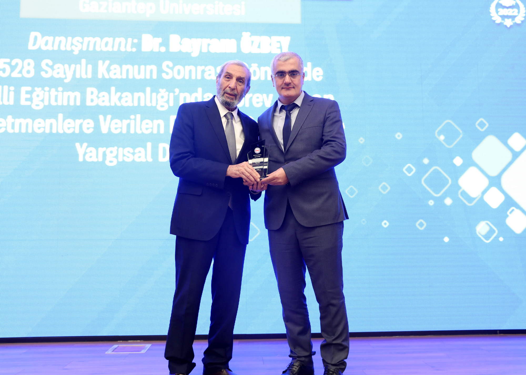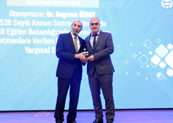 GAÜN Sosyal Bilimler Enstitüsü Kamu Hukuku Anabilim Dalı tezli yüksek lisans öğrencisi Resul Kesin, GAÜN Hukuk Fakültesi Dr. Öğretim Üyesi Bayram Özbey danışmanlığında yürüttüğü “6528 Sayılı Kanun Sonrası Dönemde Milli Eğitim Bakanlığı’nda Görev Yapan Öğretmenlere Verilen Disiplin Cezaları ve Yargısal Denetimi” başlıklı tezini 2021-2022 Bahar döneminde tamamlamış ve tez, kamu görevlileriyle ilgili başarılı tezlerin ödüllendirildiği Memur-Sen Tez Ödülleri kapsamında jüri tarafından Mehmet Akif İnan Özel Ödülüne layık görüldü.