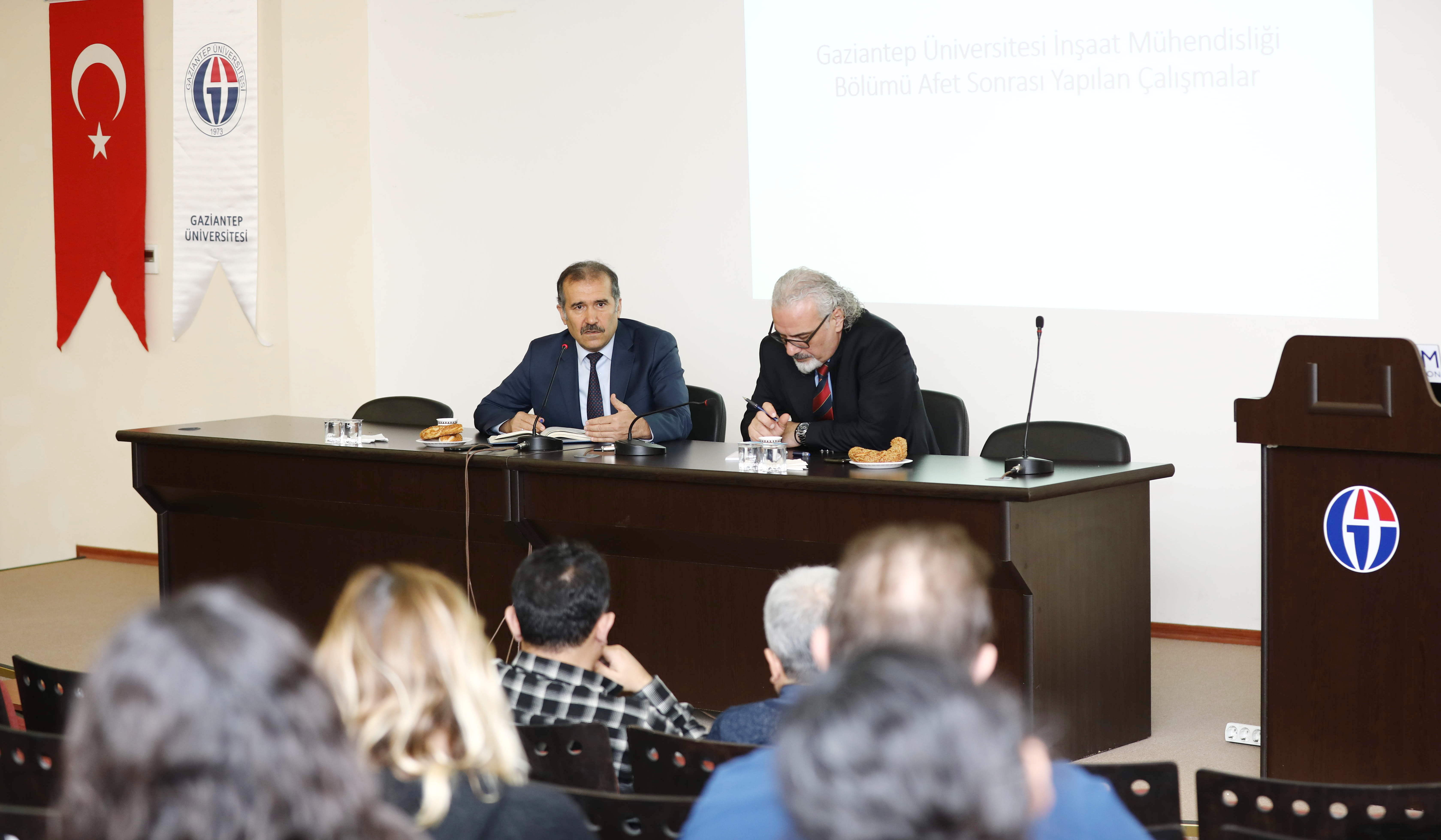 GAÜN İnşaat Mühendisliği Bölüm Başkanı Prof. Dr. Aytaç Güven ise İnşaat Mühendisliği Bölümü olarak deprem sürecinde yapılan faaliyetler hakkında bilgi vererek şunları aktardı: Çevre ve Şehircilik ve İklim Değişikliği Bakanlığı’nın talebi üzerine İslahiye ve Nurdağı ilçelerinde ağır hasarlı durumda olan binaların tahliye süreçlerinde uzman öğretim üyesi olarak görevlendirildik. Meydana gelen 6.4 şiddetindeki Hatay depreminden sonra bu süreç Bakanlık tarafından iptal edildi. Gaziantep Cumhuriyet Başsavcılığı ile koordineli olarak Gaziantep merkez ve ilçelerinde meydana gelen can kayıplı bina göçüklerinde bilirkişi olarak görev almaya başladık. Üniversitemiz Mimarlık Fakültesi ve Meslek Yüksek Okulu İnşaat Bölümü öğretim üyeleri de sürece katıldı ve halen bu davalarda bilirkişi hizmetine devam etmekteyiz. İvedi olarak Gaziantep’te bulunan Organize Sanayi Fabrikaları, kamu kurumları, okullar ve özel konut sahiplerinin taleplerine cevap verebilecek eylem planları hazırlayıp bununla ilgili iş listeleri oluşturduk. Yakın zamanda Gaziantep ve çevre illerin talep ettikleri uzmanlık ve bilirkişilik hizmetlerine başlayacağız ve bununla ilgili Gaziantep Üniversitesi WEB sayfasında duyuru yapacağız.”