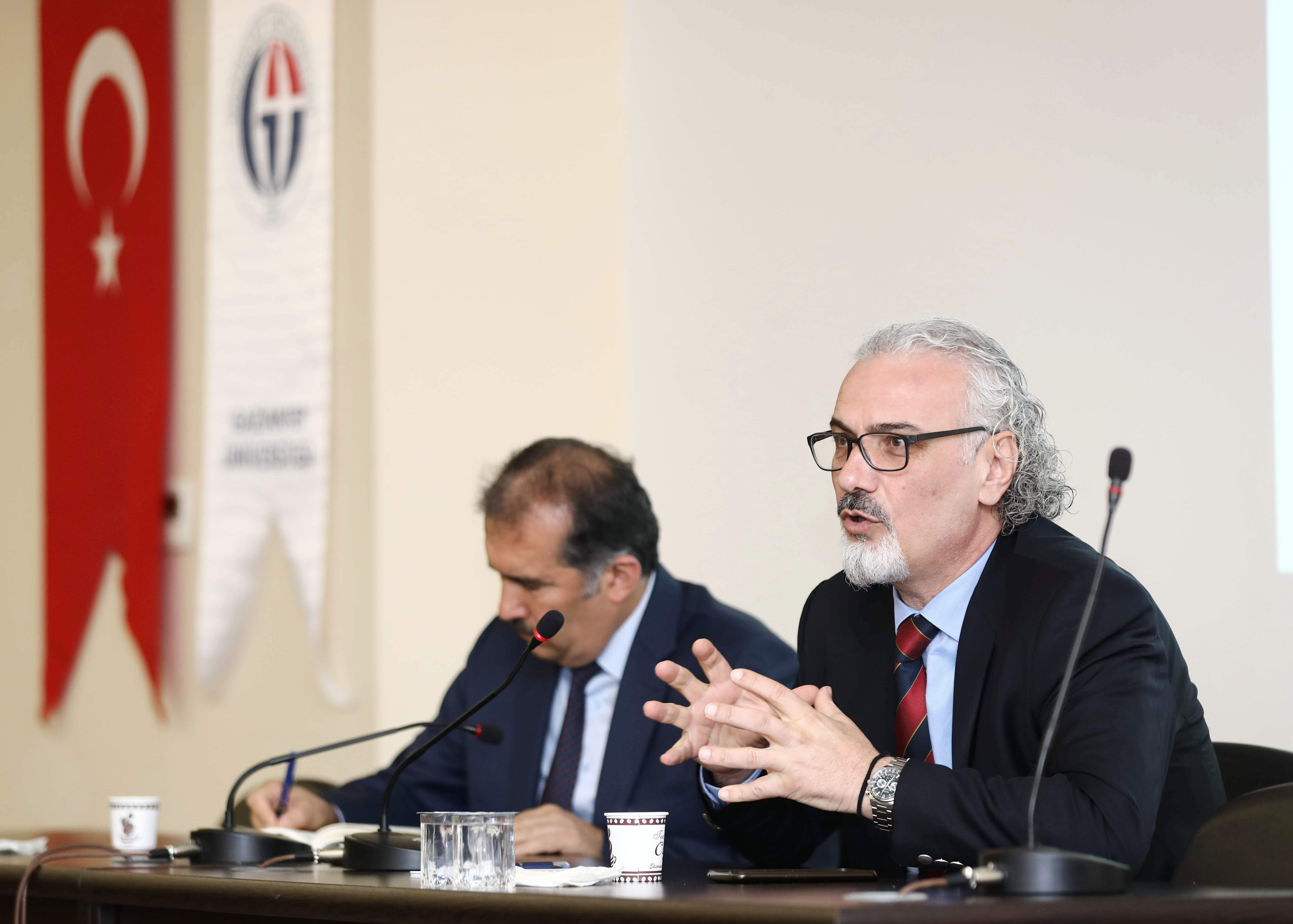 GAÜN Mühendislik Fakültesi Dekanlık Konferans Salonu’nda düzenlenen toplantıda konuşan Rektör Yardımcısı Prof. Dr. Recep Yumrutaş, Kahramanmaraş’ta meydana gelen asrın felaketinin ardından Gaziantep Üniversitesi olarak bu süreçte yapılanlar ve yapılacaklar hakkında bilgi verdi. Gaziantep Üniversitesi olarak sadece Gaziantep’te değil çevre illere de destekler verildiğini ifade eden Prof. Dr. Yumrutaş, üniversite olarak hiçbir sorumluluktan kaçılmadığını belirtti. Prof. Dr. Yumrutaş, “AFAD, Çevre Şehircilik ve İklim Değişikliği Bakanlığına bağlı hasar tespit çalışmalarını yapan teknik personellere gerekli teknik destek sağlanmıştır. Yine üniversitemiz akademik personelince Gaziantep Cumhuriyet Başsavcılığı tarafından yıkılan binalar hakkında yürütülen soruşturmalar kapsamında bilirkişi hizmeti verilmiştir. Bundan sonraki süreç için de yeni bir yol haritası çizilmiş olup, deprem bölgesinde ihtiyaç duyulan konularda hizmet verilmeye devam edilecektir. Bu süreçte Gaziantep Üniversitesi olarak her türlü göreve hazırız” şeklinde konuştu.