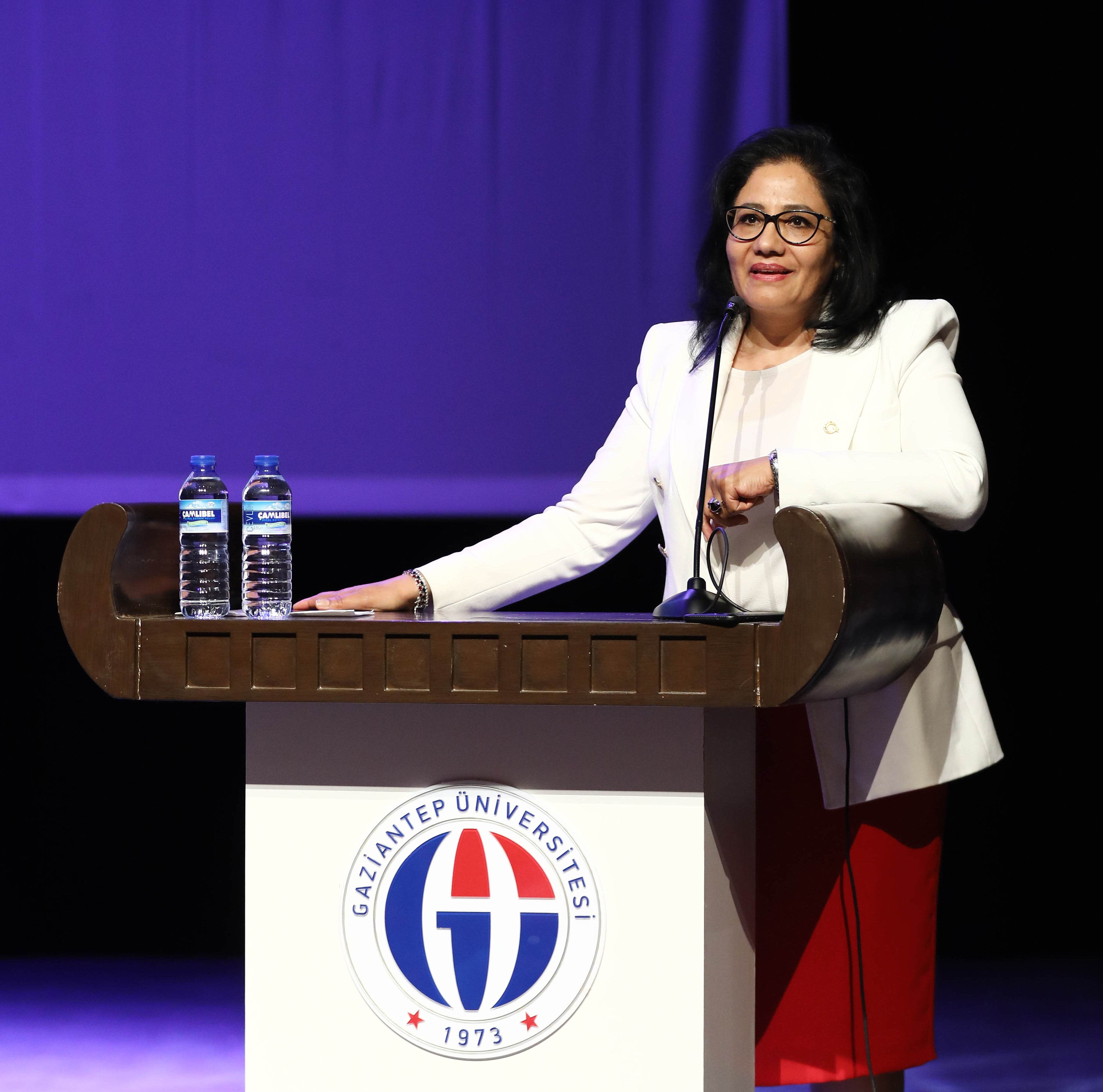 GAÜN Rektör Yardımcısı Prof. Dr. Ayşe Balat öğrencilere seslendiği konuşmada şunları söyledi: “Sizler bu ülkenin şanslı evlatlarısınız çünkü büyük bir liderin geleceği emanet ettiği nesilsiniz onun için varlığınız son derece önemli. Dünyada ilk kez çocuklara atfedilen bir bayram, lütfen bunun kıymetini bilin. Sizler geleceğin doktorları, mühendisleri, politikacıları gelecekte bu ülkenin ayağa kalkmasına sebep olacak beşeri sermayelersiniz, kıymetinizi bilin, sizleri çok seviyoruz.”