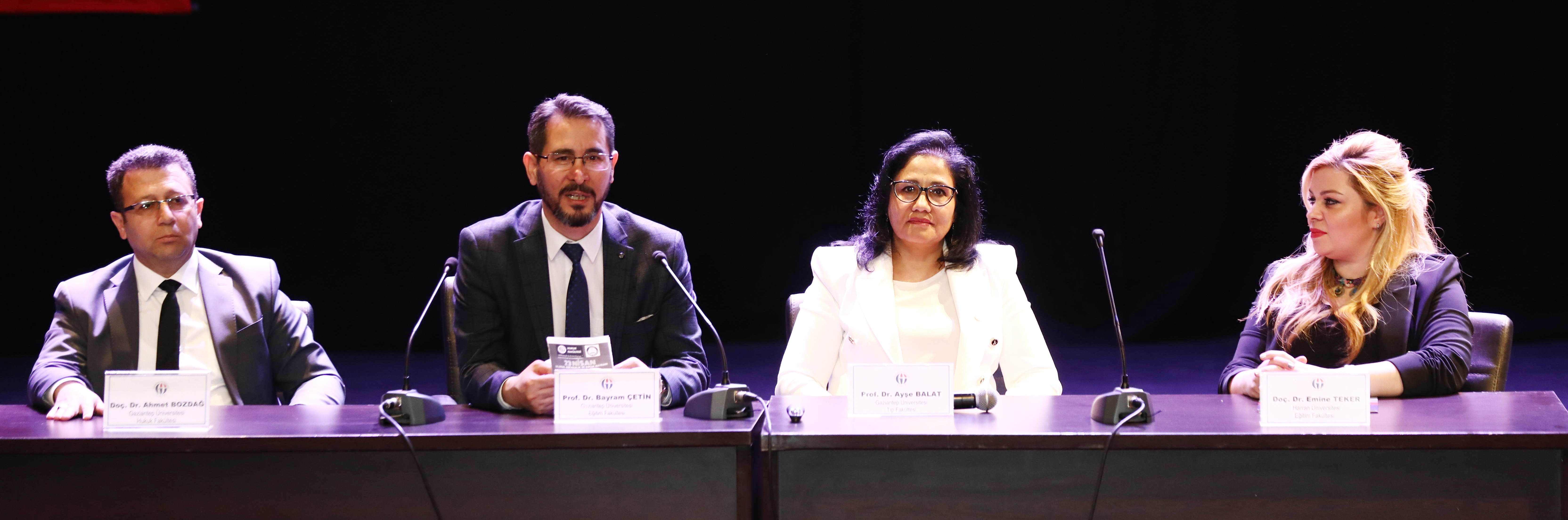 Doğa Koleji öğretmenleri öğrencileri tarafından hazırlanan mini konserden sonra GAÜN Eğitim Fakültesi Dekanı Prof. Dr. Bayram Çetin’in oturum başkanlığında, GAÜN Rektör Yardımcısı Prof. Dr. Ayşe Balat’ın “E- Dünyada Sağlıklı Çocuk Olmak”, GAÜN Hukuk Fakültesi Dekan Yardımcısı Doç. Dr. Ahmet Bozdağ’ın “E- Dünyada Çocuk Hakları” ve Harran Üniversitesi Öğretim Üyesi Doç. Dr. Emine Teker’in “E- Dünyada Projelerle Çocuk Olmak” konuların ele alındığı “E- Dünyada Çocuk Olmak” paneline geçildi.