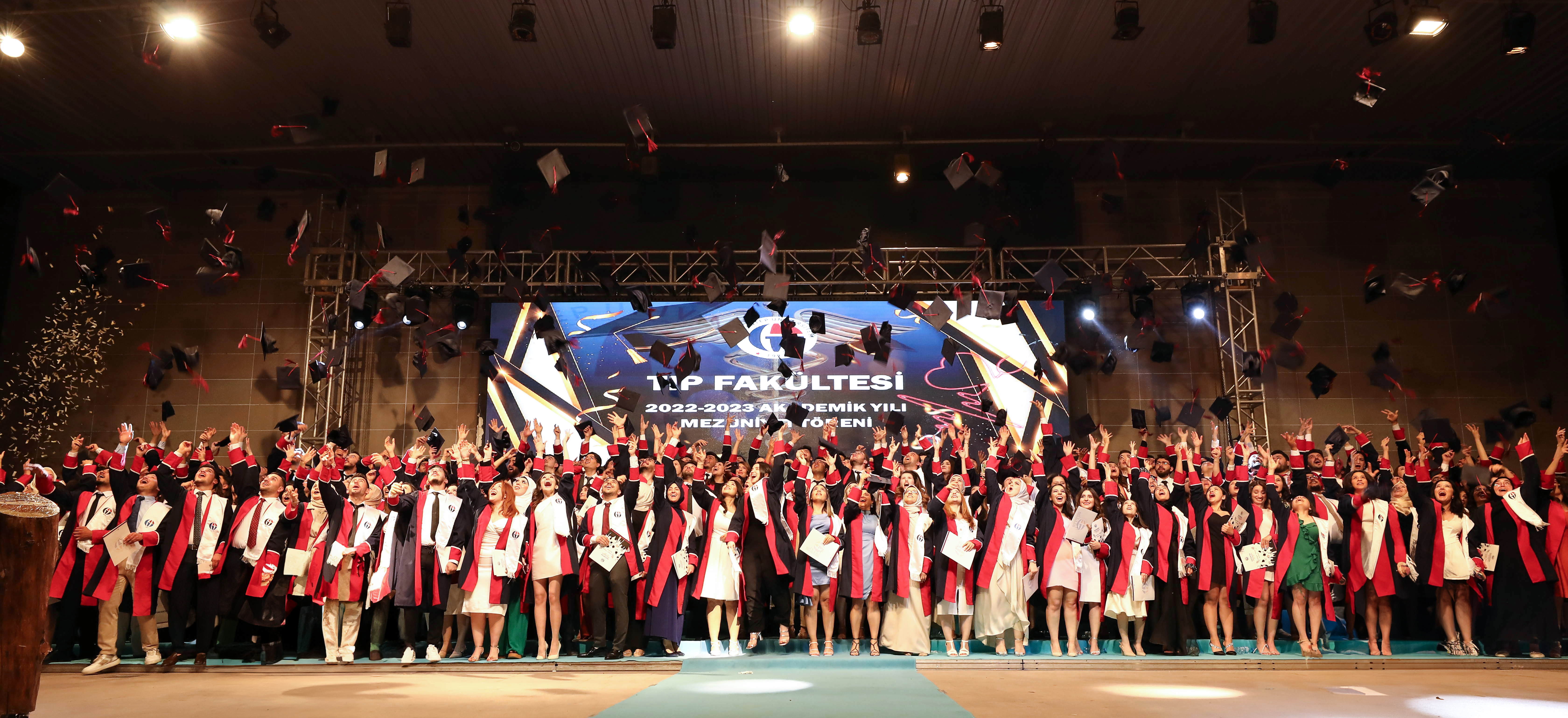 Fakülte birincisi Dr. Reyhan Ay konuşmasında şunları söyledi: “Beni bugünlere getiren aileme öncelikle teşekkür etmek ister, onlara layık bir evlat, vefalı bir hekim ve insan olacağıma hepinizin önünde söz vermek istiyorum. Gazi Mustafa Kemal Atatürk’ün emaneti olan Cumhuriyeti korumak ve Türk hekimlerine olan inancını yaşatmak asli görevimiz ve sorumluluğumuzdur.”