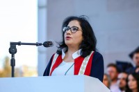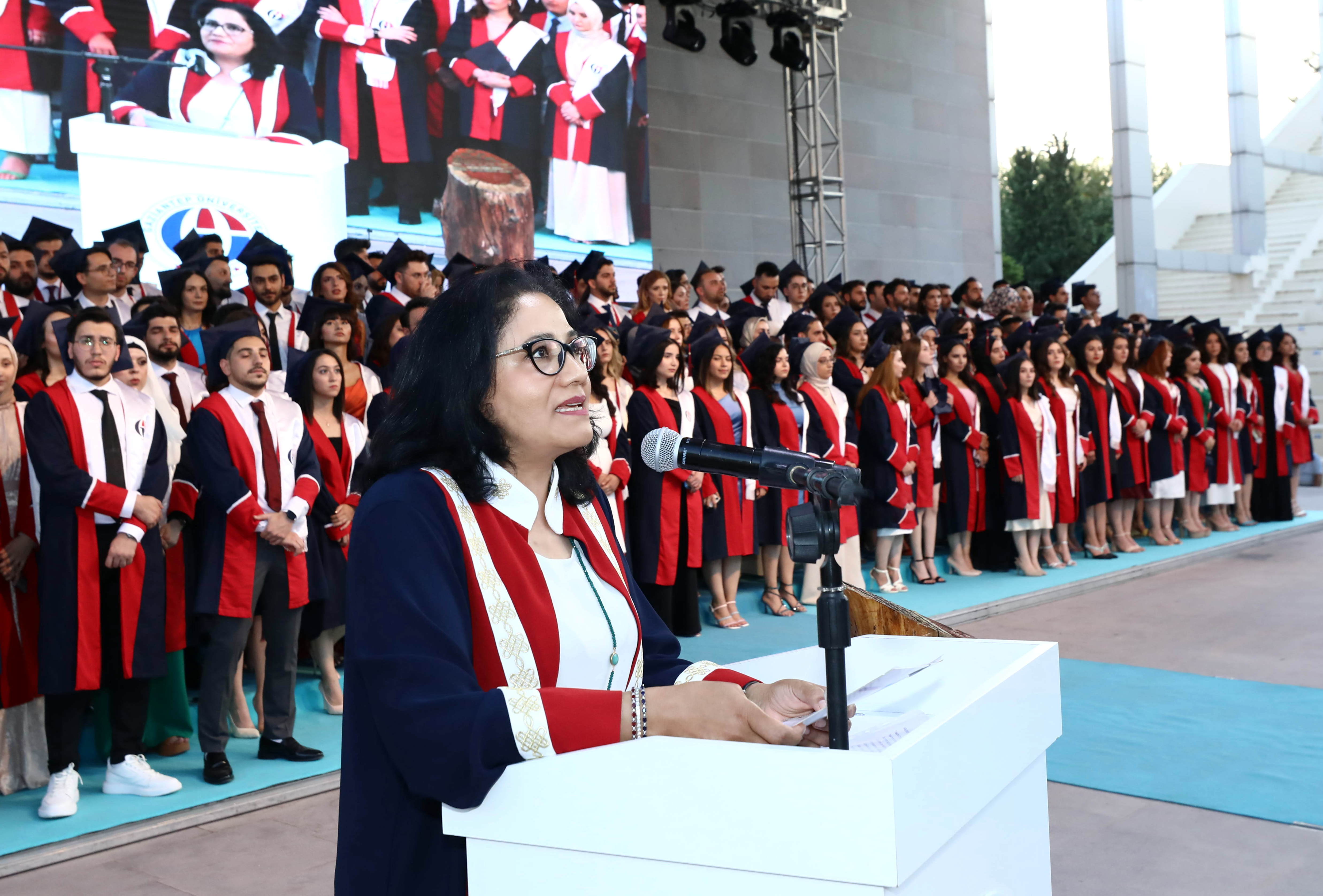 GAÜN Mavera Açık Hava Sahnesi’nde gerçekleşen mezuniyet töreninin açılışında konuşan Rektör Yardımcısı Prof. Dr. Ayşe Balat, bu gururlu günde öğrencilerle bir arada olmaktan onur ve mutluluk duyulduğunu söyledi. Hipokrat yeminin öneminden bahseden Prof. Dr. Balat öğrencilere seslendiği konuşmasında şunları ifade etti: “Pandemi sürecinde, depremde, her türlü zor koşullarda canı pahasına çalışan ve bir kısmını bu uğurda canlarını verdikleri meslektaşlarımı saygı ve minnetle anıyorum. ‘Hipokrat, tıbbın özellik arz eden bir sanat olduğunu söyler’ Benim gözümde de her hekim değerli bir sanatçıdır. İnsan bedenine dokunmak yetkisi olan tek meslek grubu olduğunuzu, yaradanın yeryüzündeki elleri olarak kabul edildiğinizi ve hastalar için umut ışığı olduğunuzu unutmayın.”