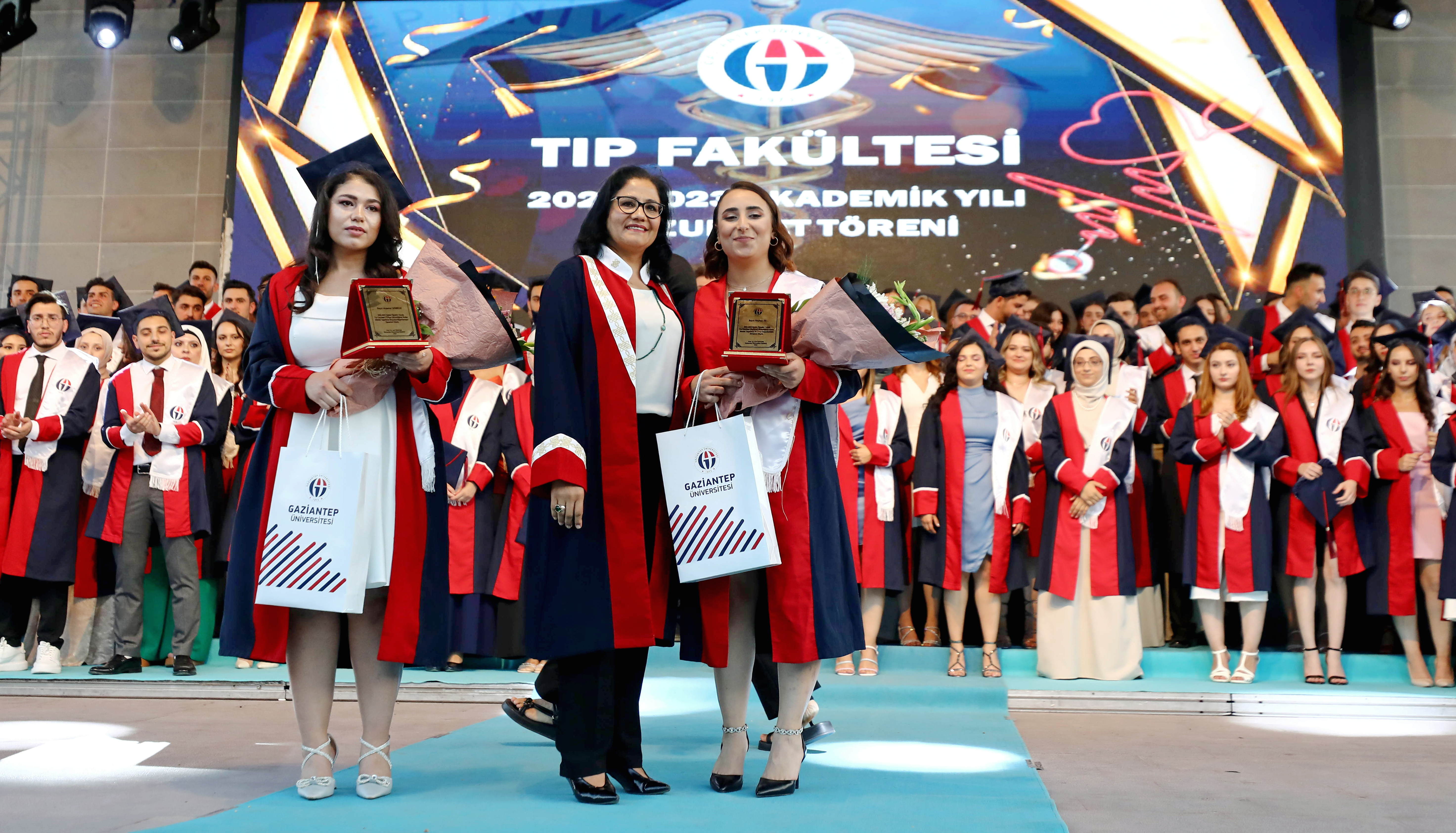 Konuşmaların sonrasında Rektör Yardımcısı Prof. Dr. Ayşe Balat, hekimlik andını mezun öğrencilere okuttu. Tıp Fakültesi Mezuniyet Töreni, mezun olan öğrencilere GAÜN Tıp Fakültesi akademisyenleri tarafından diplomalarının verilmesi sonrasında 10. Yıl marşı eşliğinde öğrenciler kep atmasıyla sona erdi.