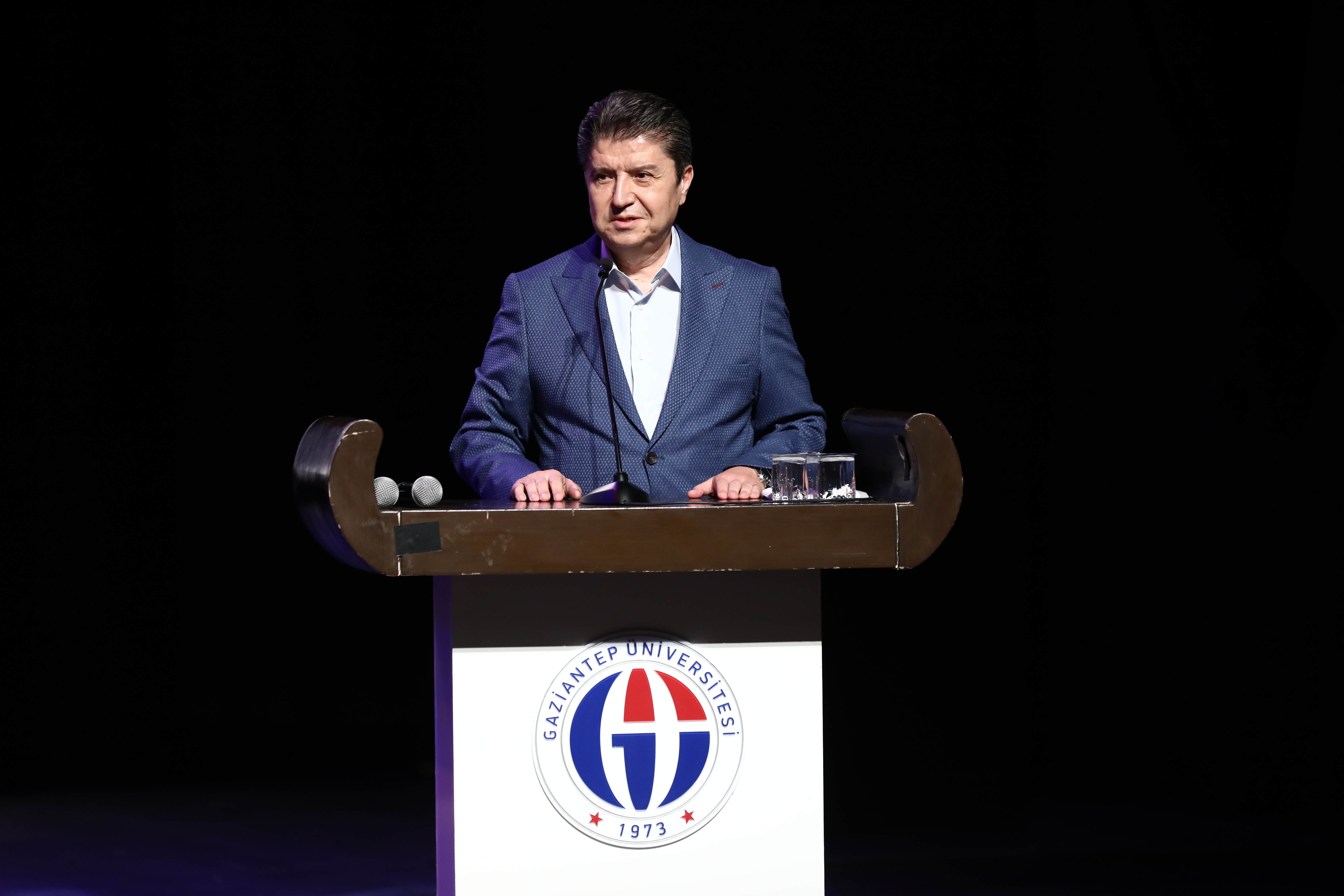 Gaziantep Üniversitesinin Türkiye’deki üniversiteler arasında bir marka üniversite olarak önemli bir yere sahip olduğunu söyleyen Rektör Yardımcısı Prof. Dr. Mustafa Sarıbıyık, GAÜN Güzel Sanatlar Fakültesi ise fakülteler içerisinde sanat, estetik ve güzelin peşinde olan bir fakülte olarak müstesna bir yere sahip olduğunu belirtti. Prof. Dr. Sarıbıyık, “Üniversiteler sadece eğitim ve öğretim gibi bir görevi yok, toplumun ihtiyaç duyduğu her alanda görevleri vardır. Allah’ın yarattığı varlıklar içerisindeki en güzel varlık insandır. İnsanın yaratılış gayesine uygun olarak güzelin, sevginin, sanatın, estetiğin peşinde olması kadar da kendi yaratılış gayesine uygun olan başka bir davranış yoktur. Bu anlamda Güzel Sanatlar Fakültemizi, topluma hayal dünyalarıyla yola çıkarak bir ufuk açmaları, estetiği ortaya koymaları ve bir sanatı ortaya koymaları son derece anlamlıdır” diye konuştu.