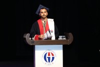 Mezun öğrenciler adına konuşan dönem birincisi Halil İbrahim Dalgıç da “Üniversiteye başladığımda birinci olmak gibi bir düşüncem yoktu, tek düşündüğüm artık bir meslek alanım olduğu ve mezun olurken de geriye dönüp baktığımda dört yılımın boşa gitmediğini görebilmekti. Bugün dört yılımın boşa gitmediğini, kendi gerçek anlamda geliştirdiğimi rahatlıkla gözlemleyebilmekteyim” dedi.