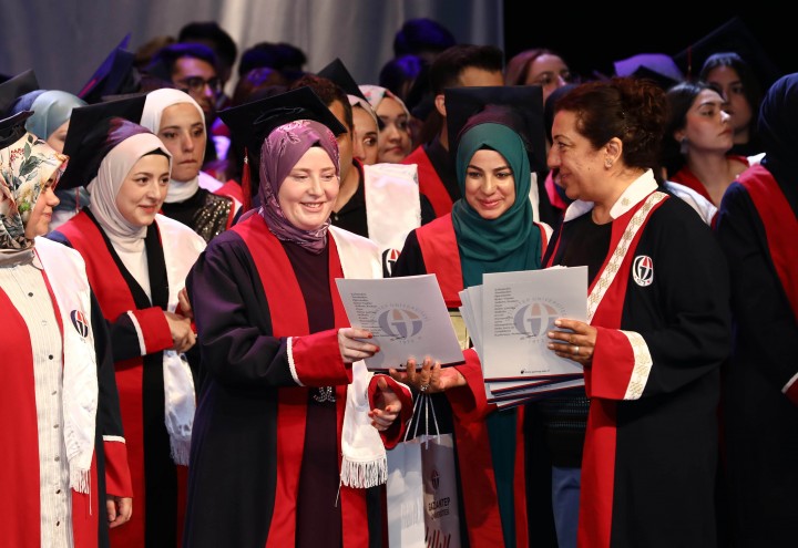GAÜN Mavera Kongre ve Sanat Merkezi’nde gerçekleşen tören, mezun olan öğrencilerin mezuniyet belgelerini alması ve keplerini havaya atmasıyla sona erdi.