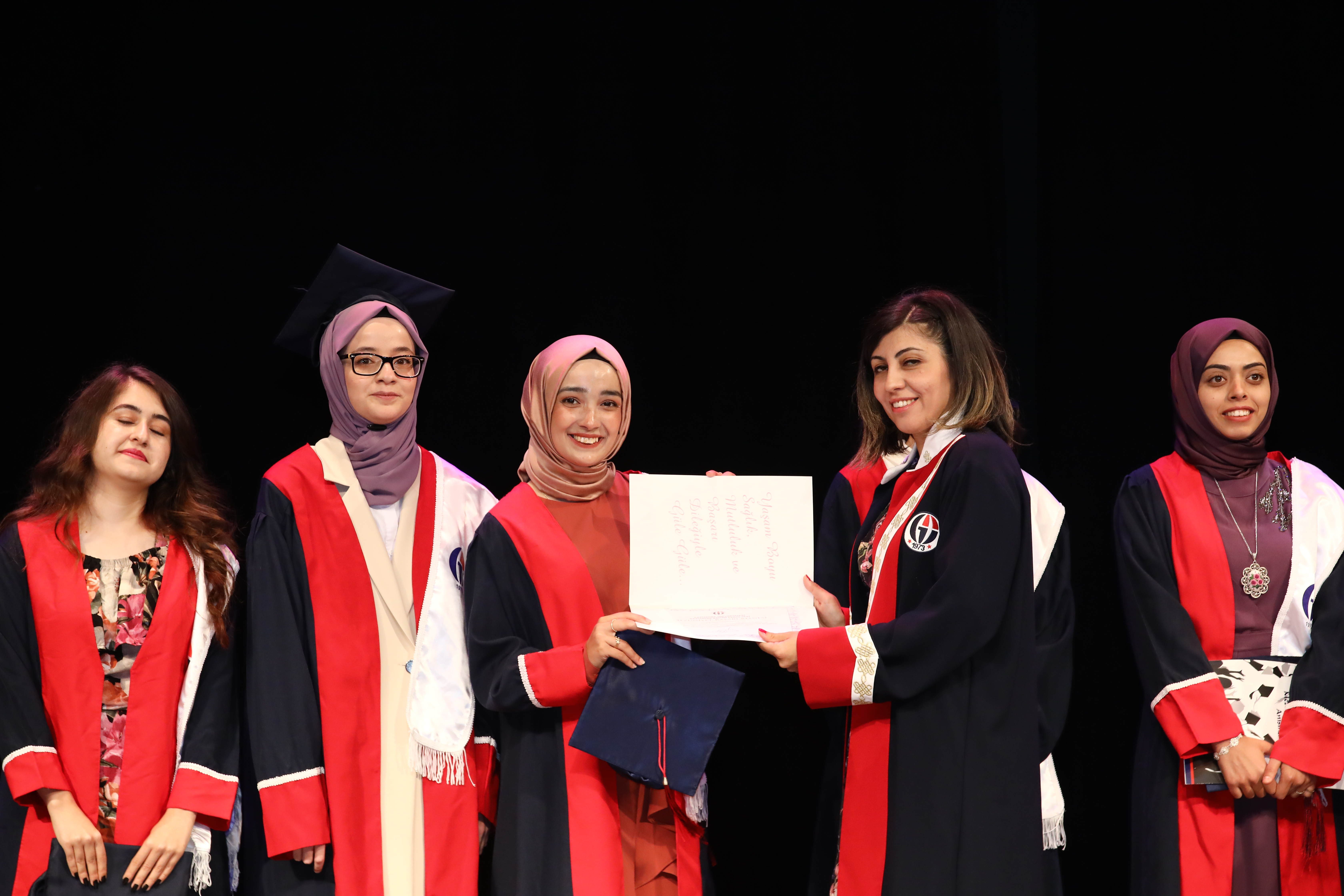 Açılış konuşmalarının ardından dereceye giren öğrencilere ve mezunlara belgeleri takdim edildi. Tören mezun öğrencilerin keplerini havaya atmasıyla son buldu.