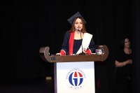 Mezun öğrenciler adına konuşan dönem birincisi Kübra Kaya, “Bugün buradan ayrıldığımızda aldığımız tek şey diploma olmayacaktır. Bizler Başöğretmen Mustafa Kemal Atatürk’ün ışığında Cumhuriyet ilkeleri ile yetişmiş öğretmenleriz. Bu nedenle tüm öğretmen arkadaşlarımın meslek yaşamları boyunca temel gayesinin Atatürk’ün manevi mirasım dediği bilimin ve aklın peşinden giden, öğrencilerine ilham olabilen, onları anlamaya çalışan ve model olabilen öğretmenler olabileceğine inanıyorum” ifadelerini kullandı.