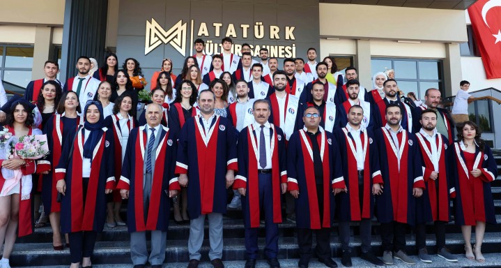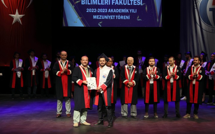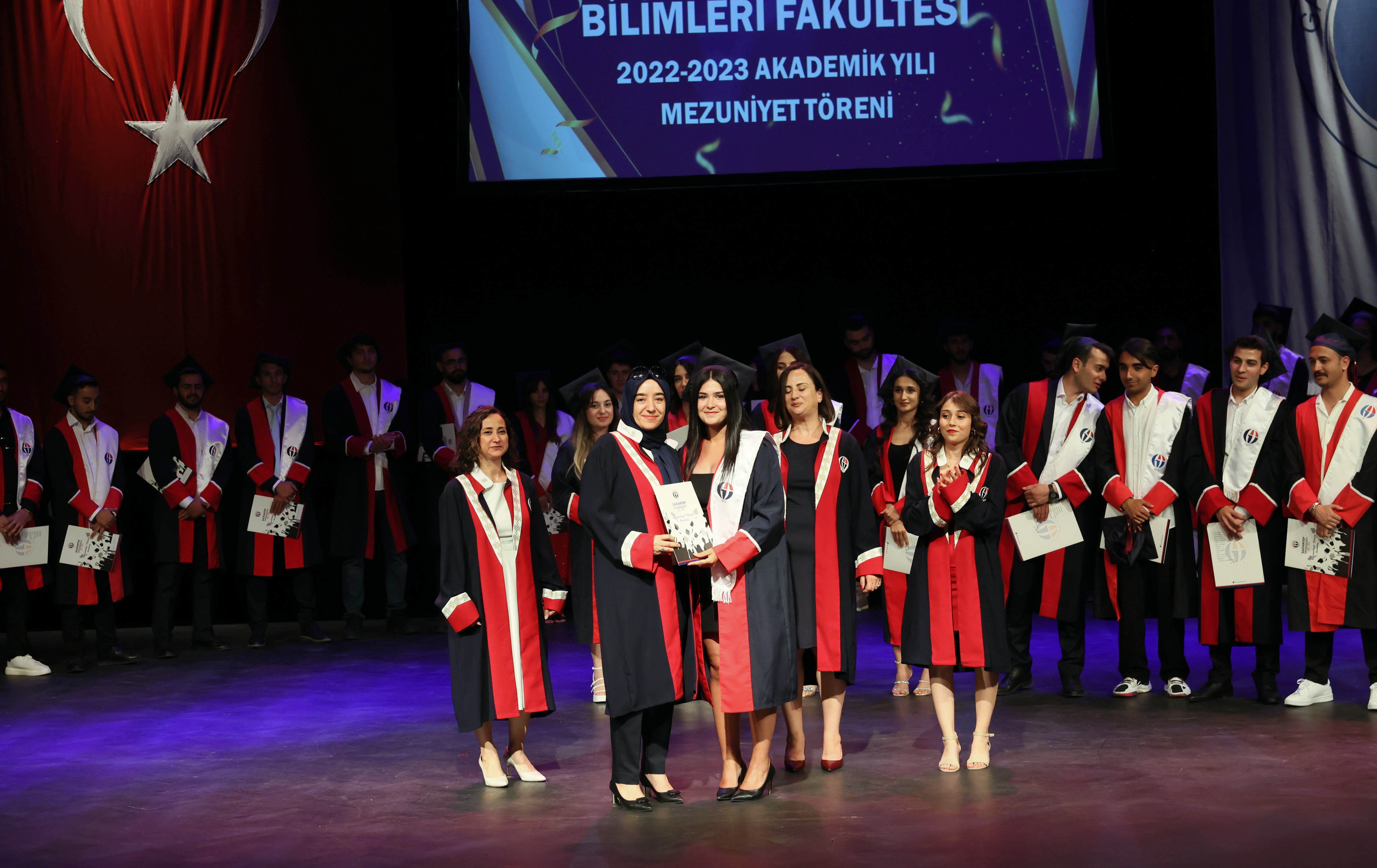 Tören, fakültede dereceye giren ve mezun olan öğrencilere öğretim üyeleri tarafından diploma ve hediyelerinin verilmesi sonrasında coşkuyla keplerini havaya atmasıyla sona erdi.