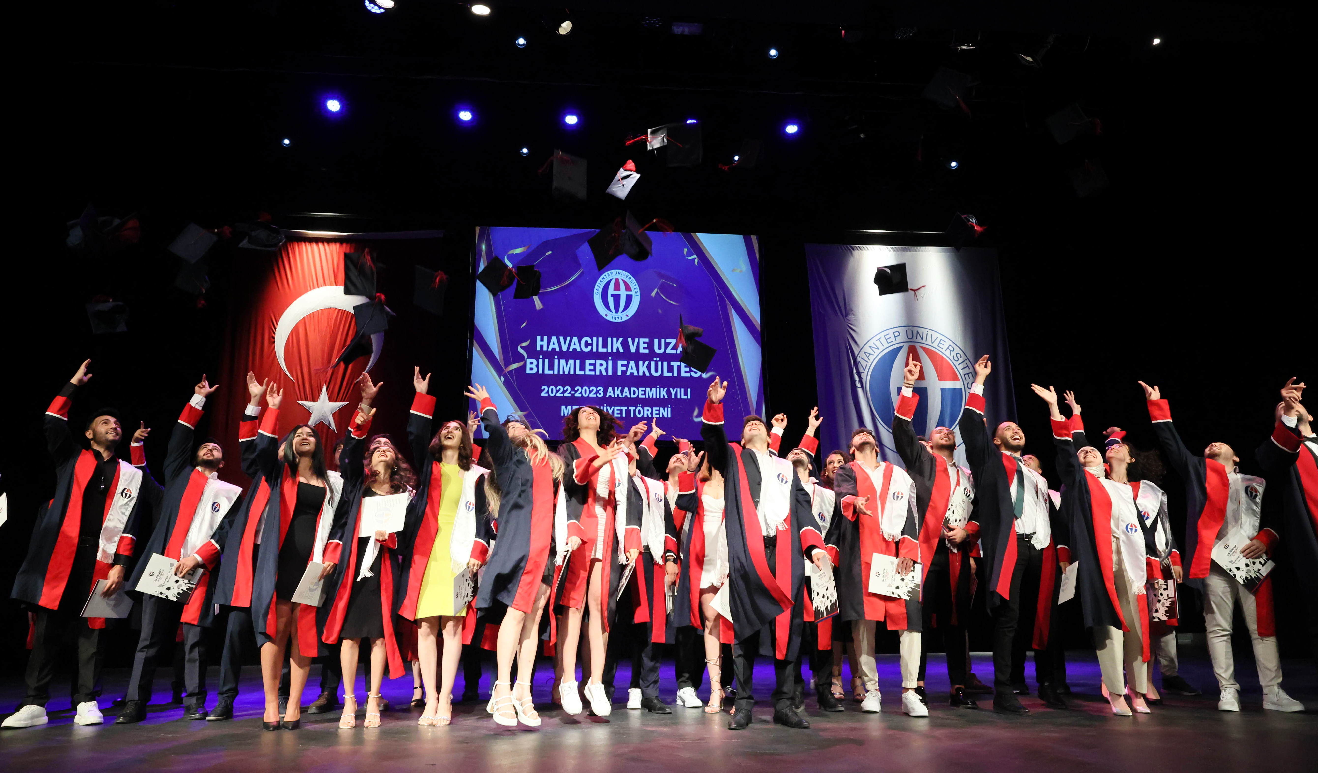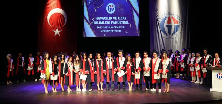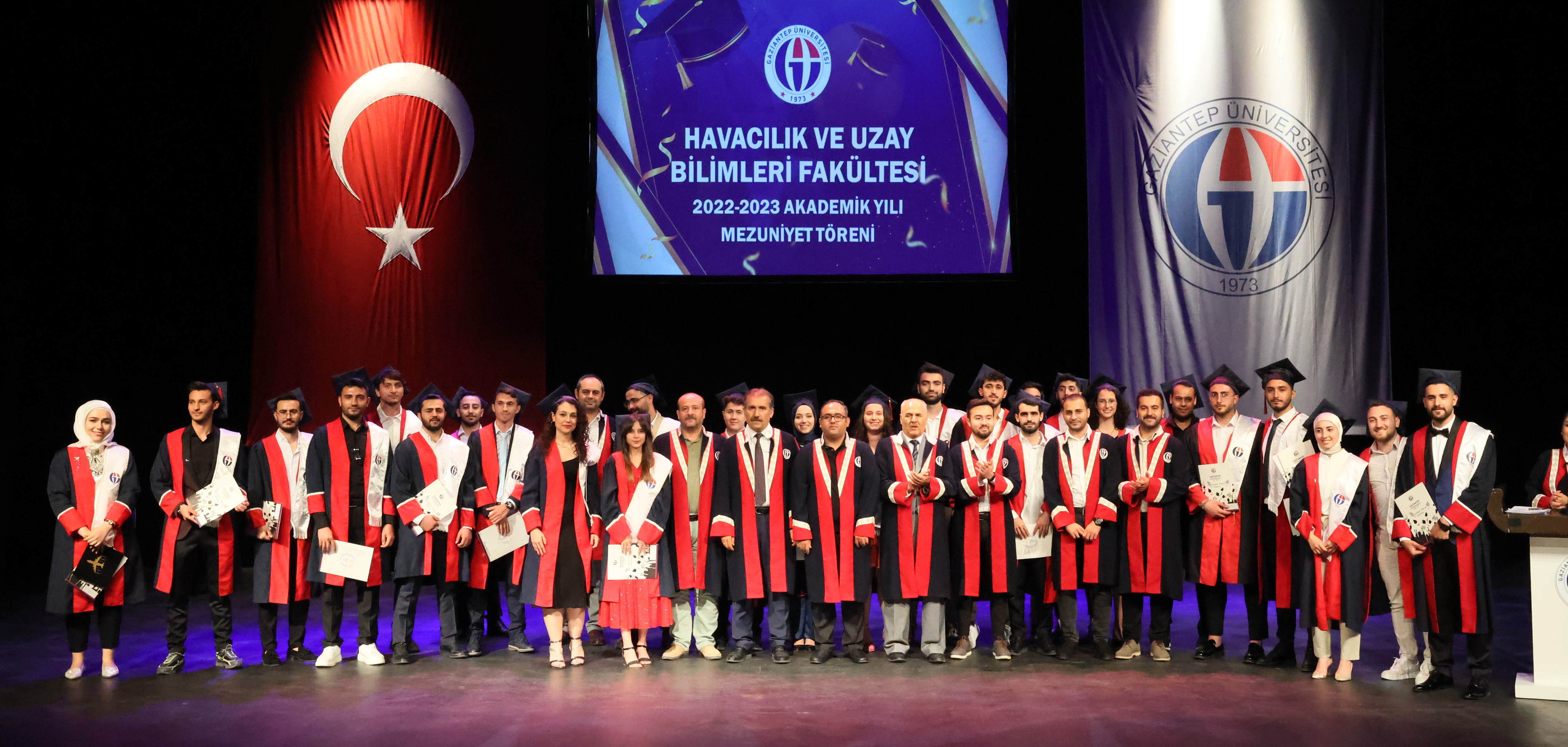 Gaziantep Üniversitesi (GAÜN) Havacılık ve Uzay Bilimleri Fakültesi, 2022-2023 akademik yılı sonunda eğitimlerini başarıyla tamamlayan öğrenciler, mezuniyetlerini coşkulu bir törenle kutladı.