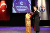 Mezun öğrenciler adına konuşan dönem birincisi Osman Çakmaklı ise “Geçirdiğimiz dört senemize baktığımızda hızla geçtiğini, bazen zor bazen kolay olduğunu görüyoruz. Bu süreci ailemizin, hocalarımızın ve arkadaşlarımızın desteği ile geçirdik. Kimi zaman arkadaşlarımızla beraber sabahladık, kimi zaman hayallerimizi gerçekleştirmek için kendimizden ödün verdik. Edindiğimiz arkadaşlıklarımızın ve dostluklarımızın hayatımızın geri kalanında da devam etmesini temenni ediyorum” diye konuştu.