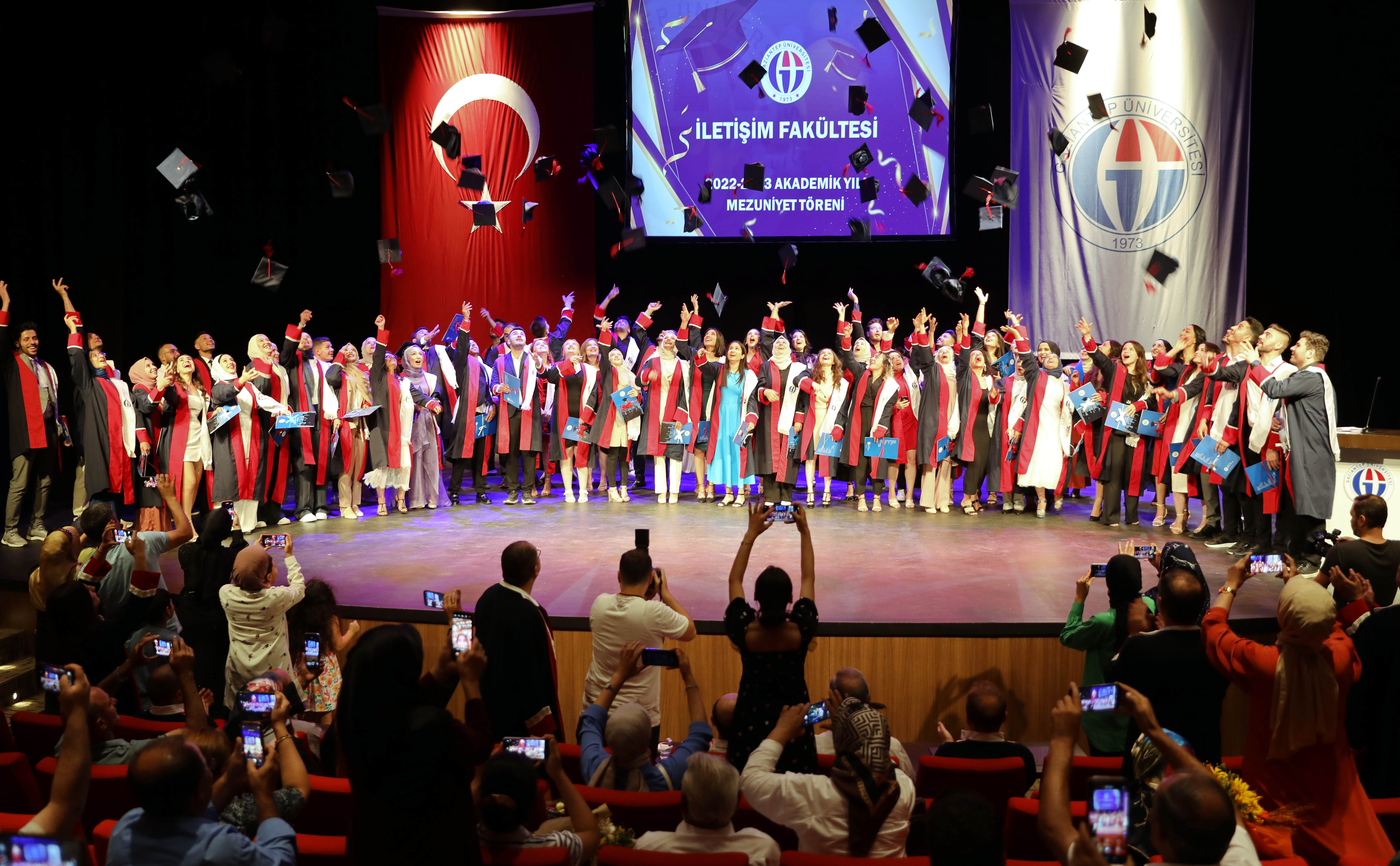 Gaziantep Üniversitesi (GAÜN) İletişim Fakültesi, 2022-2023 akademik yılı sonunda eğitimlerini başarıyla tamamlayan öğrenciler, mezuniyetlerini coşkulu bir törenle kutladı. Mezun öğrenciler diplomalarını alarak meslek hayatına ilk adımlarını attı.