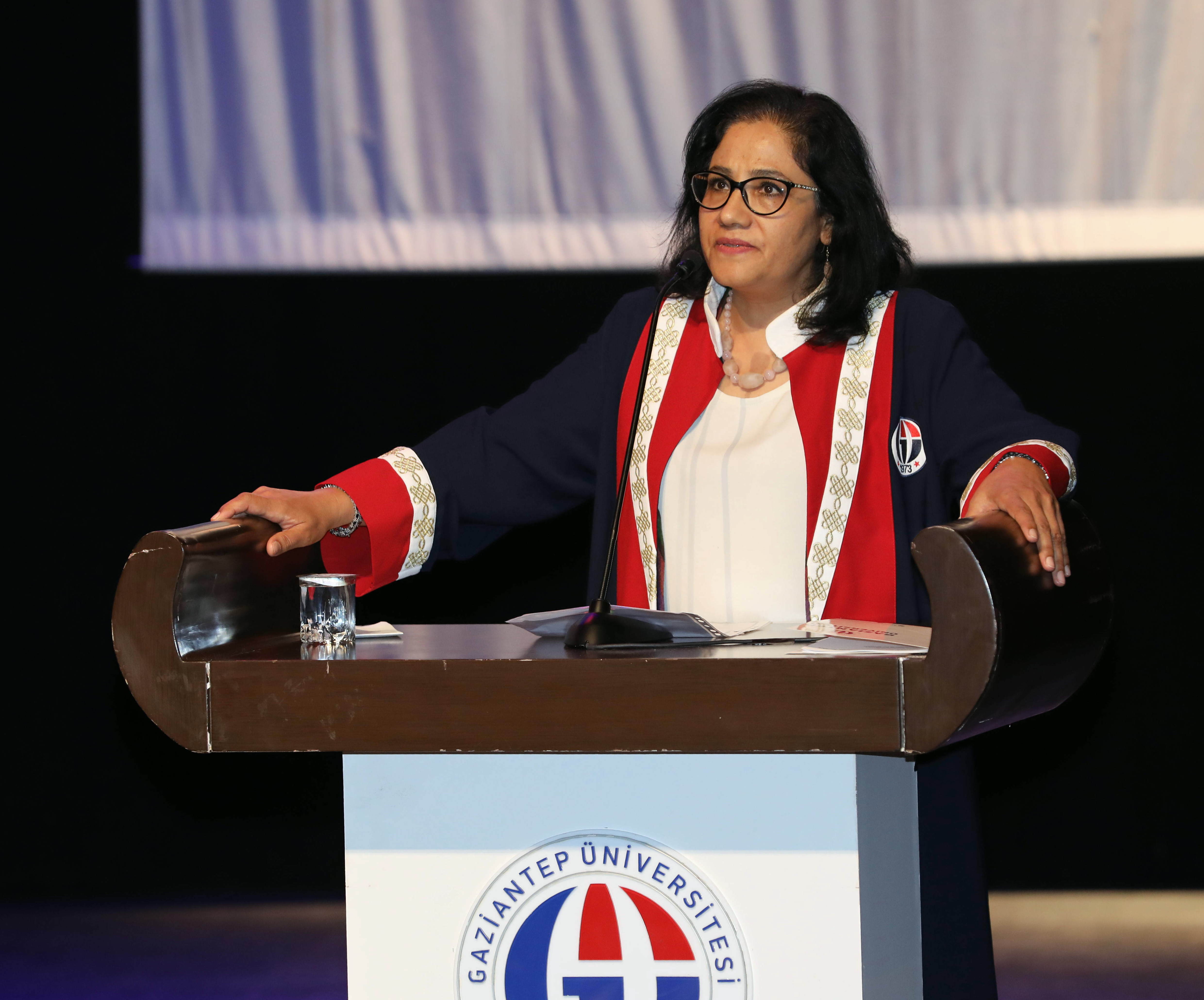 GAÜN Atatürk Kültür Sahnesi’nde gerçekleşen mezuniyet töreninde konuşan GAÜN Rektör Vekili Prof. Dr. Ayşe Balat, GAÜN Naci Topçuoğlu Meslek Yüksekokulu’nun eğitim sistemiyle kendi alanında Türkiye’nin en iyi okullarından biri olduğunu ifade ederek, burada mezun olan öğrencilerin avantajlı oluğunu söyledi. Prof. Dr. Balat öğrencilere seslediği konuşmasında şu ifadeleri kullandı: “Bulunduğunuz coğrafyanın toplumsal, ekonomik ve kültürel gelişimine katkılar sağlayabilmeyi hedef edindiniz. Başta Organize Sanayi olmak üzere diğer üretim kurumlarıyla işbirliği ve koordinasyonu öğrendiniz. Dolayısıyla bu öğretilerle çeşitli meslek gruplarında halkın aydınlatılmasına, yerel demokrasinin gelişmesine ve yerelleşmenin gerçekleştirilmesine önemli katkılarda bulunacağınıza inancım tamdır. Bunun için lütfen sağlıklı, planlı ve sürekli iletişimi önemseyin. Naci Topcuoğlu MYO bir marka olmayı başarabilmiştir. Kuruluşunda ve geliştirilmesinde emeği geçenlere çok teşekkür ediyorum. Her birinizin bu güzel kurumu en iyi şekilde temsil ederek çalışacağına eminim.”